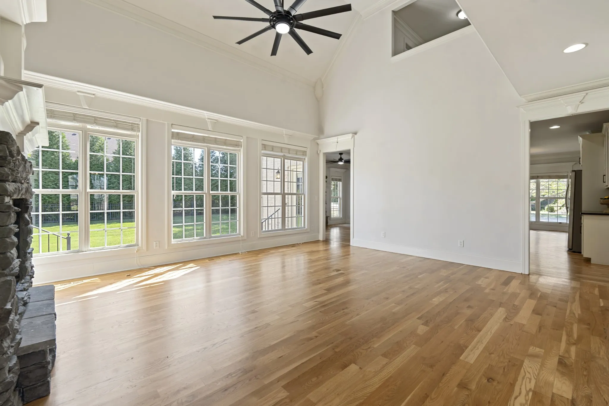 This stunning corner-lot home blends warmth, elegance, and functionality in one perfect package. Step inside to discover great natural lighting throughout and a bright, spacious kitchen featuring a gas range, abundant cabinetry, and generous counter space—ideal for both everyday living and entertaining. The two-story living room impresses with a beautiful stone fireplace flanked by custom built-ins. Two bedrooms are conveniently located on the main floor, offering flexibility for guests or a home office. A cozy keeping room provides the perfect spot for morning coffee, and the large bonus room with a wet bar is perfect for movie nights or game days. Enjoy year-round outdoor living on the screened-in porch overlooking the fenced backyard. All of this, perfectly positioned on a corner lot in a fantastic location close to shopping, dining, and Siegel middle and high schools!