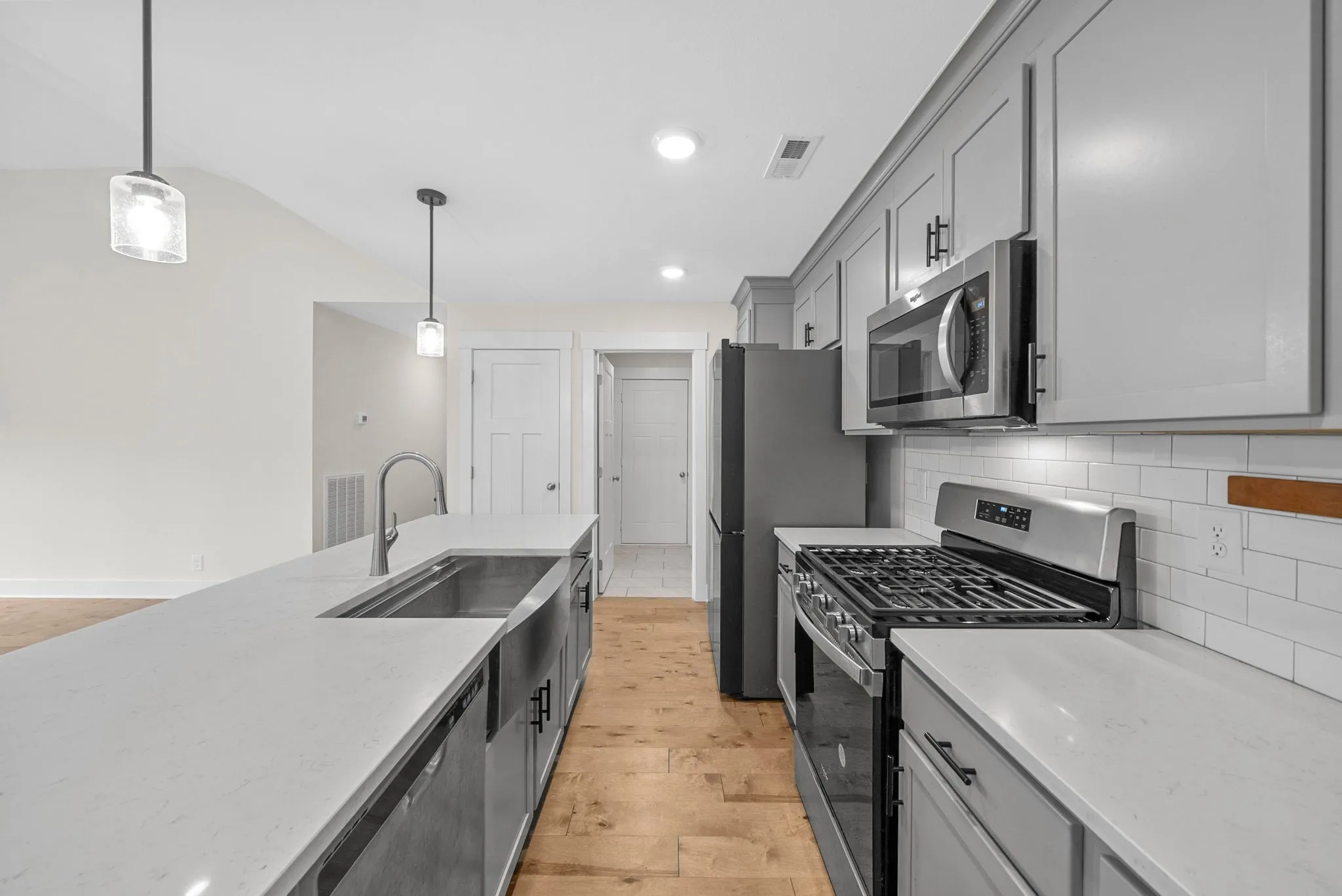 Welcome home to this beautifully maintained 3-bedroom, 2-bath ranch located in the highly sought-after Hereford Farms community in Sango! Nestled on a quiet cul-de-sac, this single-level home offers comfort, style, and convenience. Step inside to find blonde engineered hardwood flooring throughout, a spacious open-concept kitchen featuring high-end appliances, and plenty of counter space for entertaining or family meals. The primary suite boasts trayed ceilings and a charming sliding barn door leading into a private ensuite bath. Let’s not forget two closets! Your guest bedrooms are thoughtfully designed, including one with a beautiful accent wall that adds a custom touch. Outside, enjoy a level, fully fenced yard completely fenced in (with a gate in the back for access to the pond)—perfect for pets or outdoor gatherings. Located just minutes from shopping, dining, and easy access to I-24, this home combines quiet suburban living with modern convenience. Come check out what it is like to be tucked away in the back of the of this beautiful neighborhood!