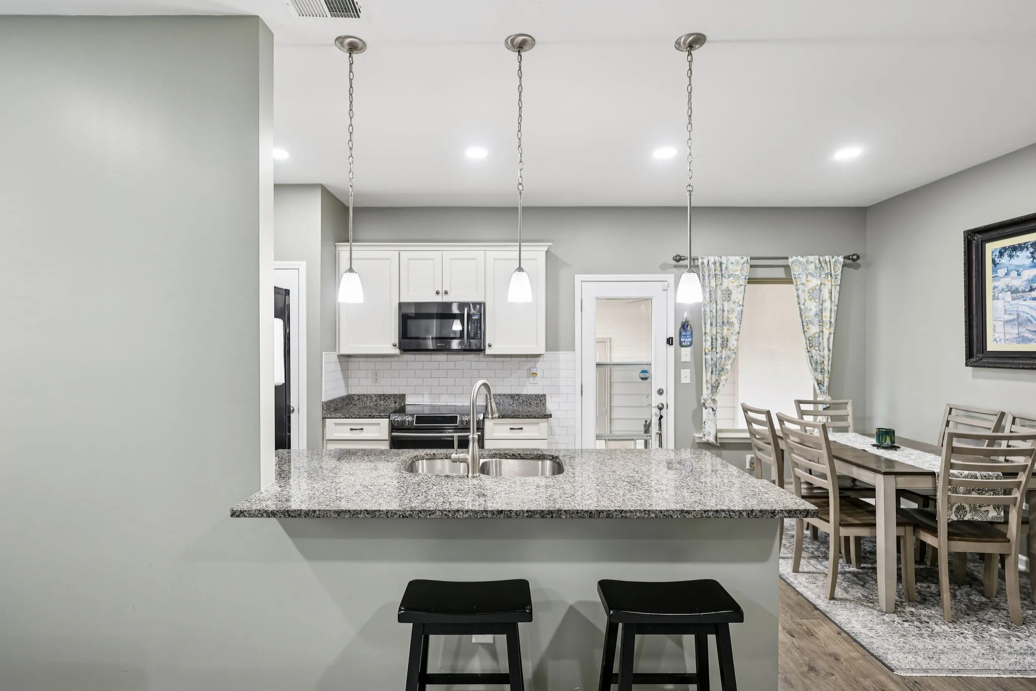 Step inside this beautifully updated 3-bedroom, 2.5-bathroom home where style and comfort come together seamlessly. The open-concept living area features brand-new LVP flooring, recessed lighting, elegant arched doorways, and a cozy fireplace that creates a warm, inviting atmosphere. The kitchen has been tastefully refreshed with a new subway tile backsplash, granite countertops, stainless steel appliances, and plantation shutters for a touch of timeless charm. The spacious primary bedroom offers vaulted ceilings, a walk-in tile shower, and a serene retreat-like feel. Upstairs, you’ll find two additional bedrooms with ceiling fans and plenty of natural light. Enjoy peace of mind with a new HVAC system, water purifier for your entire home, and a new front door among the many thoughtful upgrades. Step outside to a covered patio overlooking the private backyard—perfect for relaxing evenings or entertaining guests. Best of all, this home offers an assumable 2.25% VA loan, providing an incredible opportunity for qualified buyers. This home truly blends modern updates, comfort, and value!