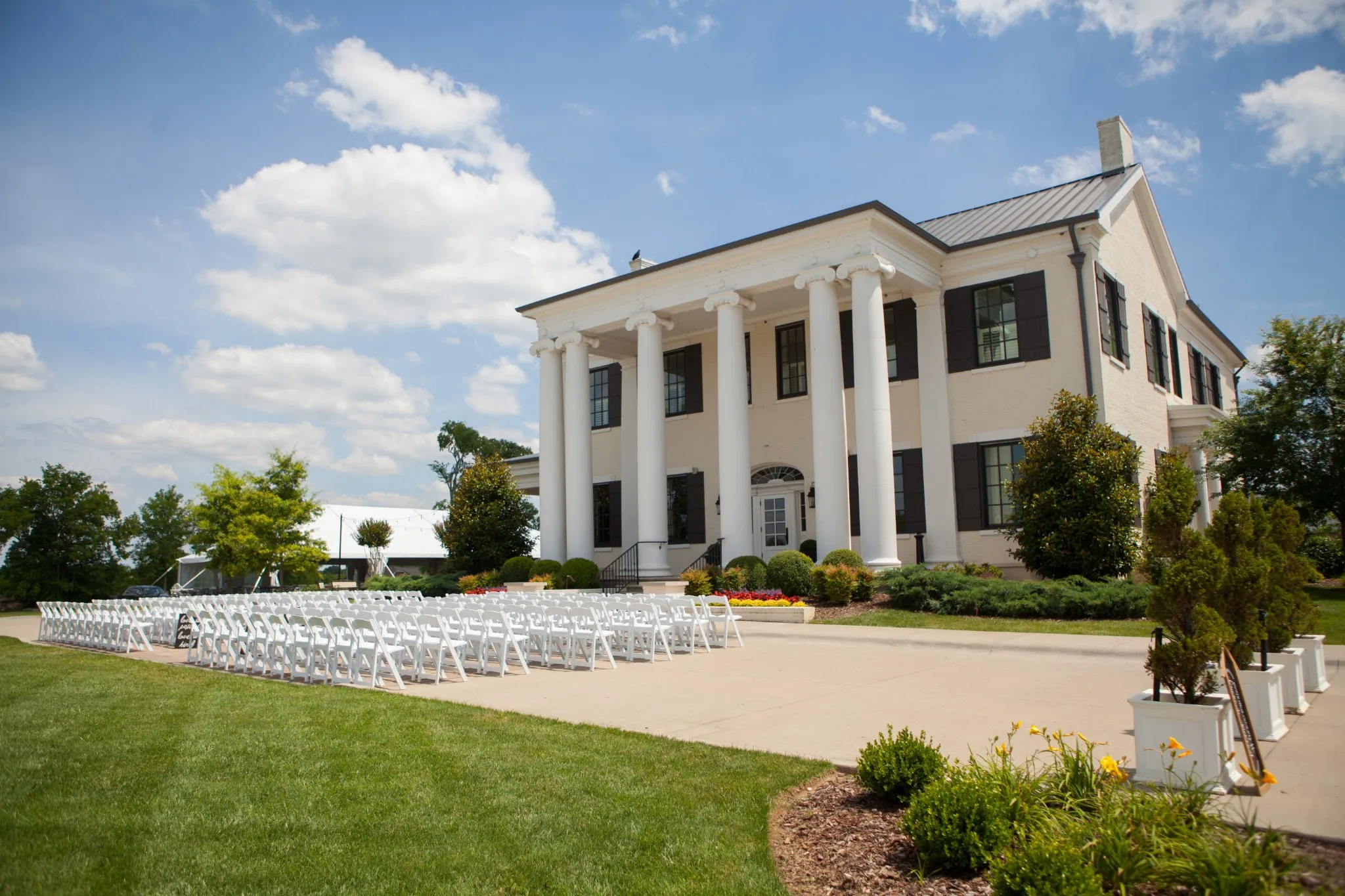 "LongDescription" => "This is the Foxland Harbor Clubhouse, shown here all set up for an outdoor wedding."