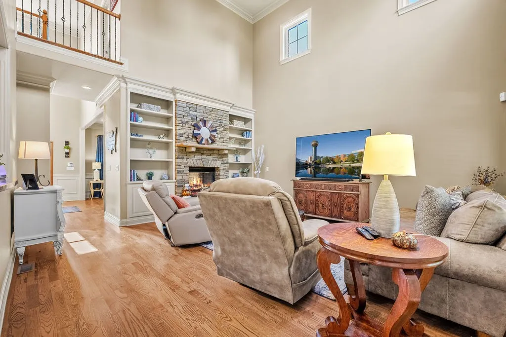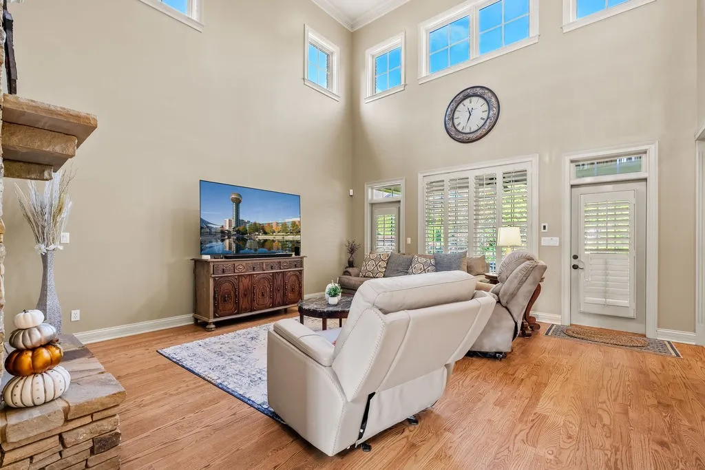 +"PublicRemarks": "Welcome to this breathtaking custom-built stone and brick home in the sought after Jefferson Park Community, where timeless craftsmanship meets modern luxury just minutes from Concord Park and the shores of Fort Loudoun Lake. From the inviting covered front porch with warm wood plank ceilings to the grand entryway with a sweeping staircase, every detail of this home is designed to impress. Inside, soaring 10ft with vaulted ceilings, elegant crown moulding, and refinished hardwood floors create an atmosphere of sophistication, while the dual fireplace with gas logs provides cozy ambiance throughout the living spaces. The chef’s kitchen is a dream with granite countertops, custom cabinetry, a gas cooktop, double ovens, and a spacious island perfect for entertaining. Retreat to the primary suite offering a spa-like bath and an expansive walk-in closet, while plantation shutters frame serene views of the private, fenced backyard surrounded by year-round greenery. Outdoor living is unmatched with covered front and back patios, landscaped gardens, and access to lighted neighborhood walking trails, a private boat dock, pavilion, basketball courts, pool, and the Jefferson Park YMCA - all within walking distance. Additional highlights include a 3-car garage, central vacuum, irrigation system, and a versatile bonus room ideal as a movie room, flex space, or 5th bedroom, plus abundant storage. With nearby marinas, sailing, kayaking, shopping, and dining at your fingertips, this home offers the perfect blend of luxury, comfort, and location. Schedule your private showing today and discover why this West Knoxville gem is the lifestyle upgrade you’ve been waiting for!"