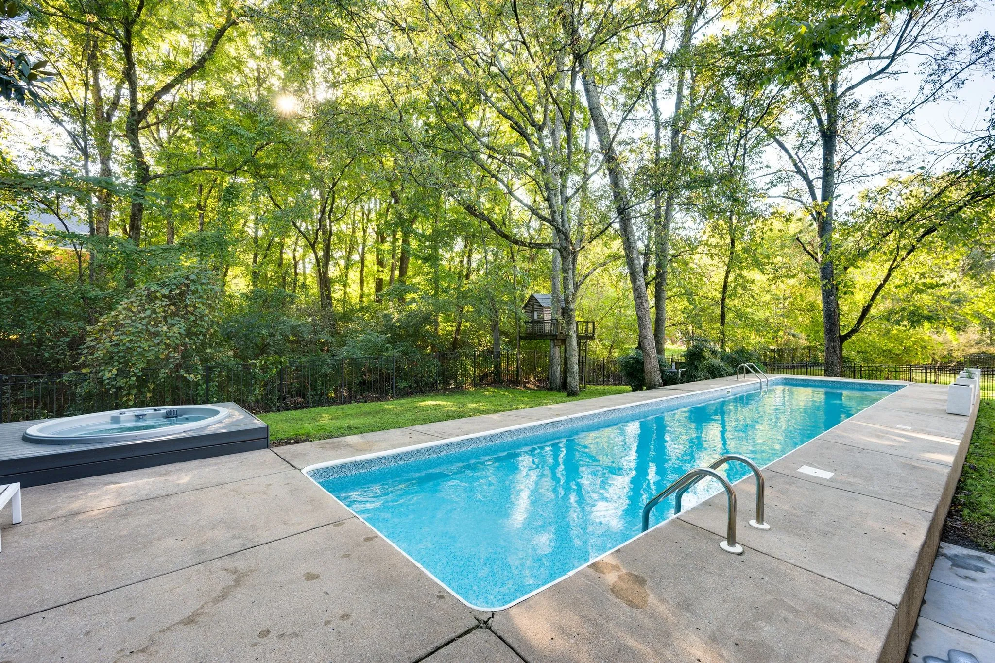 The finished basement offers a bonus area that opens directly to the covered patio, pool, fire pit & hot tub—creating a seamless indoor-outdoor entertainment space. The backyard is fenced & surrounded by trees, offering both beauty & privacy.\n
