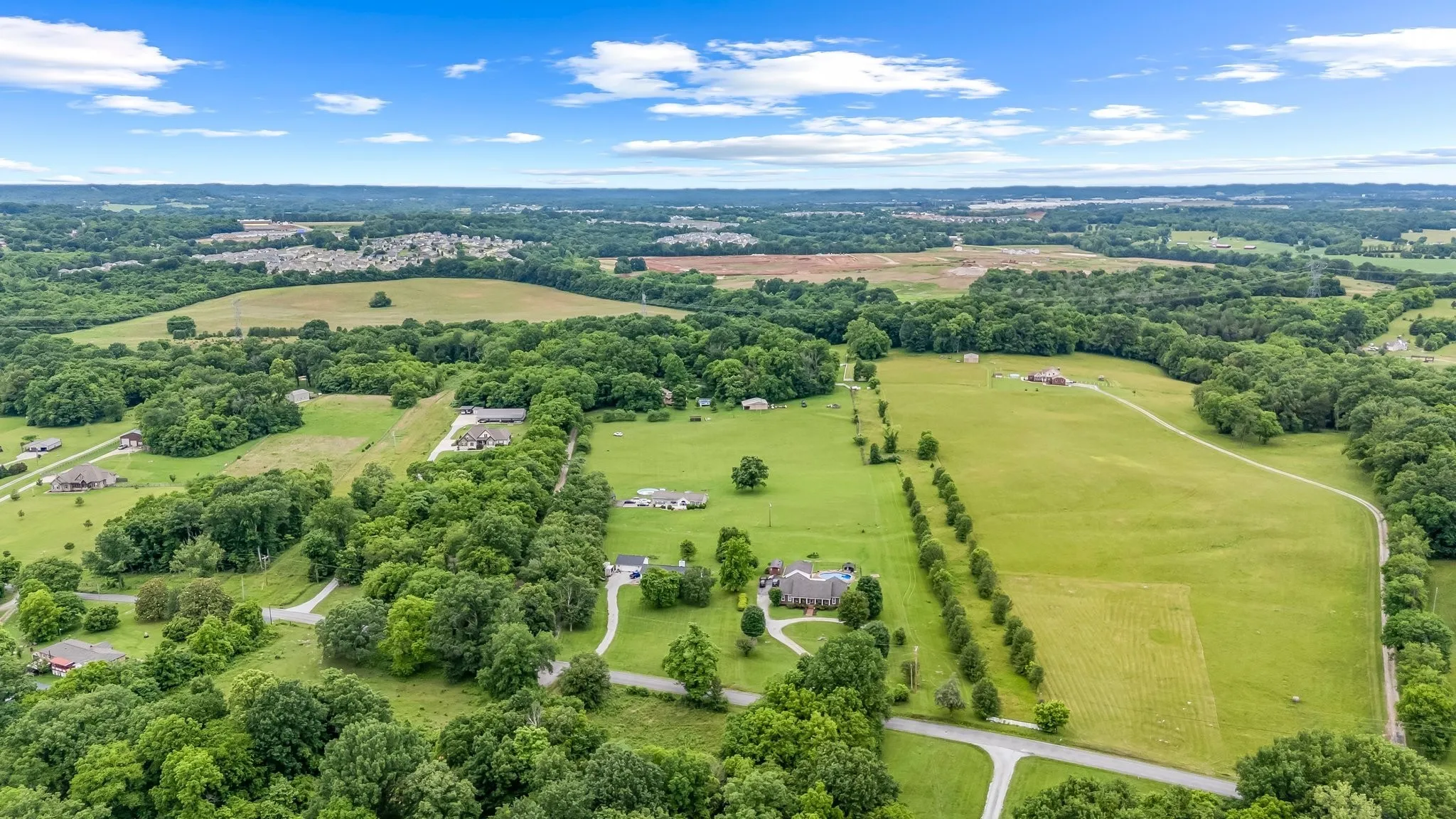 As you enter the long, tree-lined drive, you’ll be greeted by stunning views and scenic fenced pastures, ideal for your horses, chickens, or other farm animals. The property features two fenced pastures, each with a small horse barn and storage room.