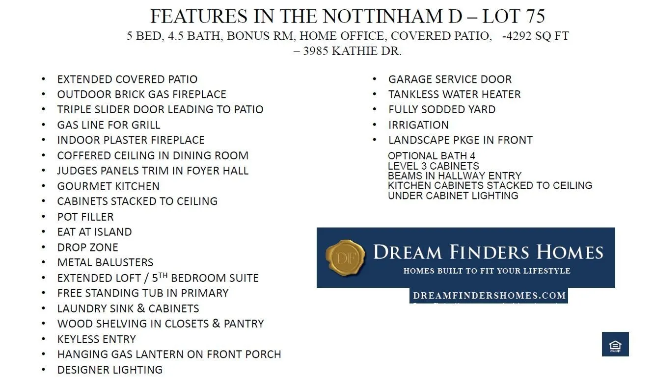 ASK ABOUT OUR CURRENT INCENTIVES – FLEX CASH!! The LUXURY Collection by Dream Finders Homes in Fountain View. Newly released lot 75, The Nottingham is a favorite, This spacious 5-bedroom, 4.5-bath residence offers a perfect blend of luxury, comfort, and convenience. The primary suite is located on the main floor, providing a private retreat, while a guest suite upstairs ensures comfort for visitors or multigenerational living.