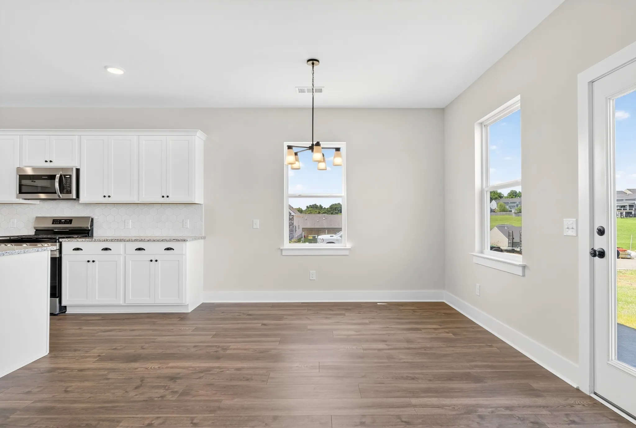 New homes only 3 miles to Spring Hill shopping and dining featuring one level homes up to 5 bedrooms, available now in this charming gas community!!The Oakland Plan By DRB Homes, offers 4 bedrooms, 2.5 baths, a flex room, and a versatile game room! The main level features an open concept layout with soaring ceilings, a flex room, laundry room, and a powder room tucked away from the living space. The Kitchen is a showstopper with a large island, 36” cabinets with crown molding, LED and pendant lighting, a spacious pantry, and granite countertops. The primary suite is also on the main level, featuring a luxurious walk-in tile shower, double vanities, granite countertop and large walk-in closet. Upstairs, you’ll find a generous game room, three additional bedrooms, and a full bath with double vanities perfect for busy mornings or guest. This home is located in a corner lot. MOVING READY!! To tour, just enter DRB Homes McClure Farms into your GPS, it will bring you right to us!