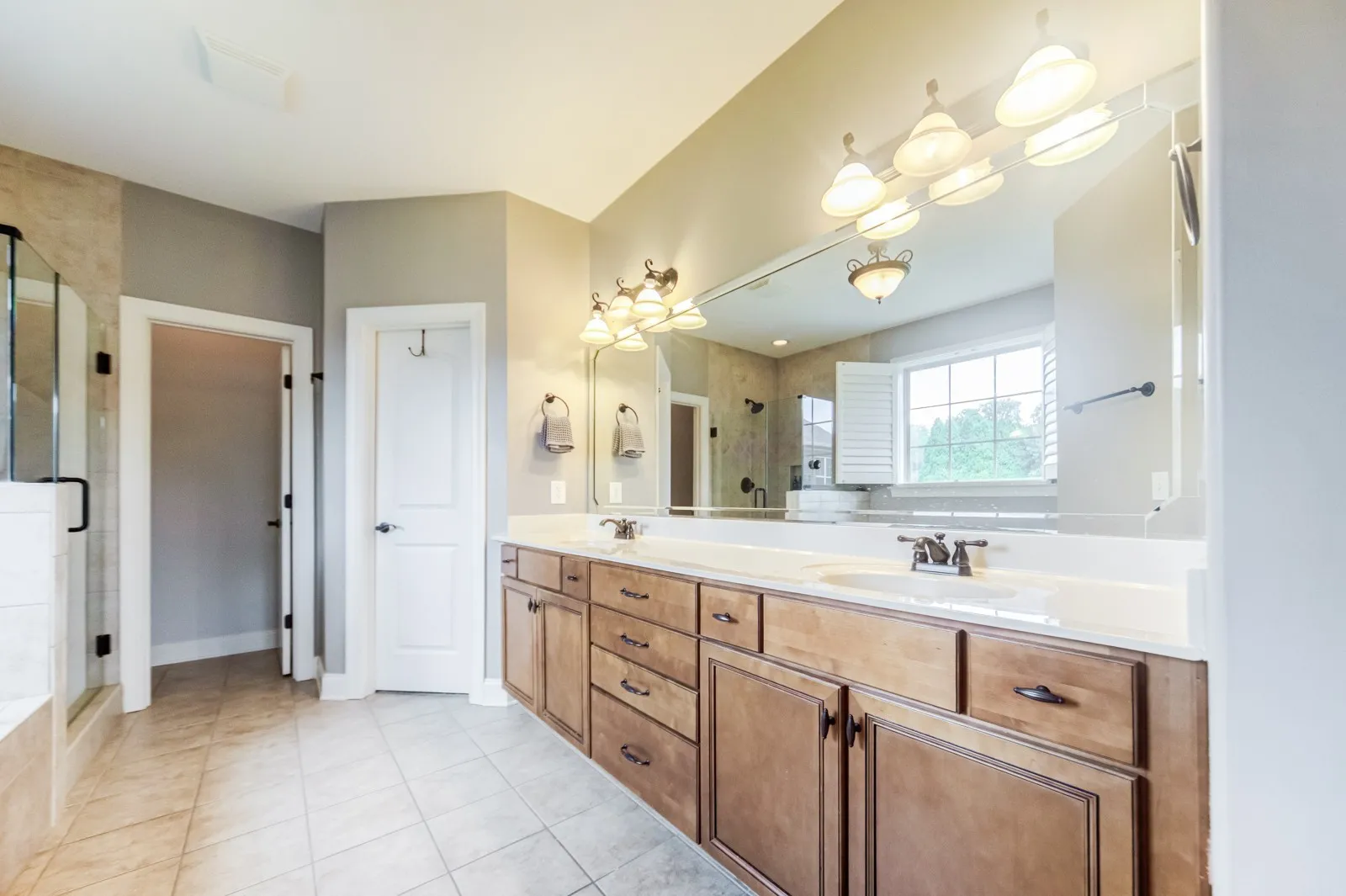 The primary suite on the main level features vaulted ceilings, dual walk-in closets, double vanities, a water-jet soaking tub, and a separate tiled shower. A second bedroom, full bath, and utility room on main level. Upstairs two additional bedrooms with walk-in closets, a full bath, generous storage, and a large bonus room perfect for a theater, gym, or playroom.