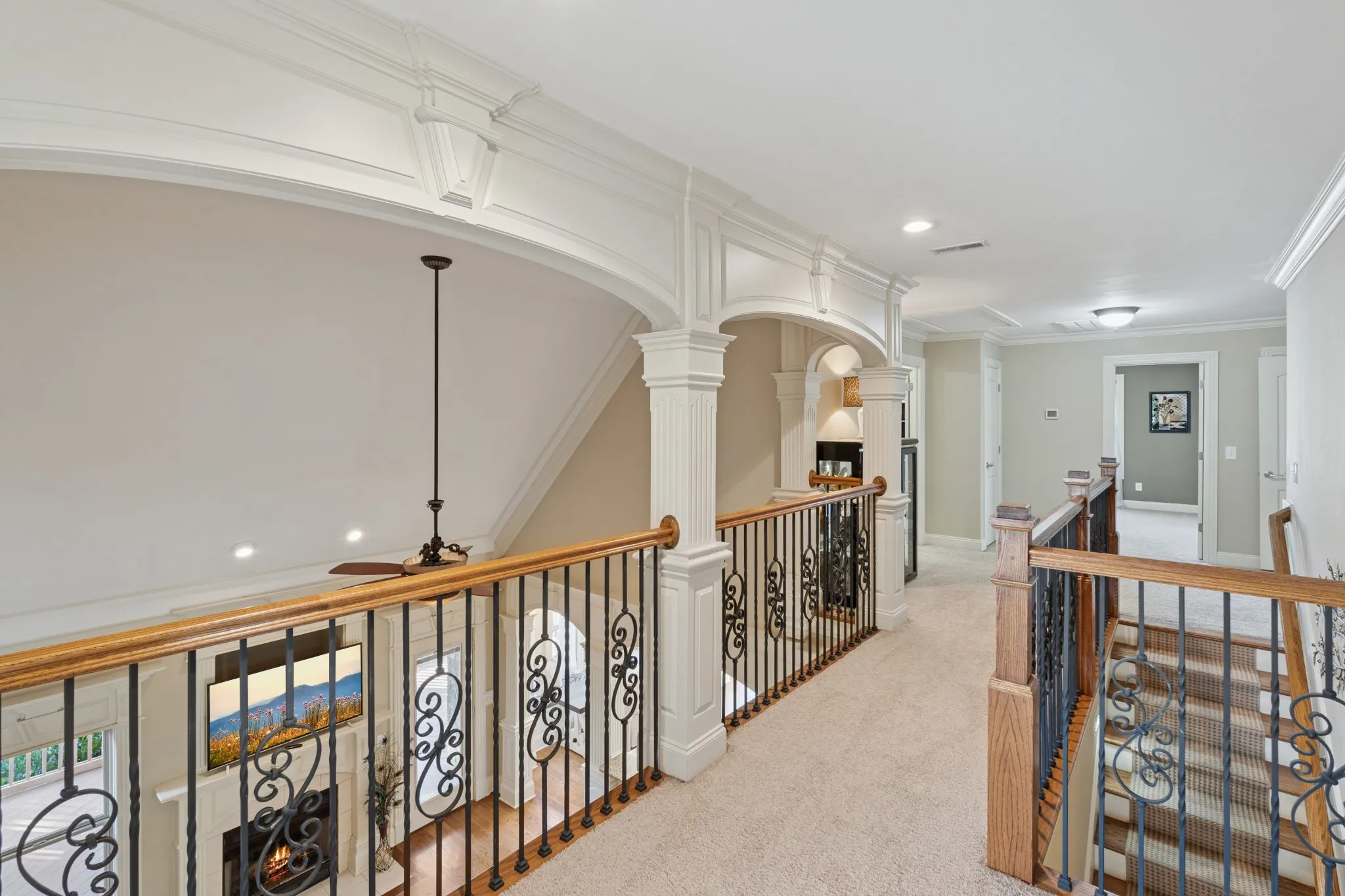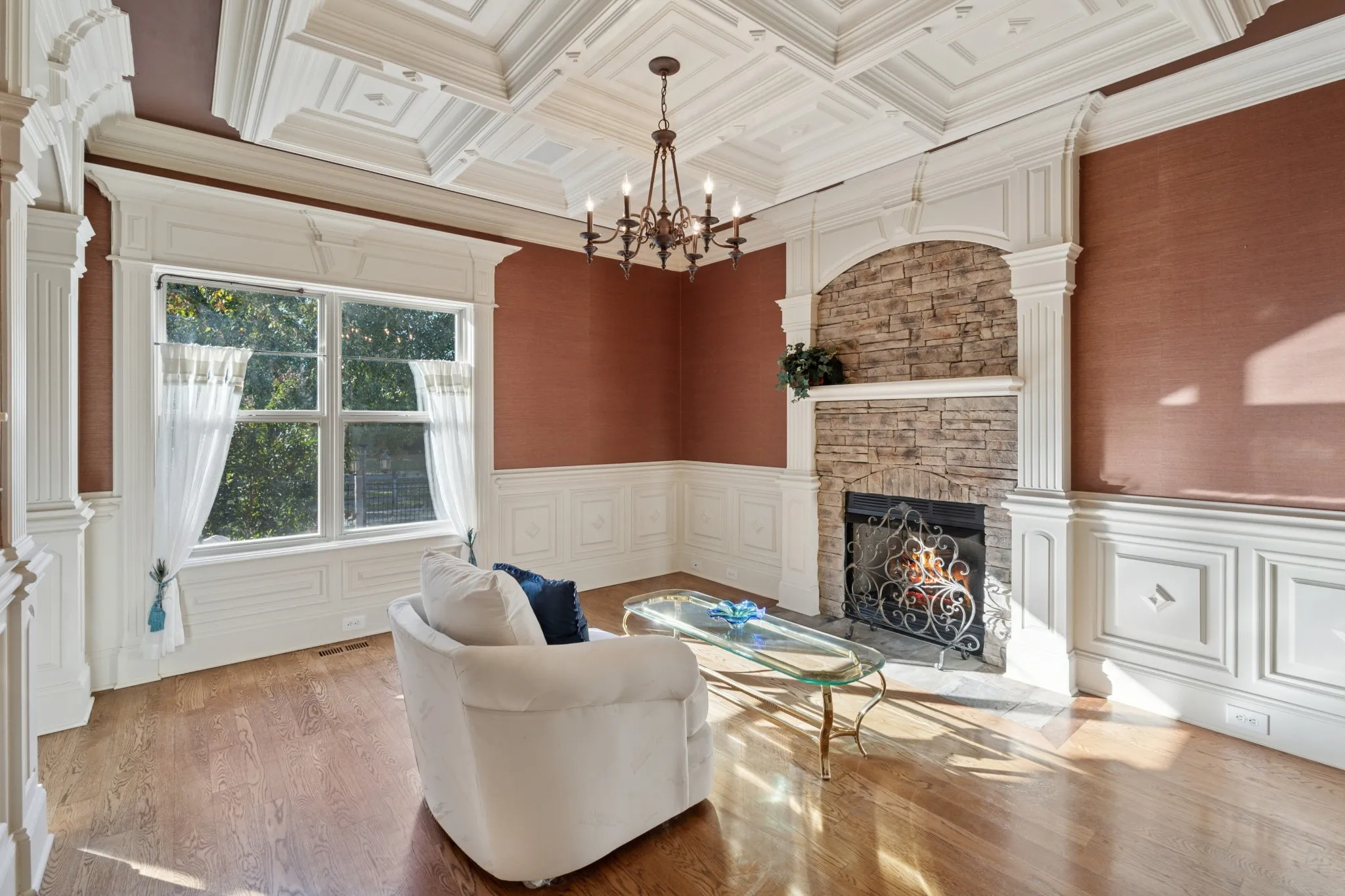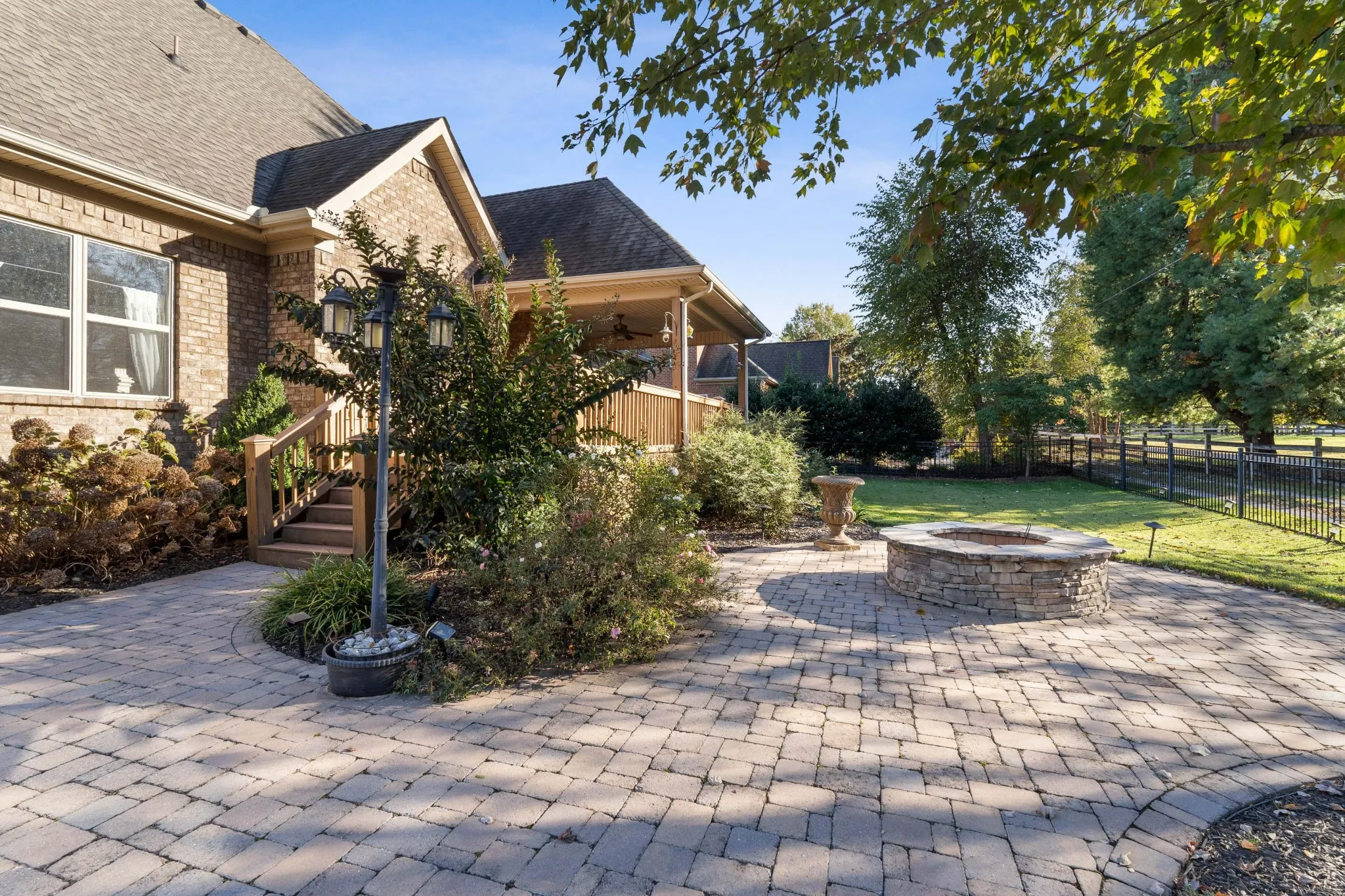 Enjoy outdoor living on the covered deck overlooking a private backyard with a fire pit, perfect for entertaining or relaxing. The irrigation system makes maintaining the beautifully landscaped lawn a breeze and helps keep a welcoming first impression. This home truly embodies style, function, sophistication, and lasting charm.