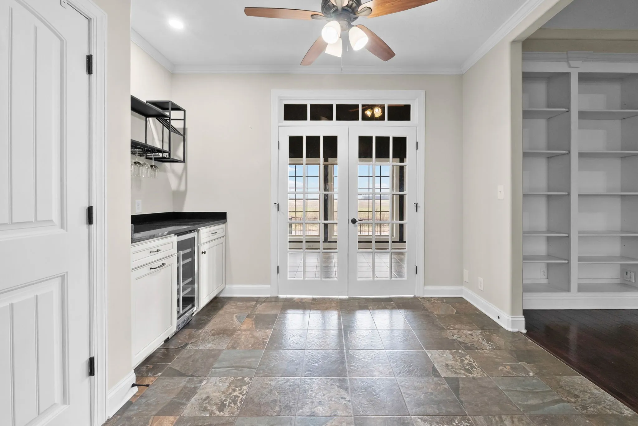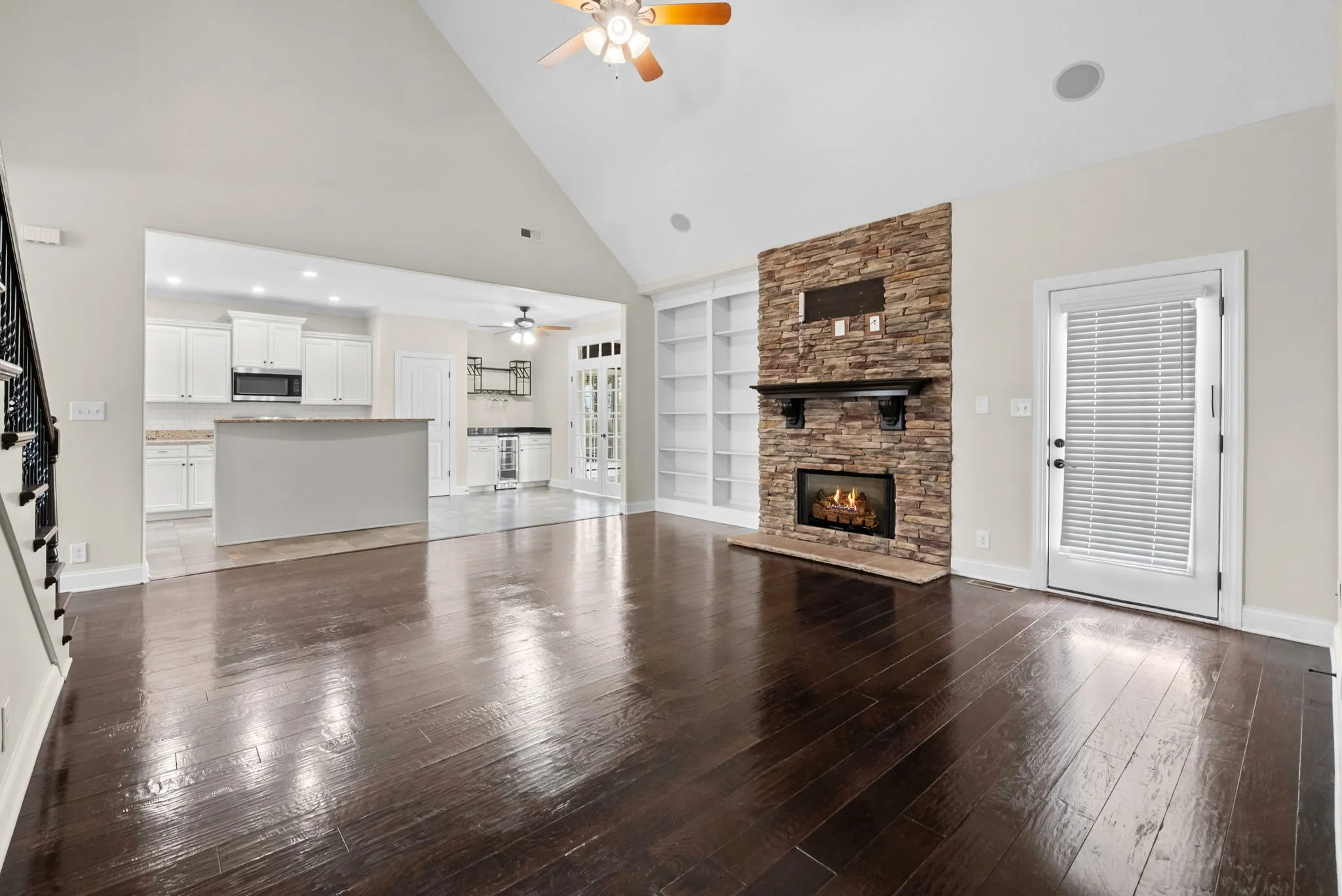 Welcome to this stunning residence in the highly sought-after Hickory Wild community! This home boasts a three-car garage and a beautiful tiled Florida room with French doors and abundant natural light. The open-concept layout seamlessly connects the elegant formal dining area and living space, complete with built-in shelving surrounding the fireplace and a custom cabinet nook. The spacious primary suite features walk-in closets and French doors that open to a versatile multi-use area—perfect for a private retreat or office.