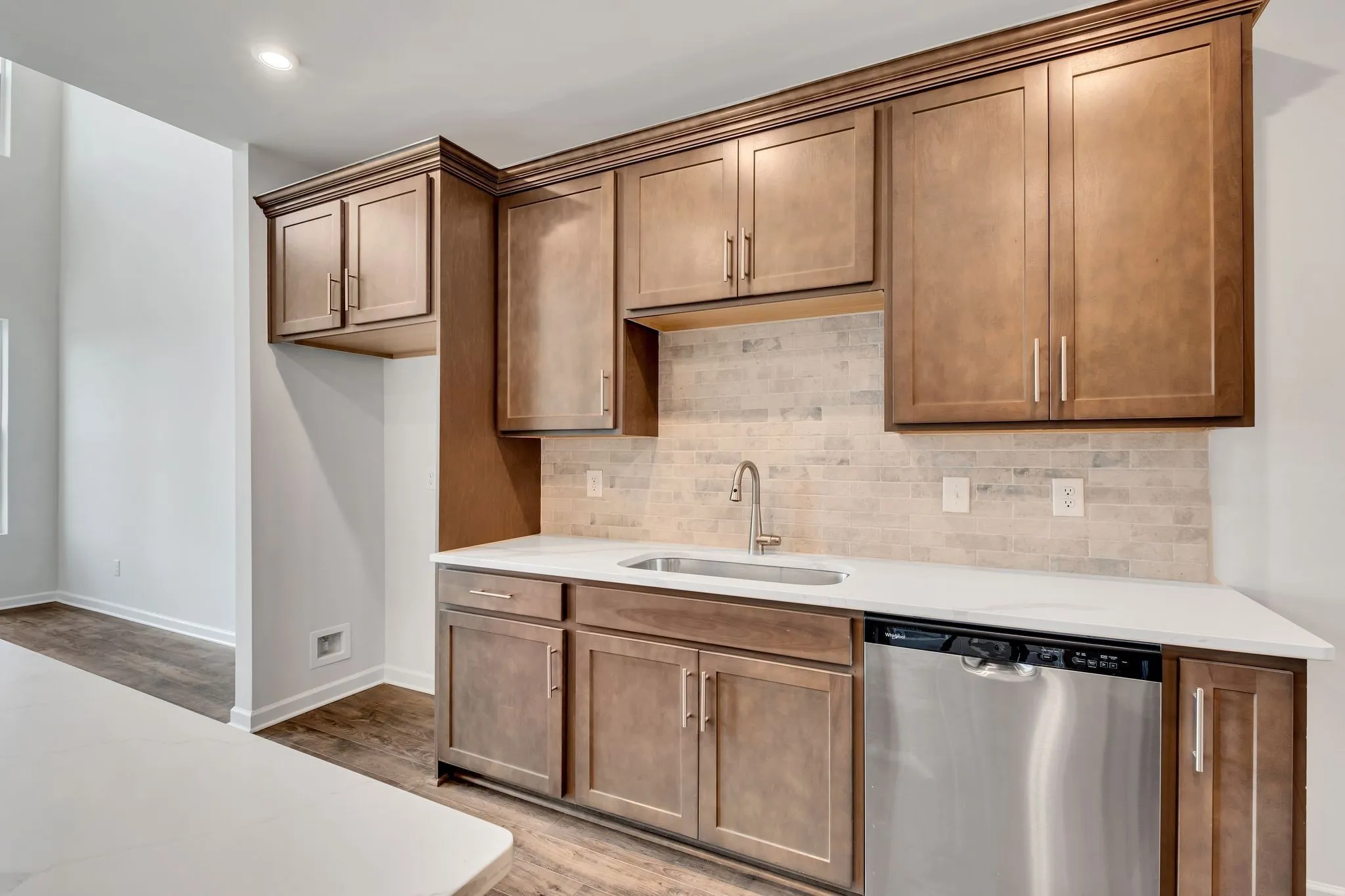 Welcome Windtree, located on the former Historic Windtree Golf Club where you will find this all-brick Nash townhome! This floorplan offers easy living and is a beautifully crafted 4-bedroom, 2.5 bath home featuring 9′ ceilings throughout and open inviting 2-story great room. The kitchen boasts beautiful White cabinets, Quartz Countertops, Tile Backsplash, and Stainless Steel appliances. On the main level you will find the Primary Suite that includes a Tile Shower w/ Frameless Glass Door, Raised Double Bowl Vanities, and Chrome Faucets. Located upstairs are the 3 secondary bedrooms and a spacious Loft for your entertainment! Offering extra storage and parking, there is a 2 Car Garage. This townhome is ready for you to call it home! Amenities will include a pool, a clubhouse with fitness center, putting green, sport court (pickleball), and playground, nine-hole disk golf and walking trails.