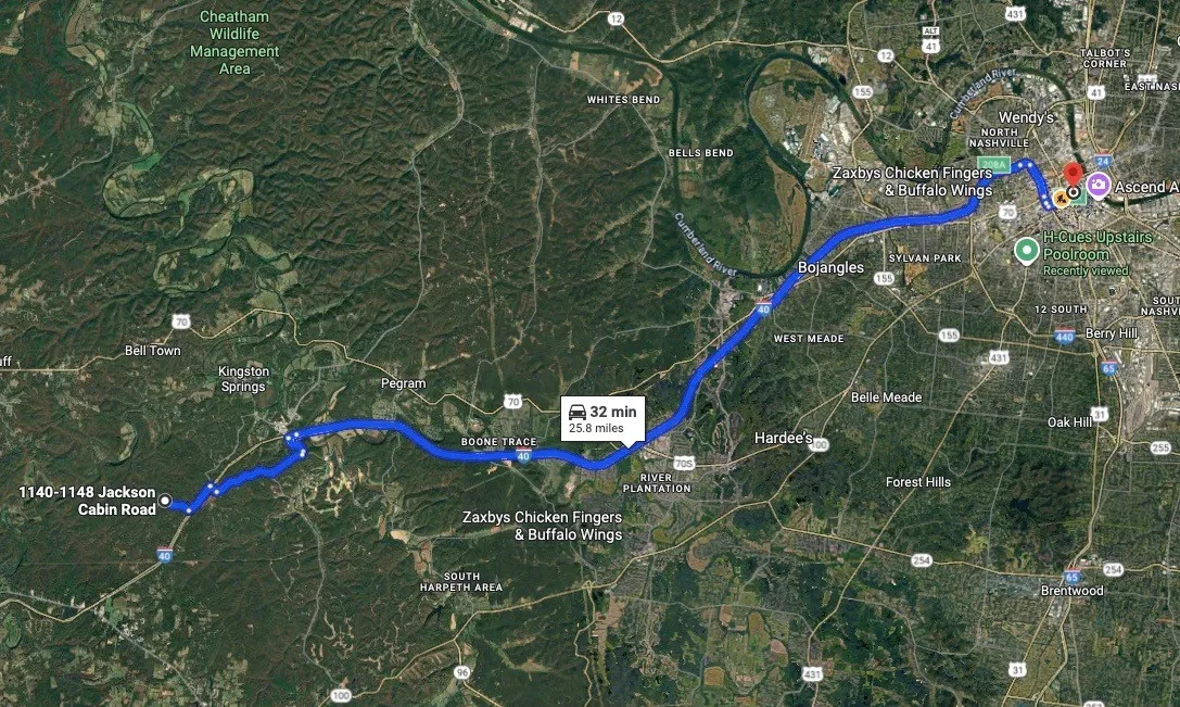 - Directions: Follow I-40 W to TN-249.Take exit 188.Turn Right. Left on Kingston Springs Rd. Left on Merrylog. Left Mt. Pleasant Rd. Right on Jackson Cabin. As you pass Fawn Trail on right, lots are on the right