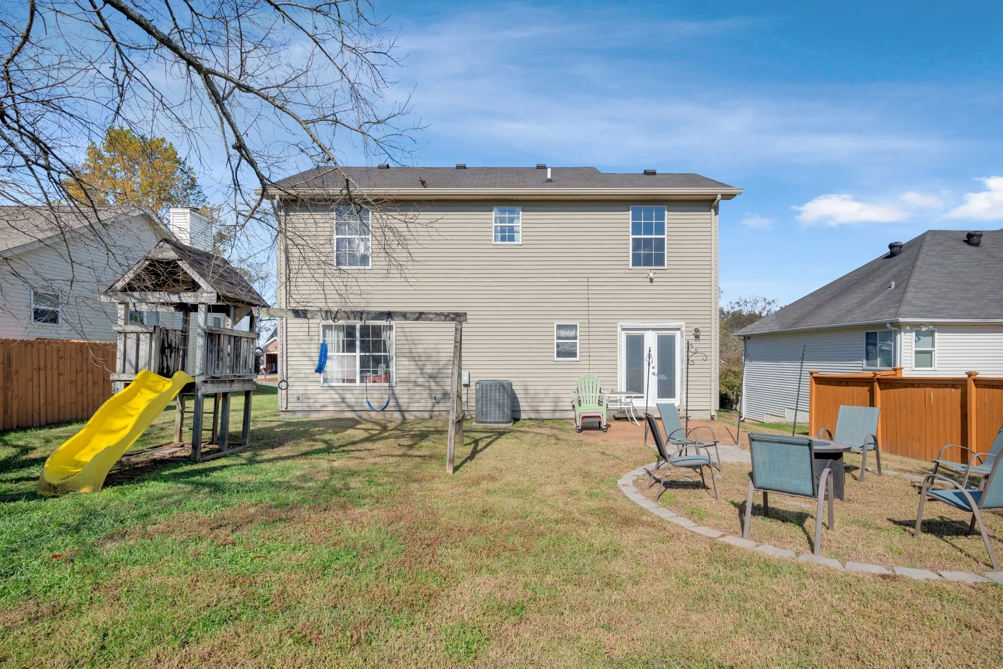 Step outside to the expansive backyard, where you can enjoy outdoor living on the patio, surrounded by lush landscaping – perfect for summer barbecues or stargazing at night. The backyard also includes a swing set for your little ones to enjoy.