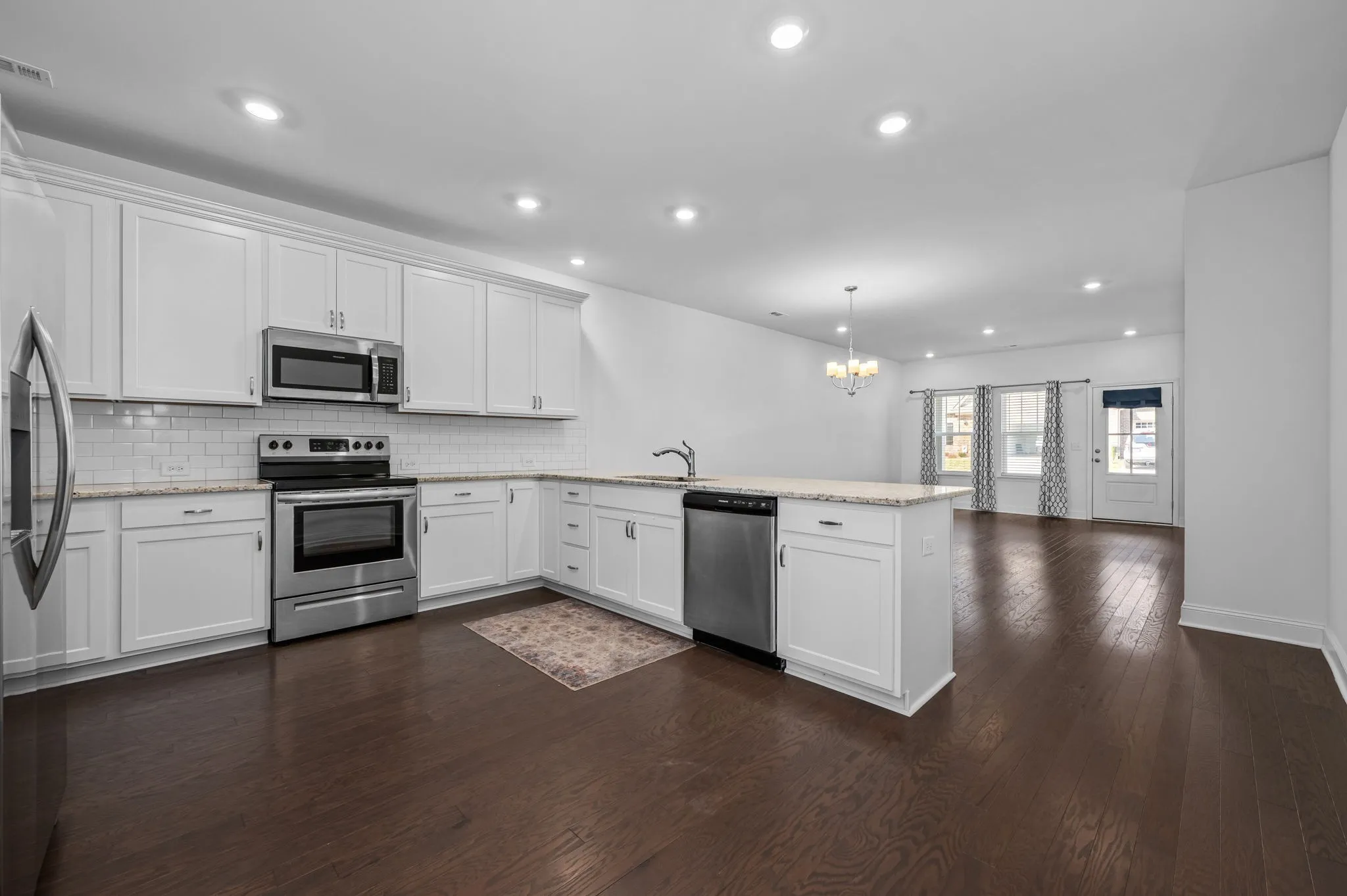 Step through your covered front patio into an open living space where the kitchen is not just functional—it’s jaw-dropping. Imagine entertaining with stainless steel appliances, granite counters, a pantry, and flow right into your living area.