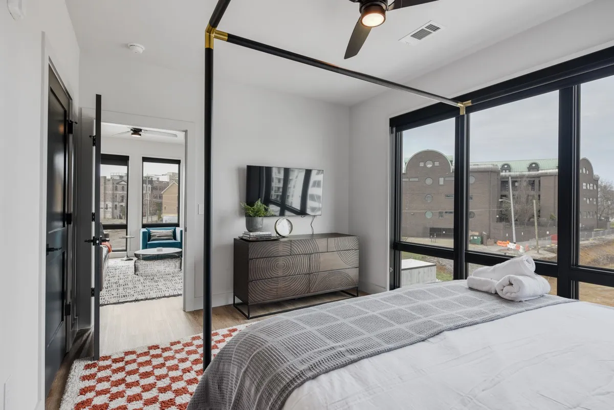 Fully furnished NOO STR condo on the top floor of The Odyssey building located in the heart of Nashville’s West End neighborhood. This desirable corner floorplan overlooks the soon to be completed pool & building amenities include commercial space on the ground level & fitness center! Walk to Centennial Park, coffee shops & restaurants or catch a quick ride to downtown!