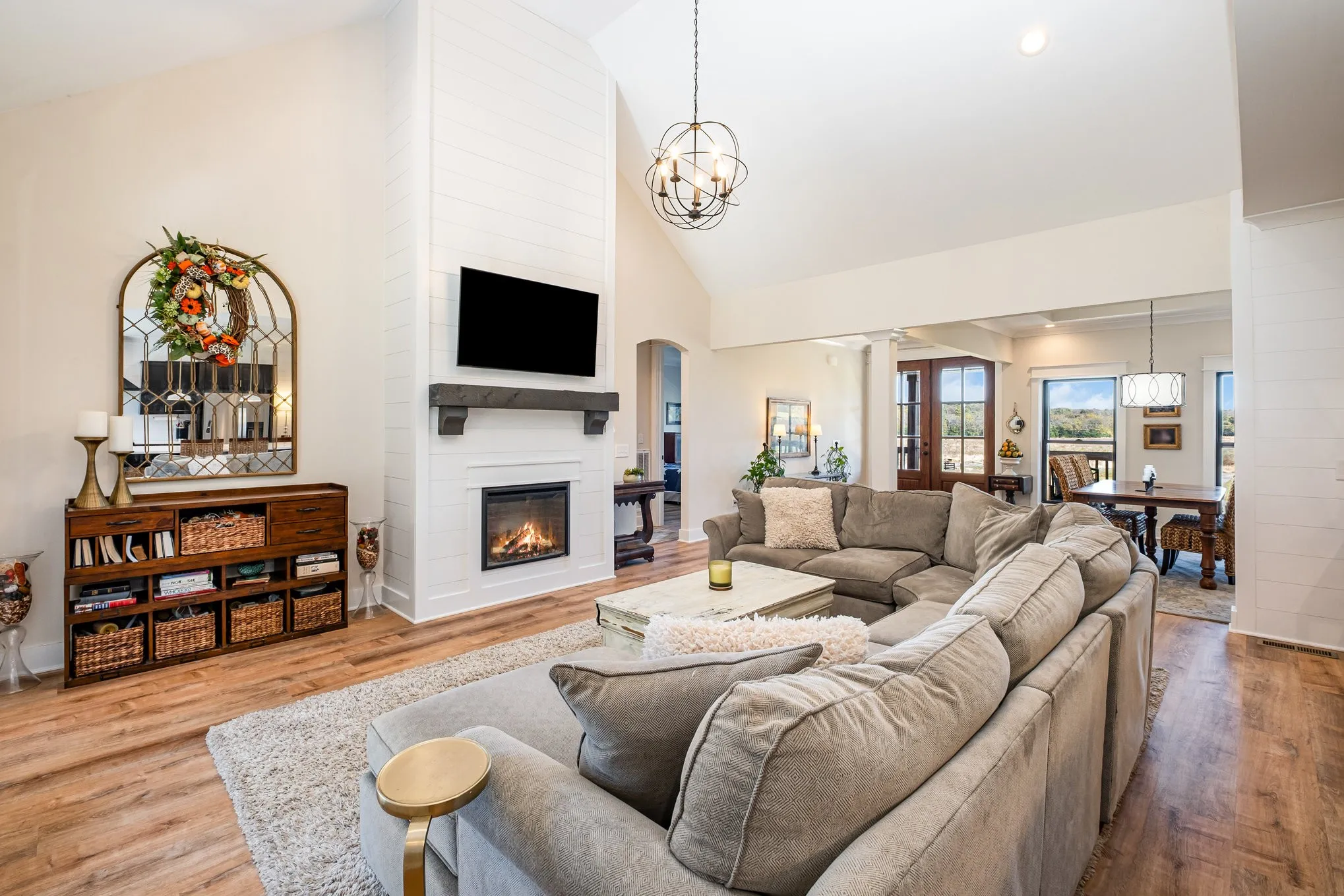 Step inside to discover Andersen windows framing scenic views and flooding the open floor plan with natural light. High quality LVP flooring seamlessly throughout, complemented by beautifully tiled bathrooms and high end soft close cabinetry in every room. The custom kitchen is a showstopper featuring a walk in pantry with built in shelving and a wet bar, perfect as a coffee or cocktail station.