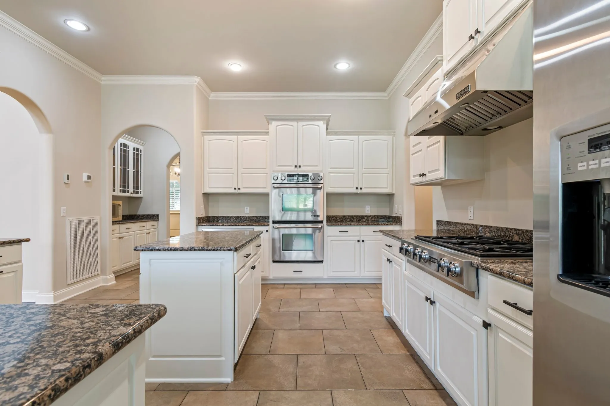 +"PublicRemarks": "Stunning all-brick estate in the guard-gated golf course community of the Governors Club offering 5BR/5BA/2HBA. Freshly painted interior w/ elegant iron front door, beautiful landscaping, fully fenced backyard, & 3-car side-entry garage w/ epoxy floor. Grand 2-story entry leads to a home office w/ coffered ceiling, glass doors, gas fireplace, Plantation Shutters, & mounted TV that conveys. Formal dining w/ double doors to front porch. Two-story family room with fireplace and built-ins opens to covered porch. Chef’s kitchen with open concept to the family room, granite countertops, bar seating, JennAir 6-burner gas cooktop, double ovens, refrigerator, walk-in pantry, tile floors and butler’s pantry. Large breakfast area with wall of windows. Main level primary suite with hardwoods, Plantation Shutters, walk-in custom closet & luxury bath w/ jetted tub & a separate tiled shower. 2nd BR suite on main + laundry, powder room, & friends’ entry/cubby drop zone. Upstairs offers 2 BR w/ Jack & Jill bath (separate vanities), large bonus w/ wet bar & powder room, & storage. Basement includes media room (screen conveys), exercise room, large den w/ fireplace & walk-out access, guest BR suite, flex room, kitchenette (cooktop/microwave/sink/mini-fridge), additional den w/ built-ins, storage, & storm shelter. Basement level is perfect for an in law suite. Governors Club resident amenities include 24-hour gate security, community pool, fitness center, 2 tennis courts & access to Historic Pleasant Hill mansion. The country club memberships are also available as full golf or social members & allow access to the private Arnold Palmer 18-hole course, pool with cabana, bar, restaurant, bocce ball, and Pro Shop. The club has a vibrant year-round calendar of golf, social & family events. Truly resort style living. Up to 1% lender credit on the loan amount when buyer uses Seller's Preferred Lender."