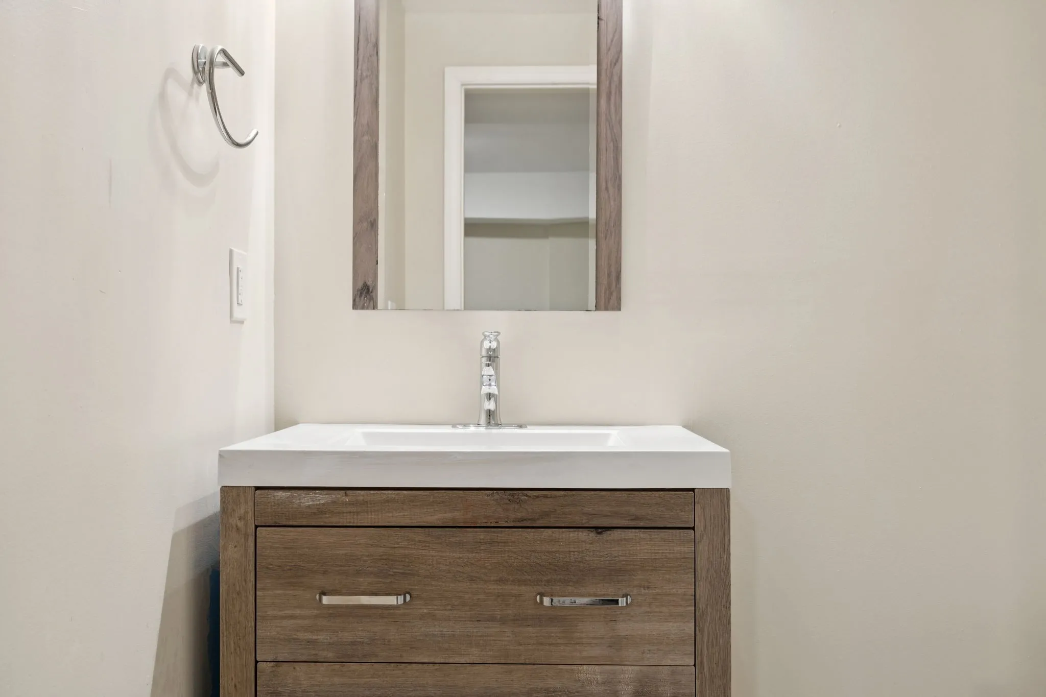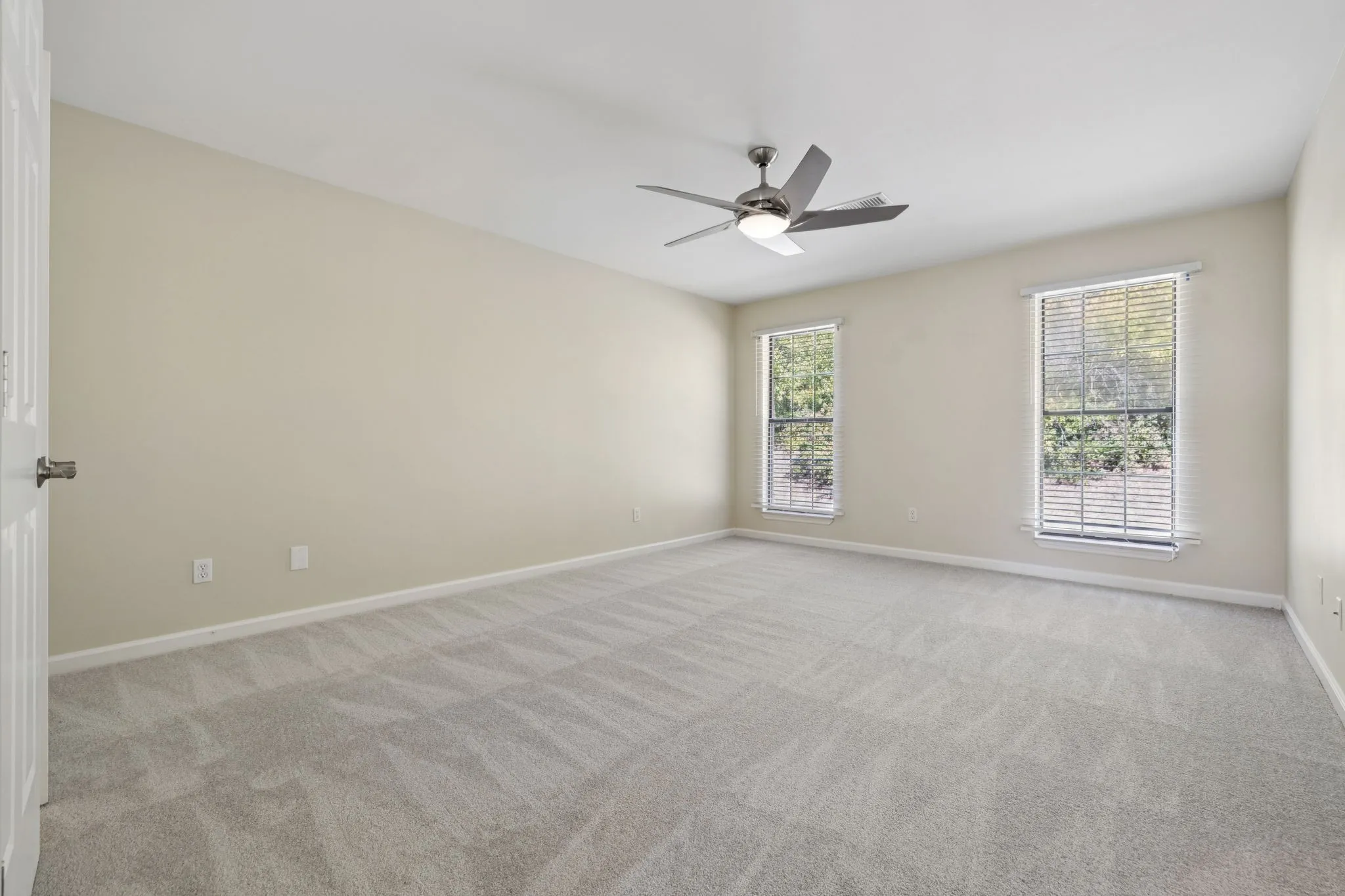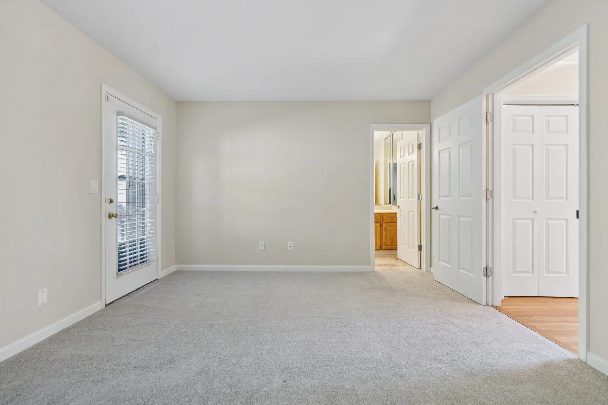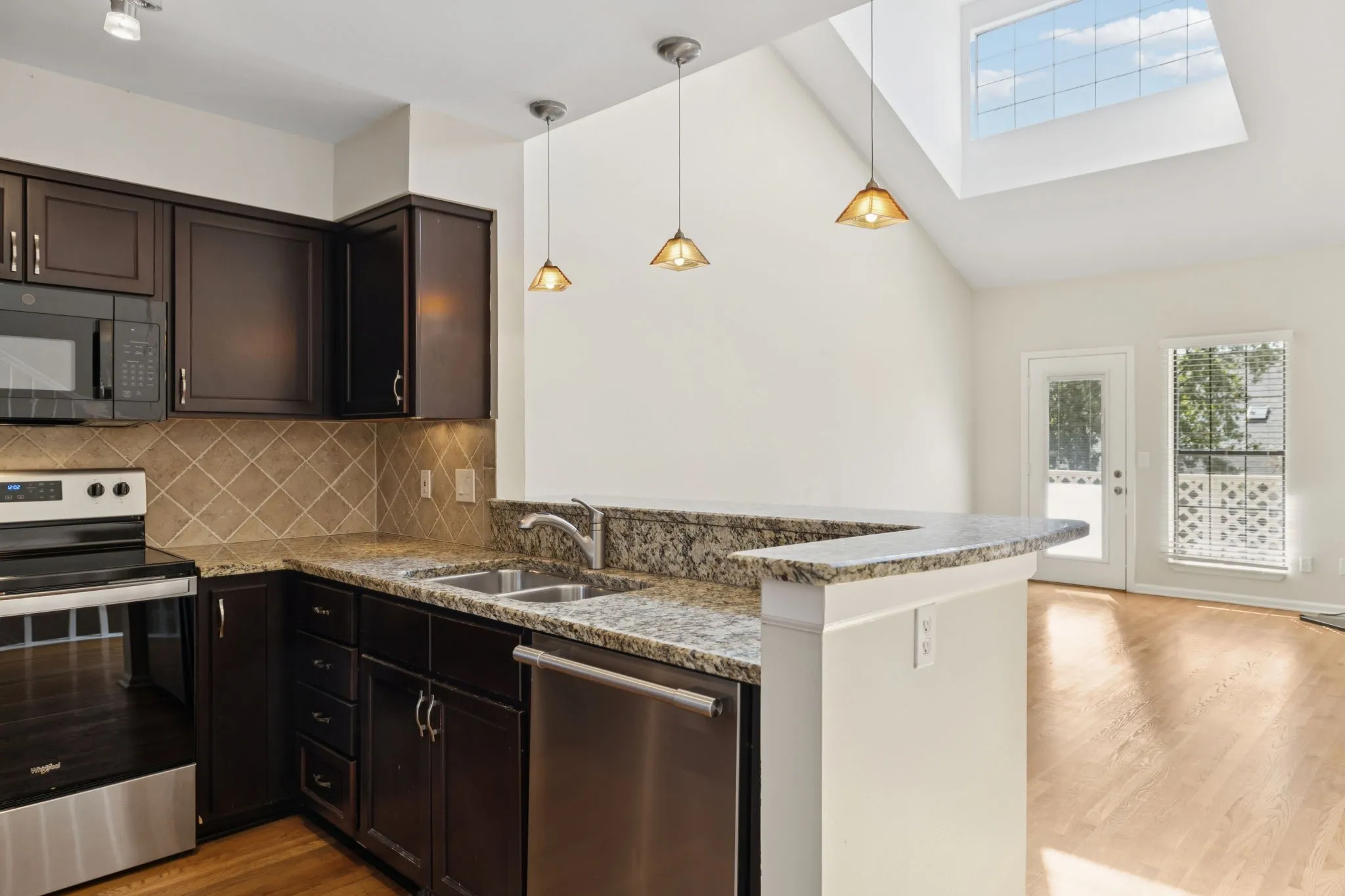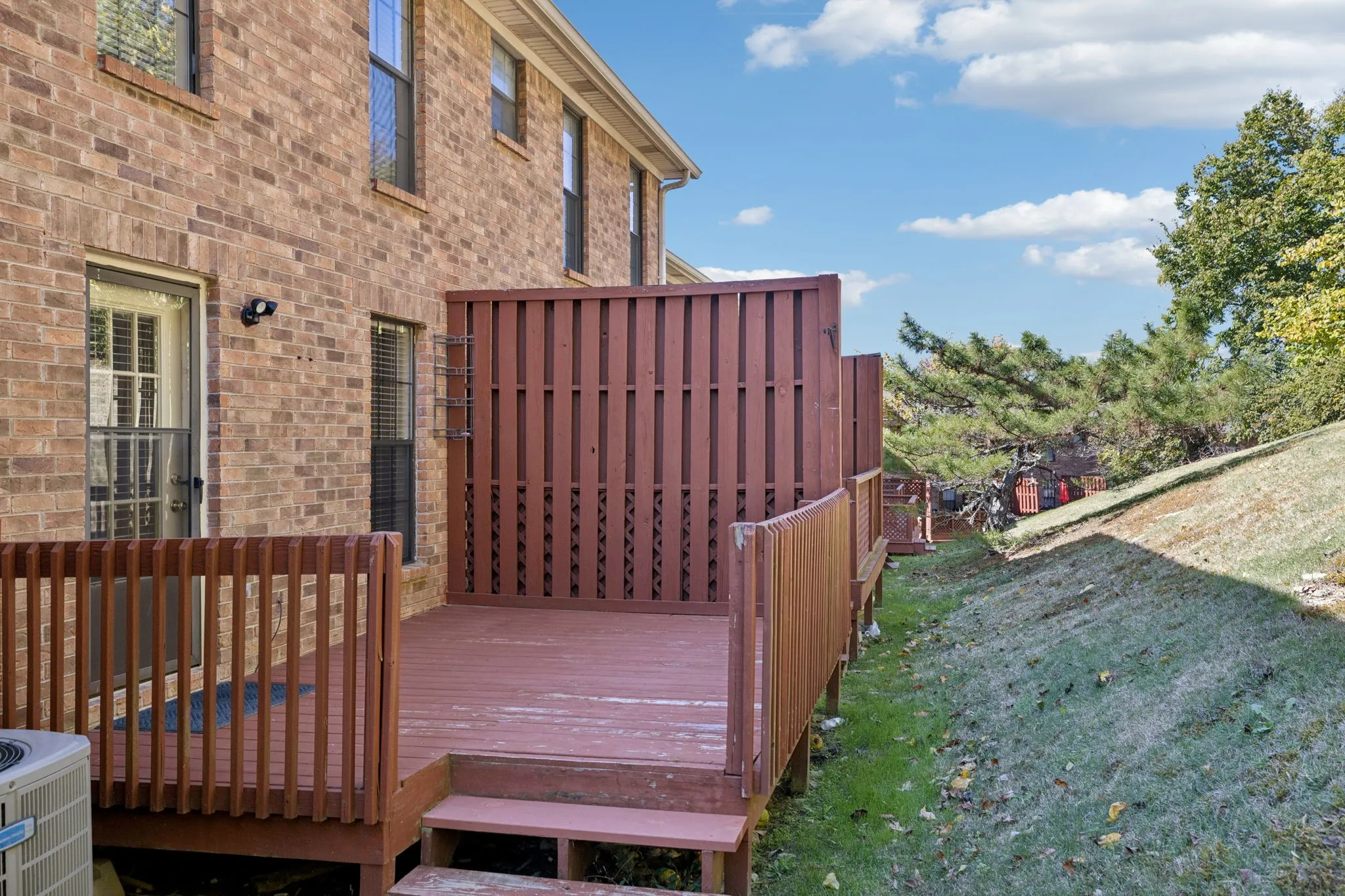 Outdoor living includes a private balcony overlooking Brentwood’s valley and a refinished back deck with serene views of a wooded common area and no rear neighbors.