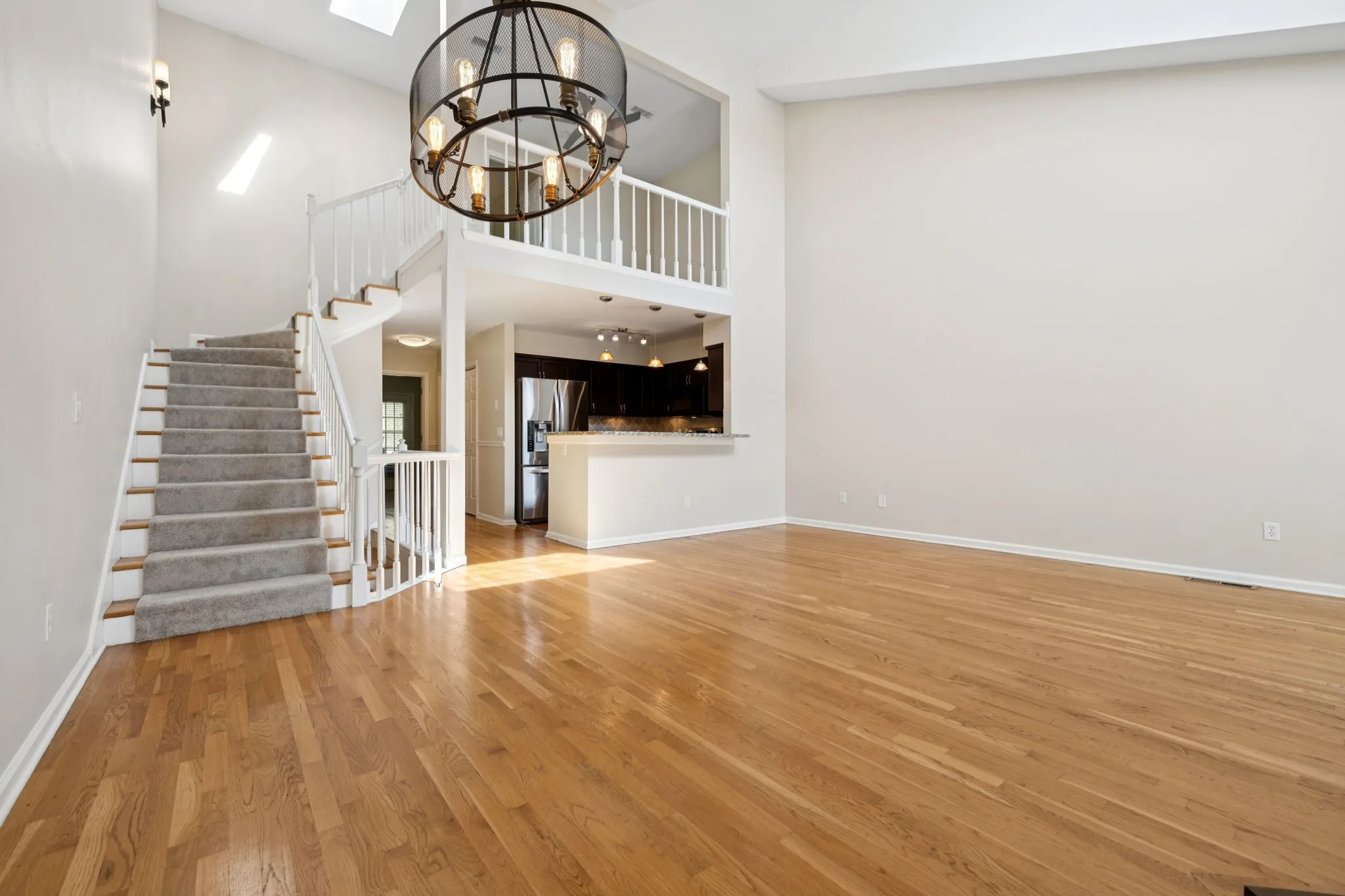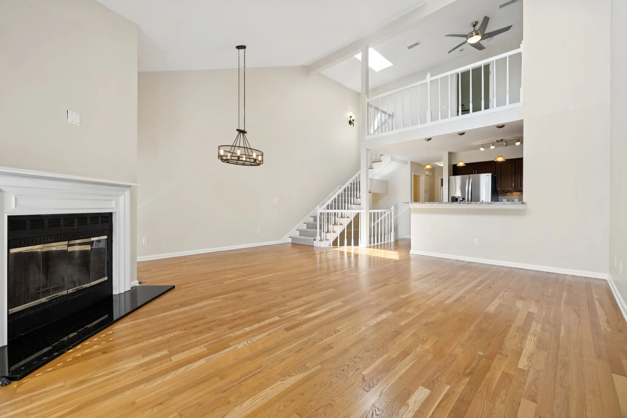 Inside, soaring 22-foot ceilings and abundant natural light create an open, airy feel. The spacious floor plan features an open-concept living, dining, and kitchen area with a cozy fireplace. Two primary suites include walk-in closets and full baths, while a flexible first-floor room functions perfectly as a guest bedroom or office. Brand new carpet throughout the home. The loft offers additional space for work or reading, and the finished basement—with brand-new carpet, paint, and a full bath—can serve as a third bedroom or bonus suite.