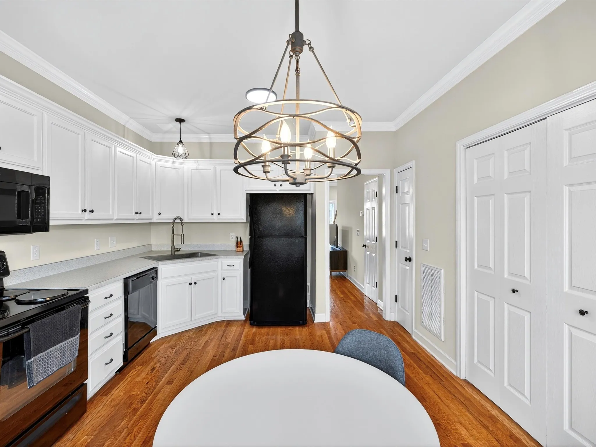 The main level features an open-concept floor plan with a bright living area that flows seamlessly into the kitchen and dining spaces, creating a comfortable environment for everyday living and entertaining. Upstairs, two spacious bedrooms and a full bath provide privacy and convenience, complemented by generous storage and natural light throughout.