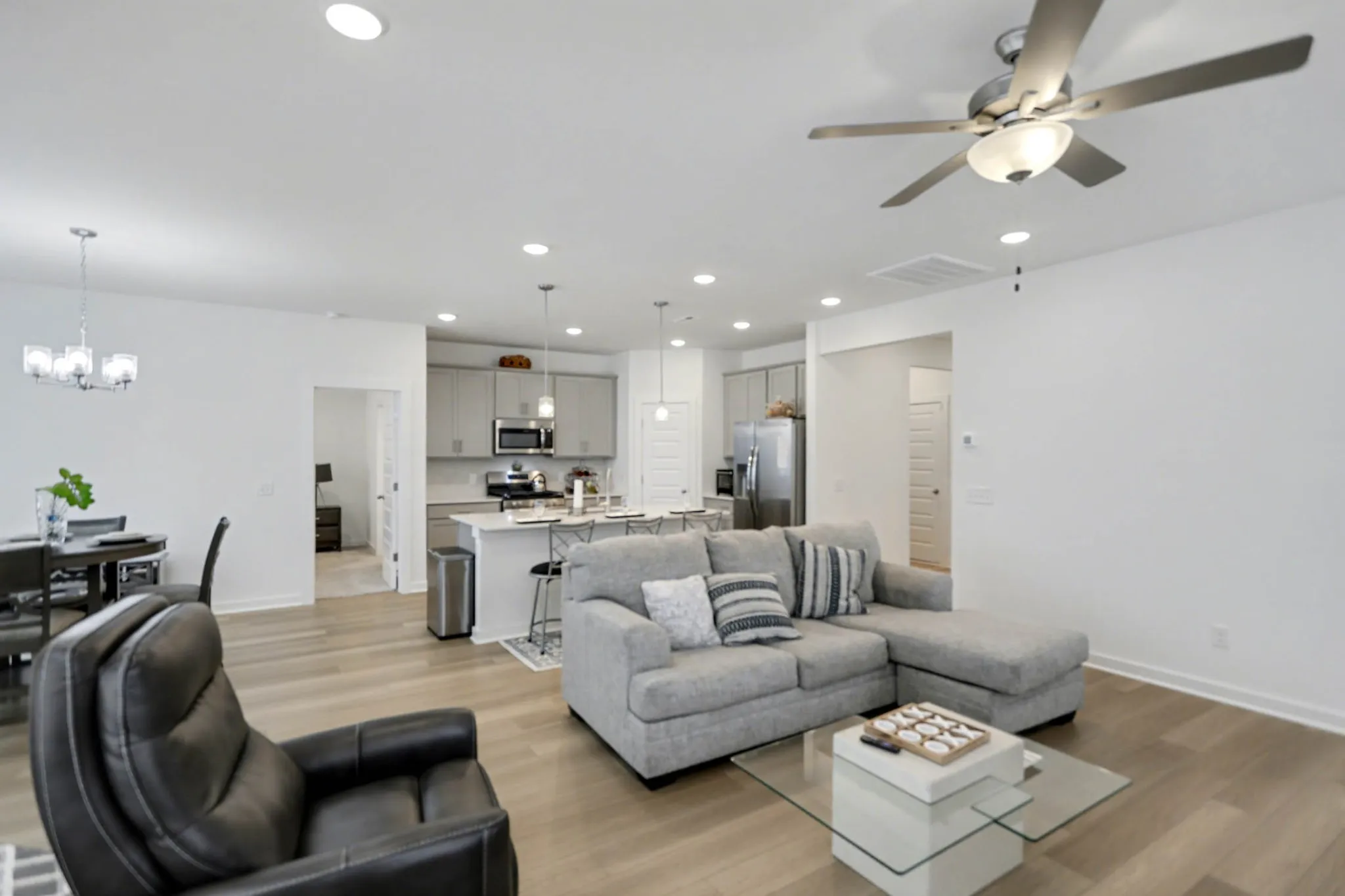 Beautiful 3-bedroom, 2-bath home with 1,556 square feet of thoughtfully designed living space. From the kitchen’s large island to the open-concept family room, every detail enhances comfort and style. The garage provides extra storage, while the spacious covered back patio invites you to relax and enjoy the breeze. Inside, the private primary suite features a stunning bathroom layout and a generous walk-in closet. Just 26 miles from Nashville with easy I-65 access at Exit 108, this Franklin floor plan perfectly combines flexibility, convenience, and Tennessee charm.