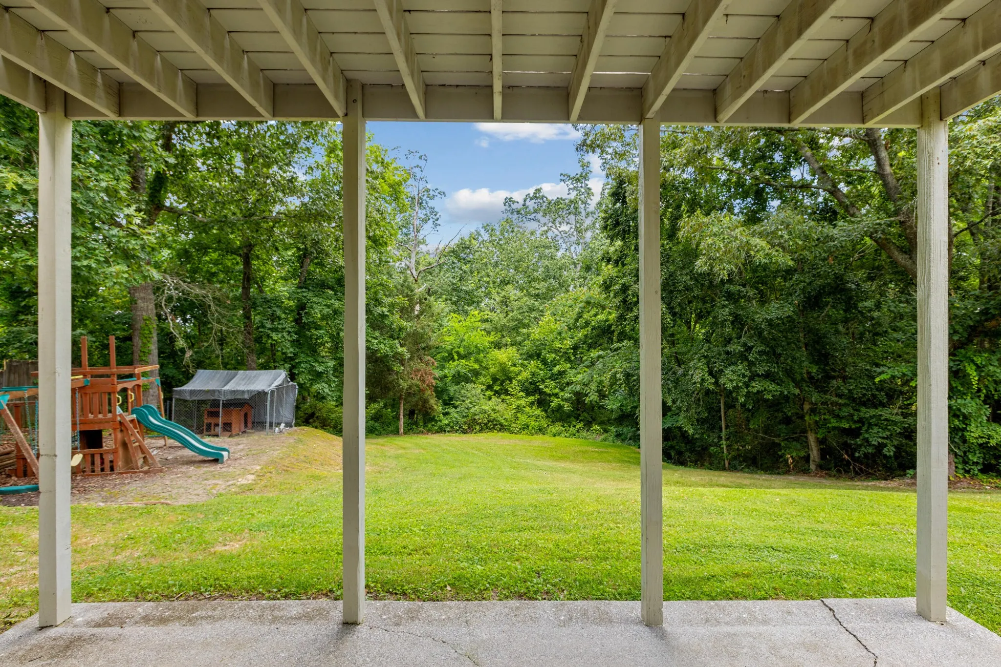 - Lot Features: Level, Wooded, Rolling Slope