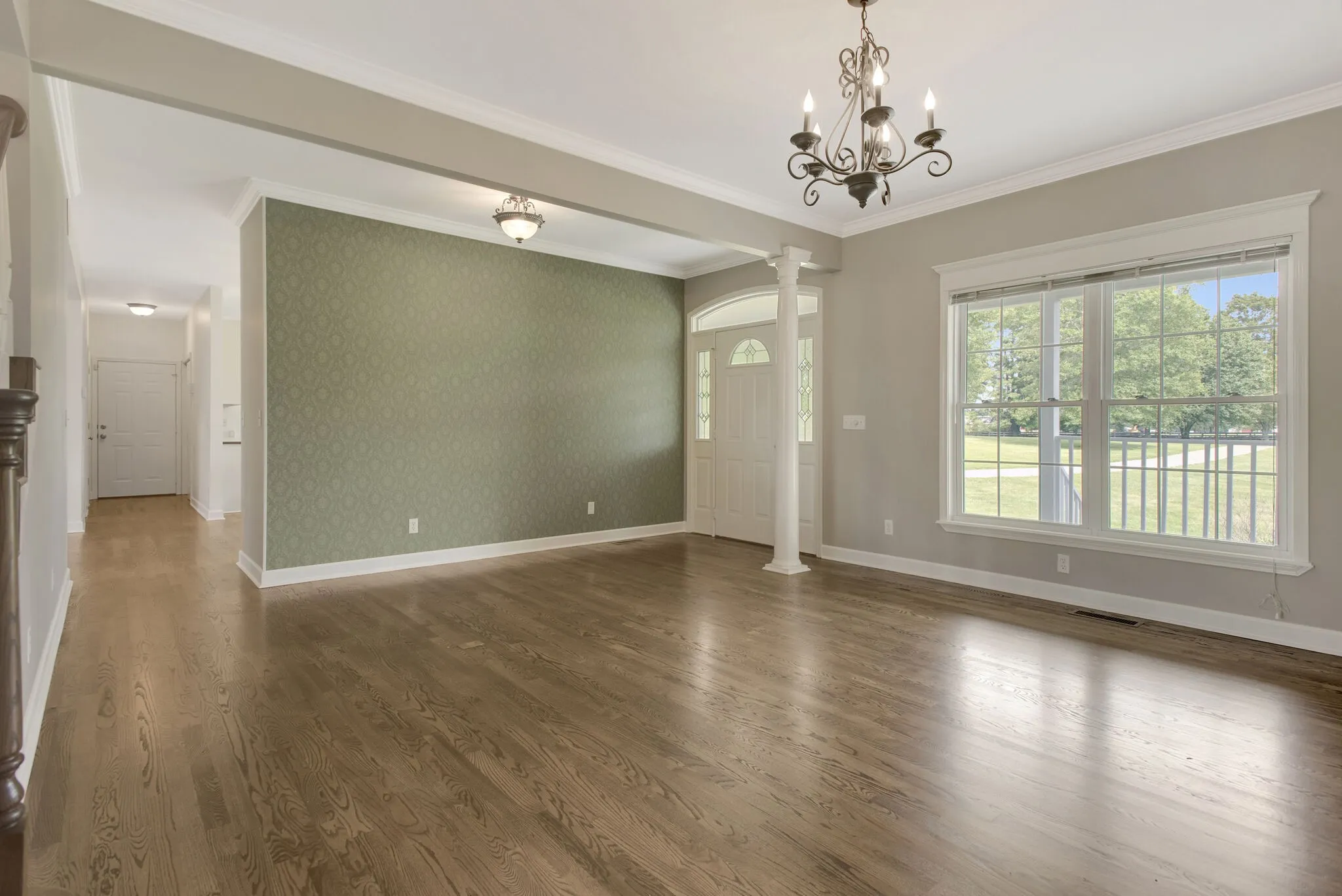 Equestrian countryside 4-bdrm home nestled on 5 landscaped acres w/wrapped around front porch * Gathering Room w/hardwoods; custom built-in cabinetry; gas logged fireplace * First floor primary bdrm. w/bath + adjacent secondary bdrm. (nursery, office) w/separate full bath access * Dine-in bayed breakfast area in fully equipped kitchen w/double ovens, refrigerator * island; walk in pantry; guest half bath * (17×10) laundry room opens to (16×13) screened in back porch + (16×14) deck * Two secondary bdrms. up w/study area (12×8) + playroom (17×11) w/attic access * Lower Level/Basement: Family room w/pool table * Flex rooms (14×13, (37×15) finished + 664 sq.ft. unfinished storage + Full bath (shower only) * (24×17) workshop/mechanical rm. * 3 car side entry garage * 2-stall barn * Landscaping, interior pest control included * Pet considered – no cats – $350 non refundable pet fee per approved pet based on number, size and breed * Application fee $65 per applicant 18 yrs. or older.