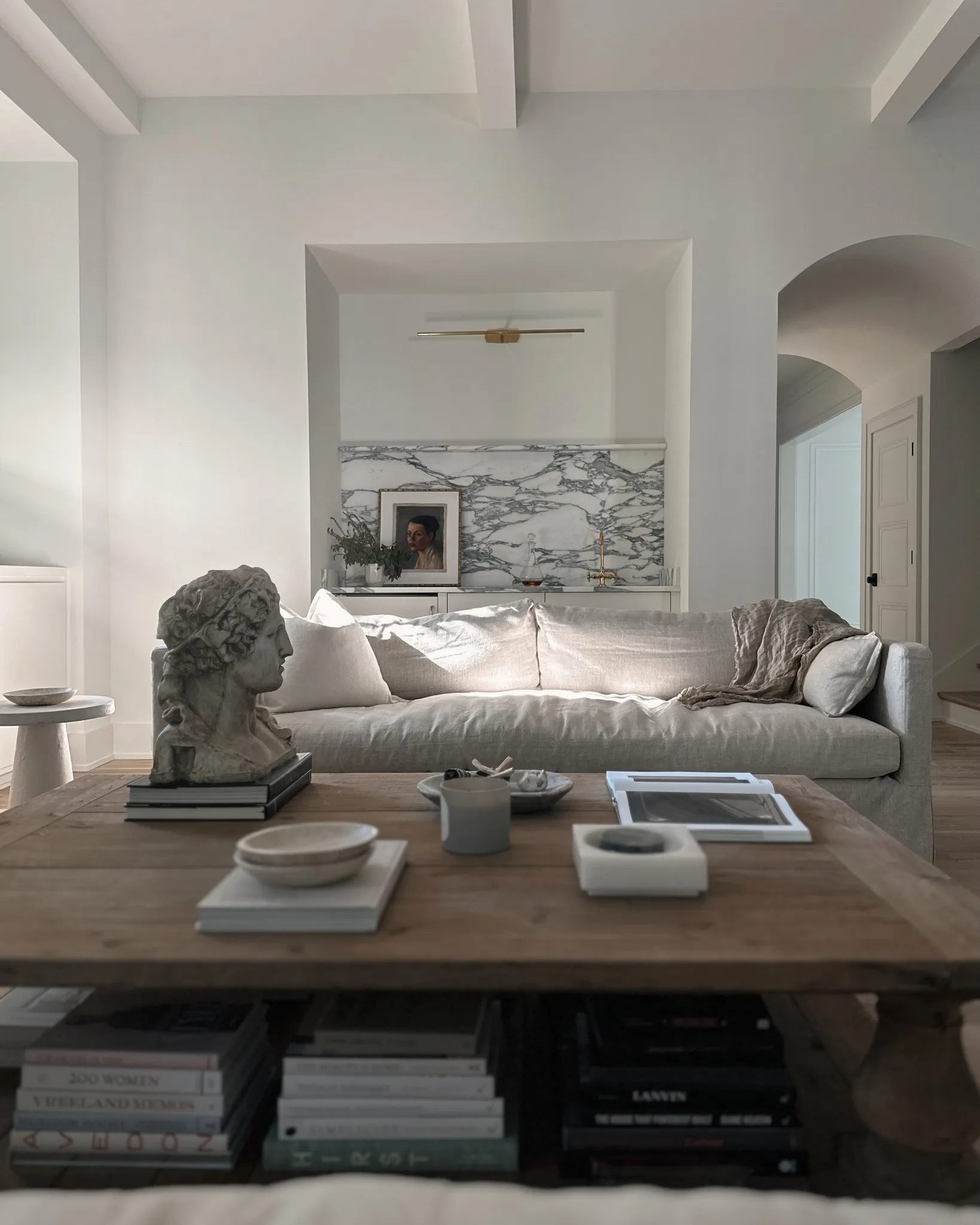 The main level features custom white oak floors, soaring ceilings, and a sun-drenched, open-concept layout that seamlessly connects the chef’s kitchen, scullery, custom bar, informal dining, and living room - all framed by custom marble details and timeless finishes. A flexible formal dining room adds versatility, while a cozy breakfast or reading room wrapped in windows offers a peaceful retreat among the trees.\n