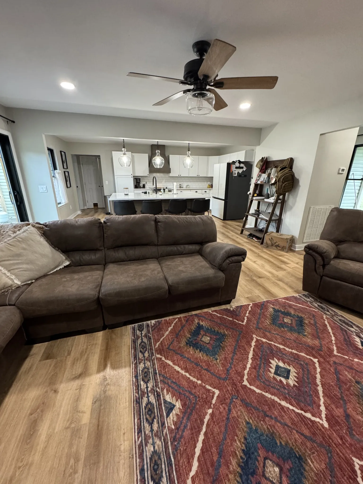Updates include open eat in kitchen with quartz tops & appliances, flooring, paint, lighting & fans 2019, roof 2020, windows 2021,