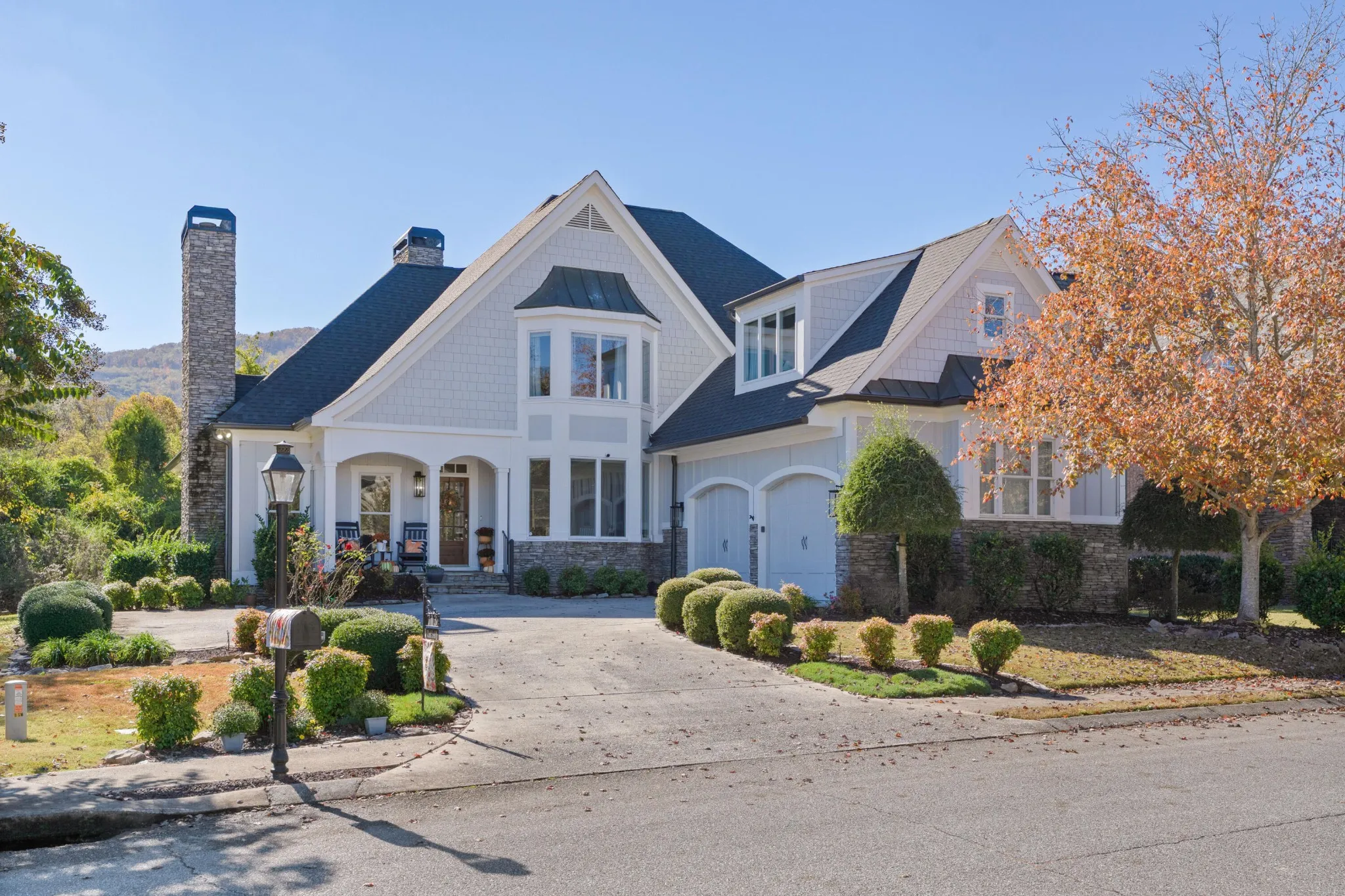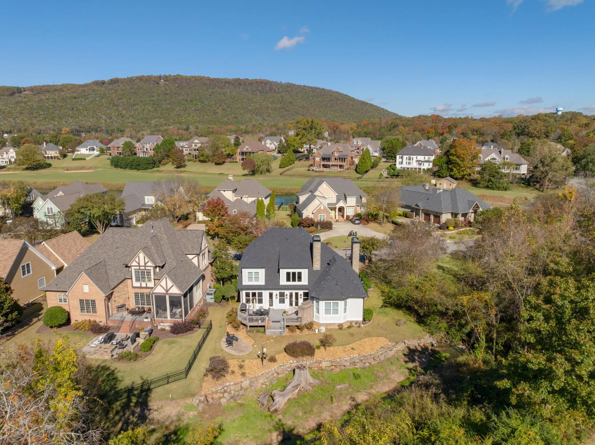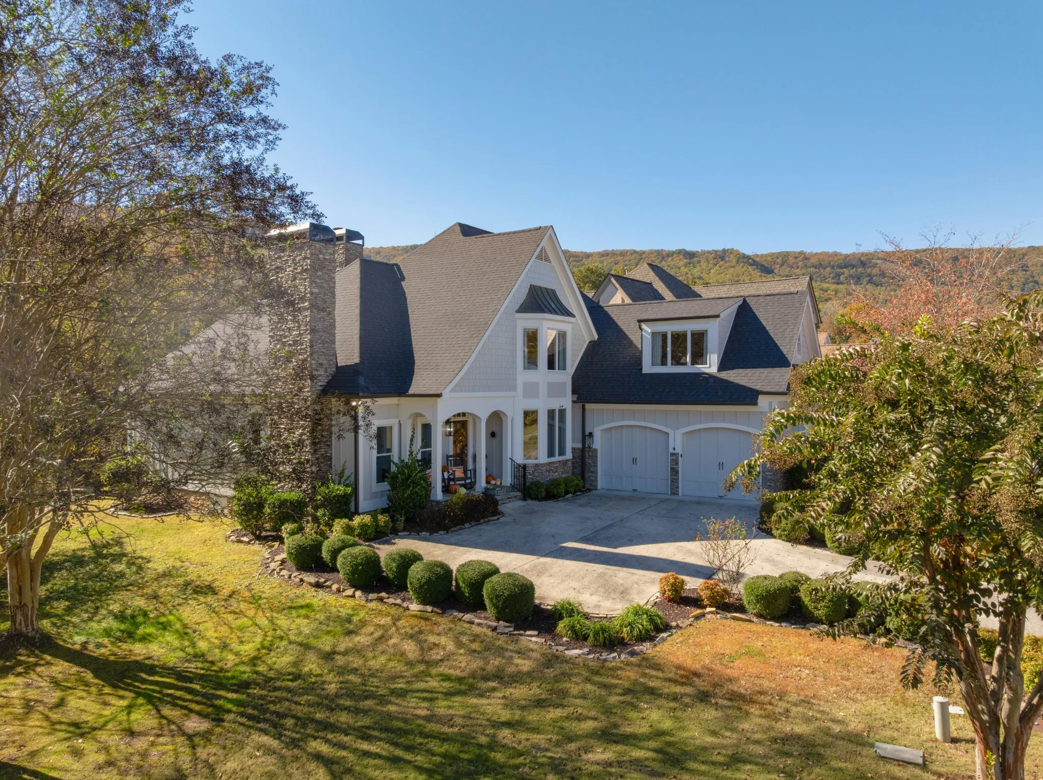 Quality updates and a fantastic floor plan in the desirable Black Creek golf course community just minutes from downtown Chattanooga. This 4 bedroom, 3.5 bath home overlooks the creek and enjoys views of the 11th green and 17th tee box. It also adjoins a community lot with a shady pergola further enhancing the lovely setting. Some of the many recent improvements include interior and exterior painting, roof, gutters and downspouts, irrigation, landscaping, architectural columns on the covered front porch, updated kitchen, butler’s pantry and baths, hardwoods in the primary bedroom carpeting in 2 of the upstairs bedrooms and industrial grade rubber tiles in the other, plumbing and light fixtures, 240 volt electrical outlet to charge your electric vehicle, and more. Some additional notable features include the open floor plan, crown moldings, 3 fireplaces, the primary suite on the main and the 2-bay garage. Your tour of this well-designed home begins with the foyer that opens to the office or living room on the left and the formal dining room on the right. The central great room has a 2-story ceiling, a wood burning fireplace that is also stubbed for gas, French doors to the rear deck, steps to the upper level and access to the light-filled kitchen and breakfast area. The kitchen has new granite countertops, tile backsplash, stainless appliances, soft-close cabinetry doors, pull-out drawers, under-cabinet lighting and is just steps from the elegant powder room, butler’s pantry adjoining the dining room, a laundry room with utility sink, and the garage which is perfect for everyday loading and unloading. The primary bedroom is on the opposite side of the main level and boasts a specialty ceiling, a walk-in closet with new organizer system, and the primary bath with new heated tile floor, separate vanities with quartz countertops, an oversized jacuzzi tub, shower with tile and glass surround, and a water closet with Toto Washlet Bidet.