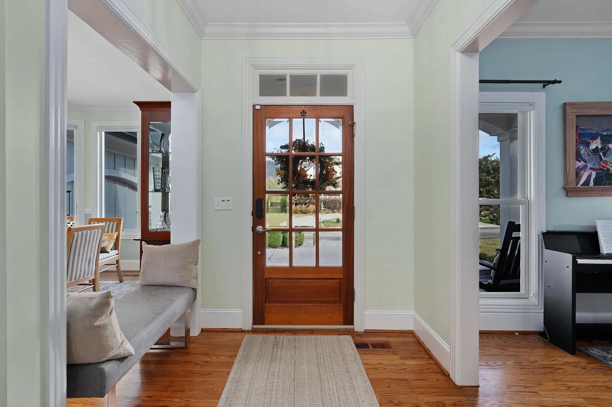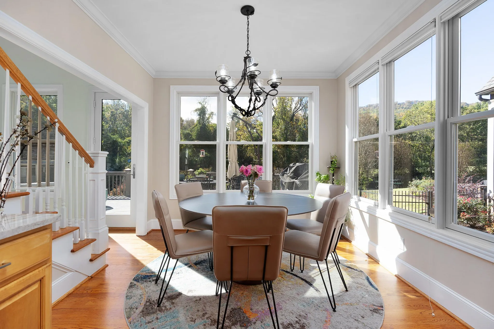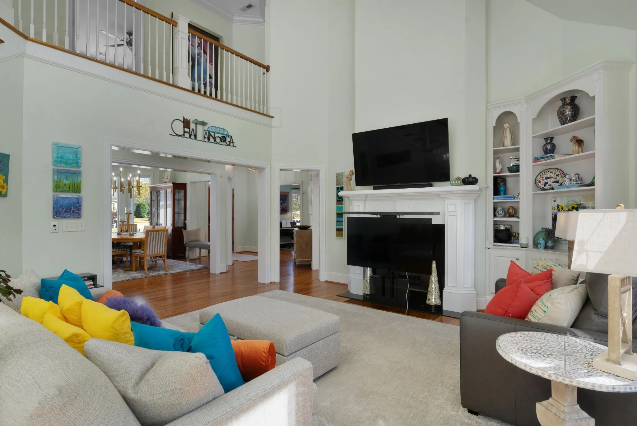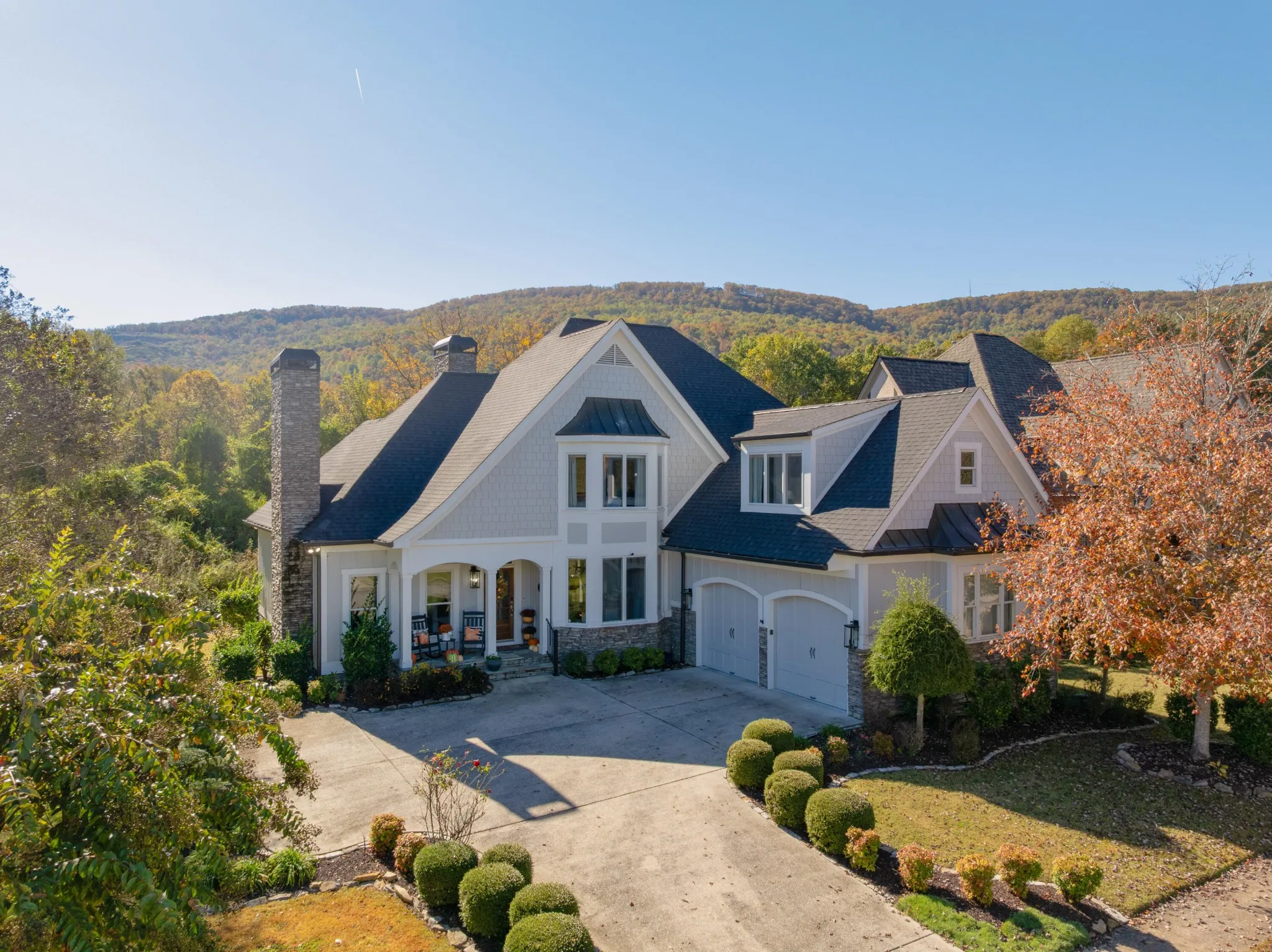 Quality updates and a fantastic floor plan in the desirable Black Creek golf course community just minutes from downtown Chattanooga. This 4 bedroom, 3.5 bath home overlooks the creek and enjoys views of the 11th green and 17th tee box. It also adjoins a community lot with a shady pergola further enhancing the lovely setting. Some of the many recent improvements include interior and exterior painting, roof, gutters and downspouts, irrigation, landscaping, architectural columns on the covered front porch, updated kitchen, butler’s pantry and baths, hardwoods in the primary bedroom carpeting in 2 of the upstairs bedrooms and industrial grade rubber tiles in the other, plumbing and light fixtures, 240 volt electrical outlet to charge your electric vehicle, and more. Some additional notable features include the open floor plan, crown moldings, 3 fireplaces, the primary suite on the main and the 2-bay garage. Your tour of this well-designed home begins with the foyer that opens to the office or living room on the left and the formal dining room on the right. The central great room has a 2-story ceiling, a wood burning fireplace that is also stubbed for gas, French doors to the rear deck, steps to the upper level and access to the light-filled kitchen and breakfast area. The kitchen has new granite countertops, tile backsplash, stainless appliances, soft-close cabinetry doors, pull-out drawers, under-cabinet lighting and is just steps from the elegant powder room, butler’s pantry adjoining the dining room, a laundry room with utility sink, and the garage which is perfect for everyday loading and unloading. The primary bedroom is on the opposite side of the main level and boasts a specialty ceiling, a walk-in closet with new organizer system, and the primary bath with new heated tile floor, separate vanities with quartz countertops, an oversized jacuzzi tub, shower with tile and glass surround, and a water closet with Toto Washlet Bidet.
