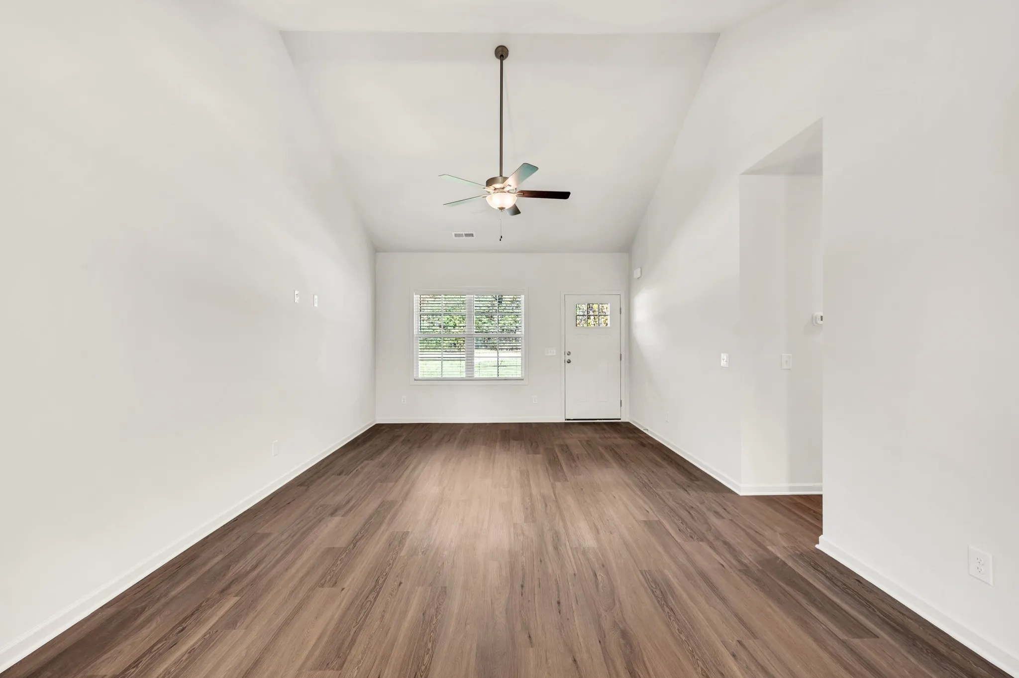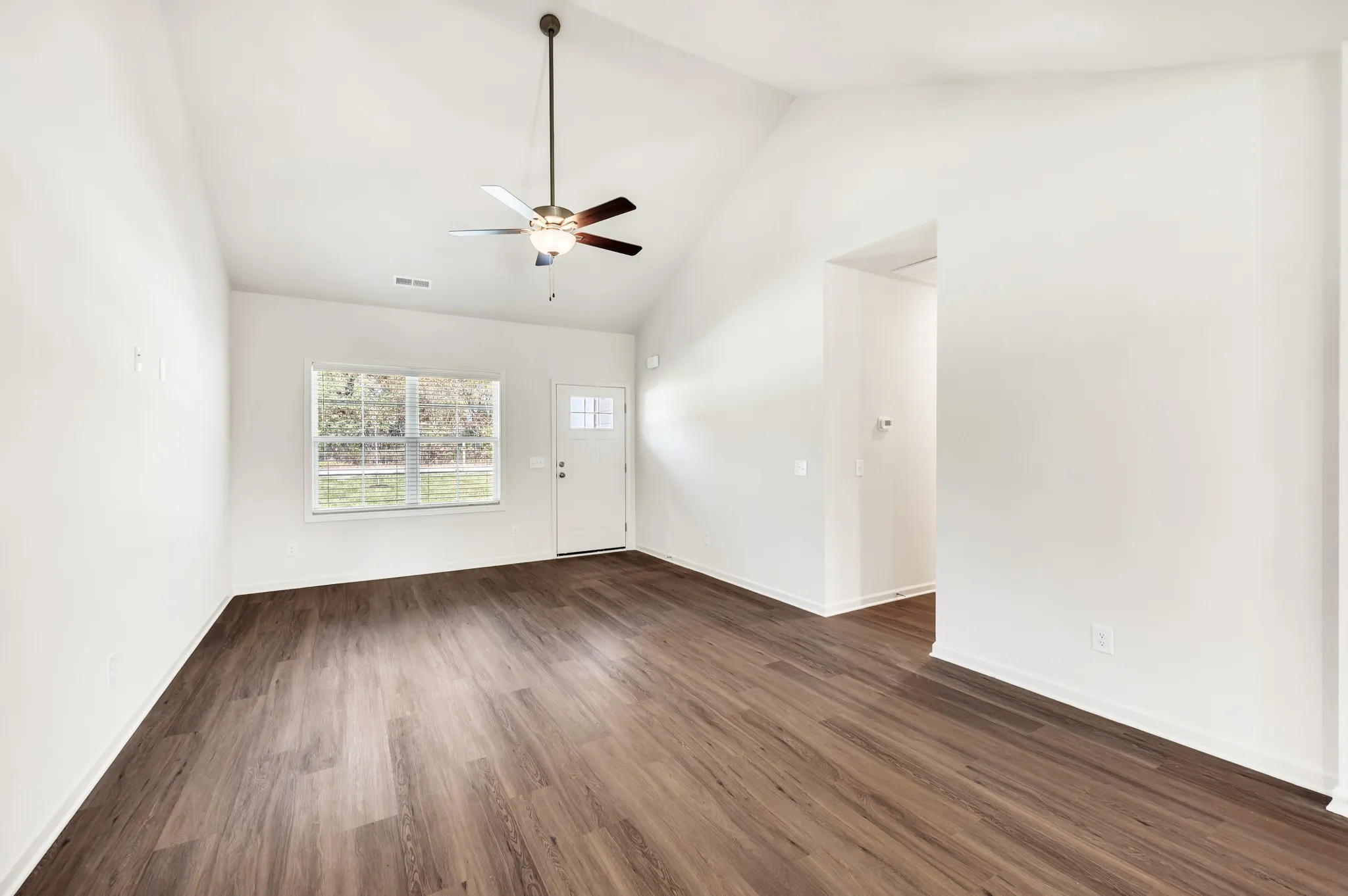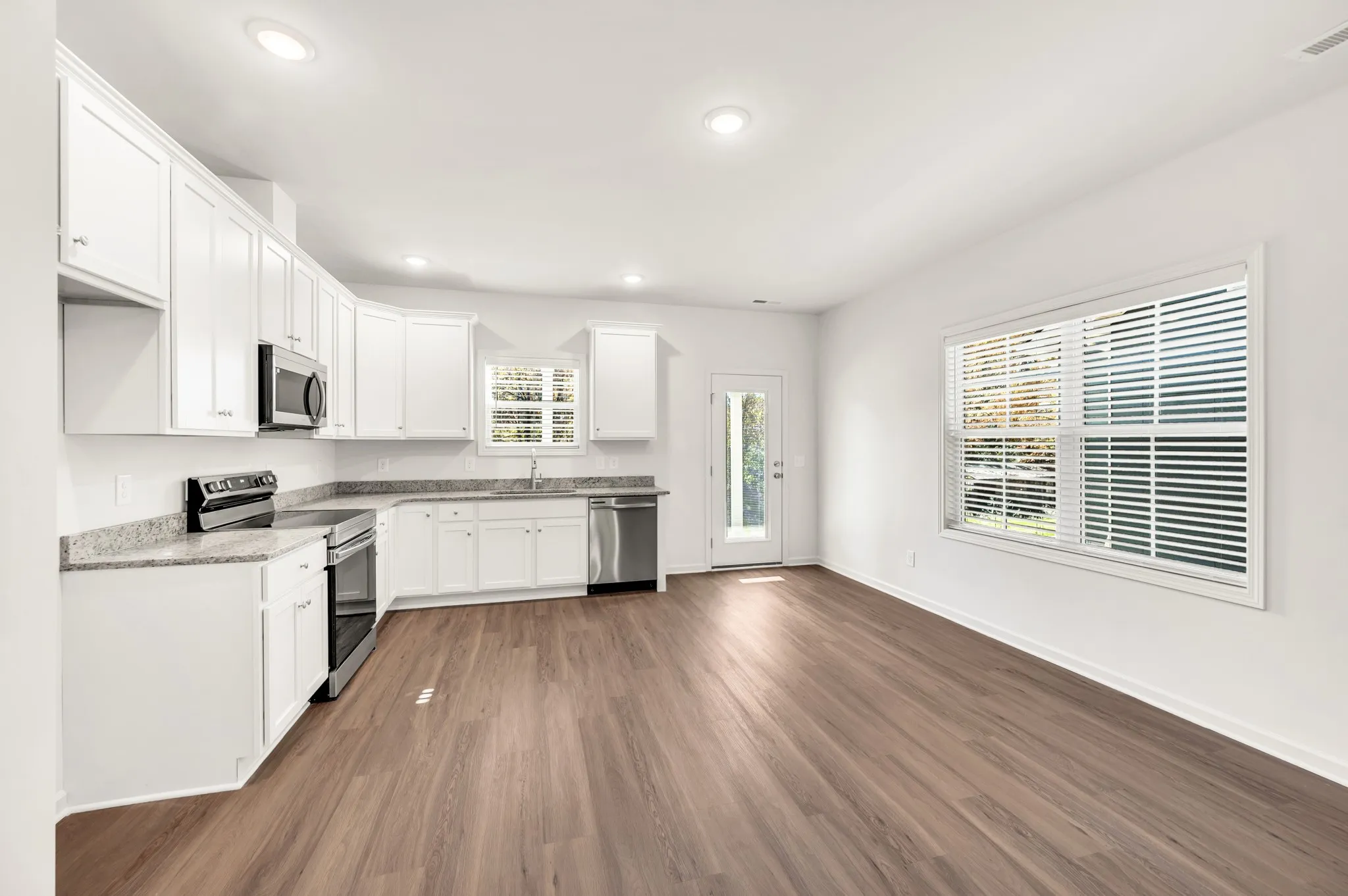Special financing available: $100 cash-to-close option or “Don’t Pay Until May” payment relief program for qualified buyers or $3,000 in closing costs. Ask for details. Experience the ease of one-level living in this smart, open layout. The kitchen flows directly into a combined dining and living space, giving you one large, functional area that feels bright, open, and versatile. The primary suite sits on its own side of the home with a spacious bath and walk-in closet. Three additional bedrooms and two full baths provide plenty of room for guests, office space, or hobbies—without any wasted square footage. A welcoming front porch, rear covered patio, and attached garage add practical everyday convenience.\n