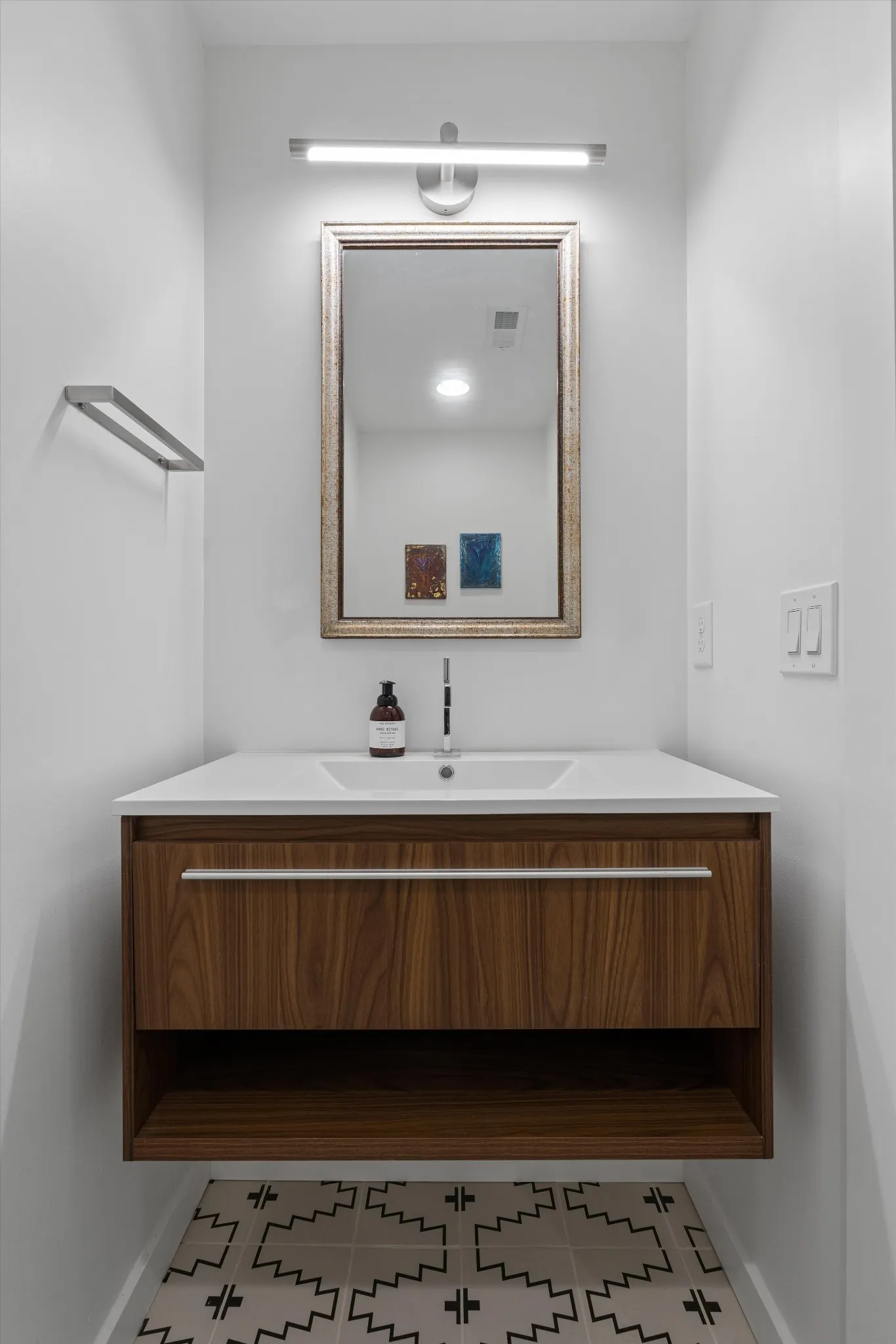 Tucked within Brentwood’s Wildwood neighborhood, this mid-century modern home has been completely reimagined for a new chapter of life. The Hermès orange front door sets the tone: bold, joyful, and full of character. Inside, light moves through open spaces that feel both peaceful and full of energy. Every finish was chosen with intention, blending natural materials, custom details, and a sense of warmth that makes the home feel grounded and alive.\n