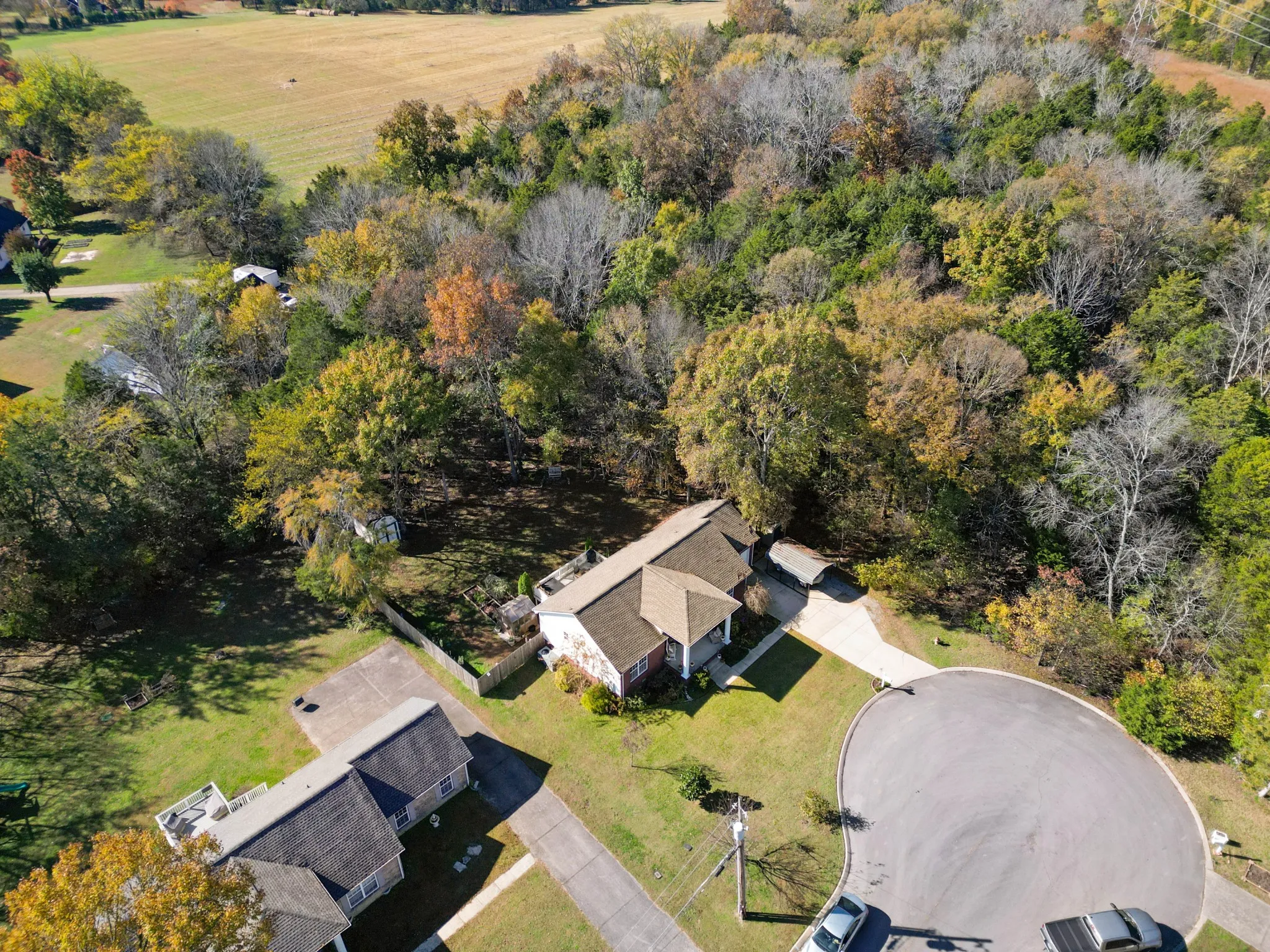 - Lot Features: Level, Cul-De-Sac, Private, Wooded