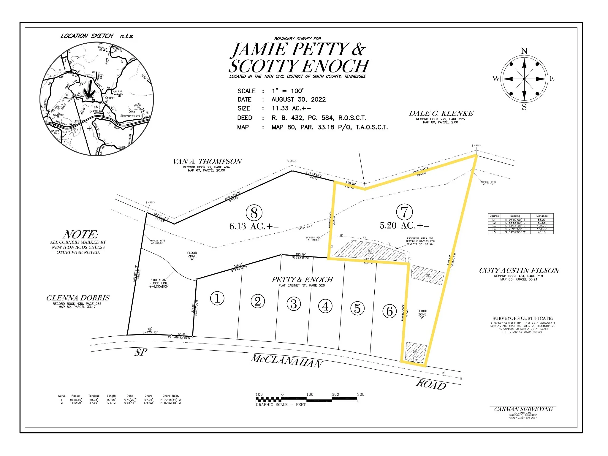5.2 level acres in a great location! Owner terms available! Call Jamie Petty for more information 615-418-6244. This tract is clear, level, and ready for your new home. Already three bedroom septic approved with utility district water available at the road. Only 10 minutes to Gordonsville, 20 min to Lebanon, and 40 min to BNA. An ideal building site is in line with the neighboring homes while an additional 4.5 acres out back create a huge flat yard offering plenty of room to play. Light restrictions, but new doublewides are allowed. This property is in the 100 year flood plain, but flood insurance rates have been very reasonable.