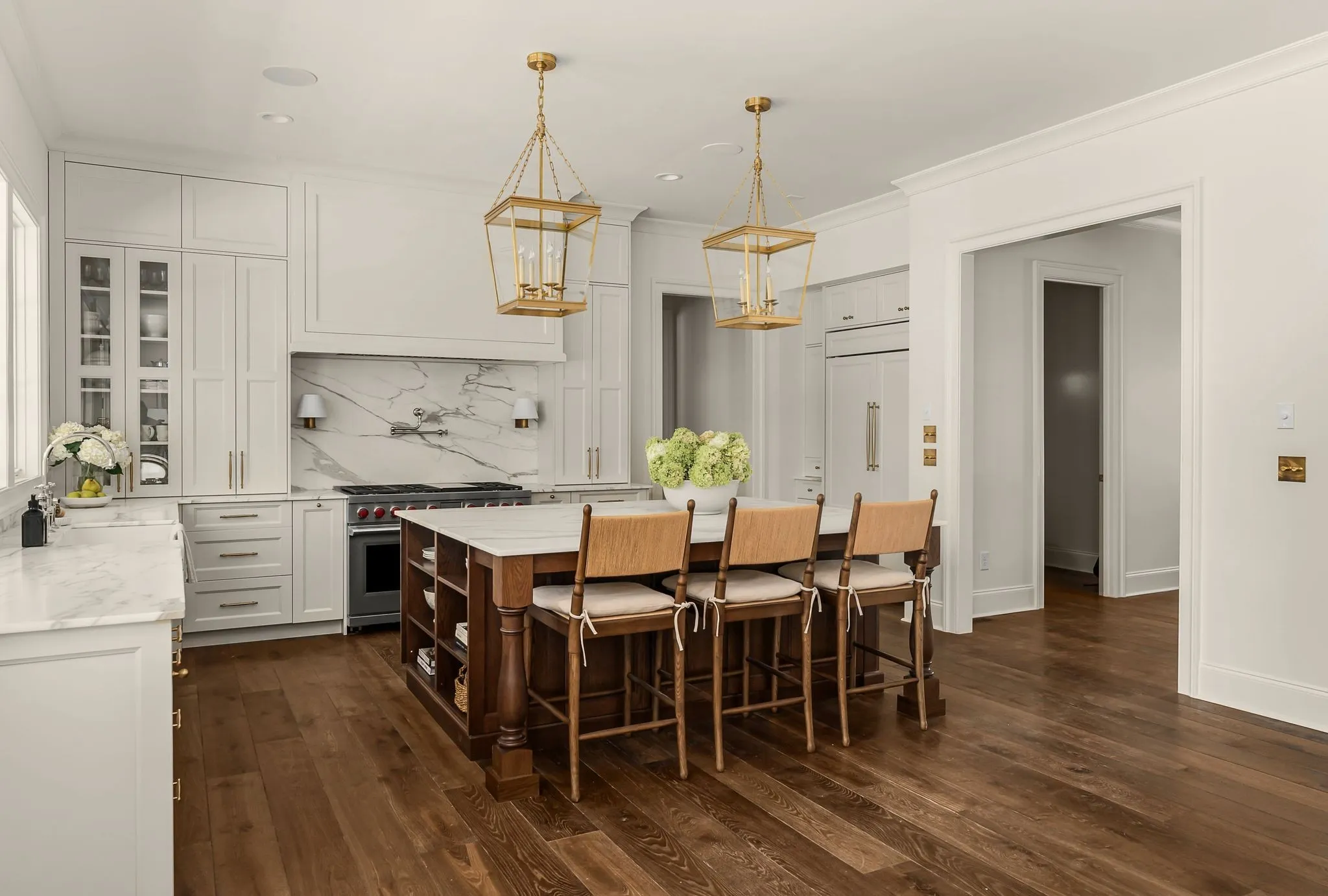 Welcome to 6137 Bresslyn Rd., a gated home created by Manor Designs in beautiful West Meade. Nestled on a spacious .97 acre corner lot you will be swept away under a canopy of trees to a french country inspired home that is nothing short of breathtaking. Every detail reflects elegance, comfort & livability. The beauty starts outside where you are welcomed by a grand stone staircase and gas lanterns setting the tone for the custom finishes found throughout including three fireplaces, curated lighting, built in speakers in several zones, custom draperies & top of the line materials and appliances that elevate daily living. Ground level offers EV charging outlet in garage while inside sits a theatre, guest bedroom & bath, french cobblestone floored mudroom with elevator to main floor. Once on the main level enter into the light filled luxury gourmet kitchen & living room that opens seamlessly to the full length all season veranda with built in smart enabled heaters, fans & stone fireplace that leads to a large backyard with pool & pool house. Pool house includes, built in kitchen & dining while inside offers heated and cooled sitting area with bathroom & changing room. Back inside your main level you will find a powder room w/ italian calacatta marble sink, dining room, office , 1 of 2 laundry rooms, primary suite w/fireplace & primary bath that offers heated flooring, custom closet, marble surround tub with stunning balcony. Upstairs includes 5 bedrooms all with a uniquely designed bathroom, secondary laundry & living space with custom built-ins. Outside the possibilities are endless from a garden, to a sport court or anything you can dream . This is more than a home, it’s a lifestyle of refinement, ease and unforgettable gatherings.