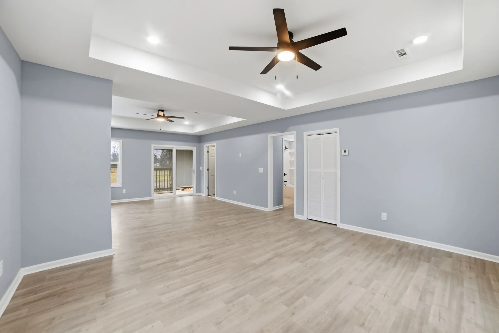 Inside, you’ll enjoy an open floor plan, moderately sized bedrooms, tray ceilings with accent lighting, and ceiling fans in every room—creating a relaxing atmosphere year-round. The kitchen features stainless steel appliances, granite countertops, and durable water-resistant laminate flooring throughout the main living areas, with tile flooring in the bathrooms and utility room.