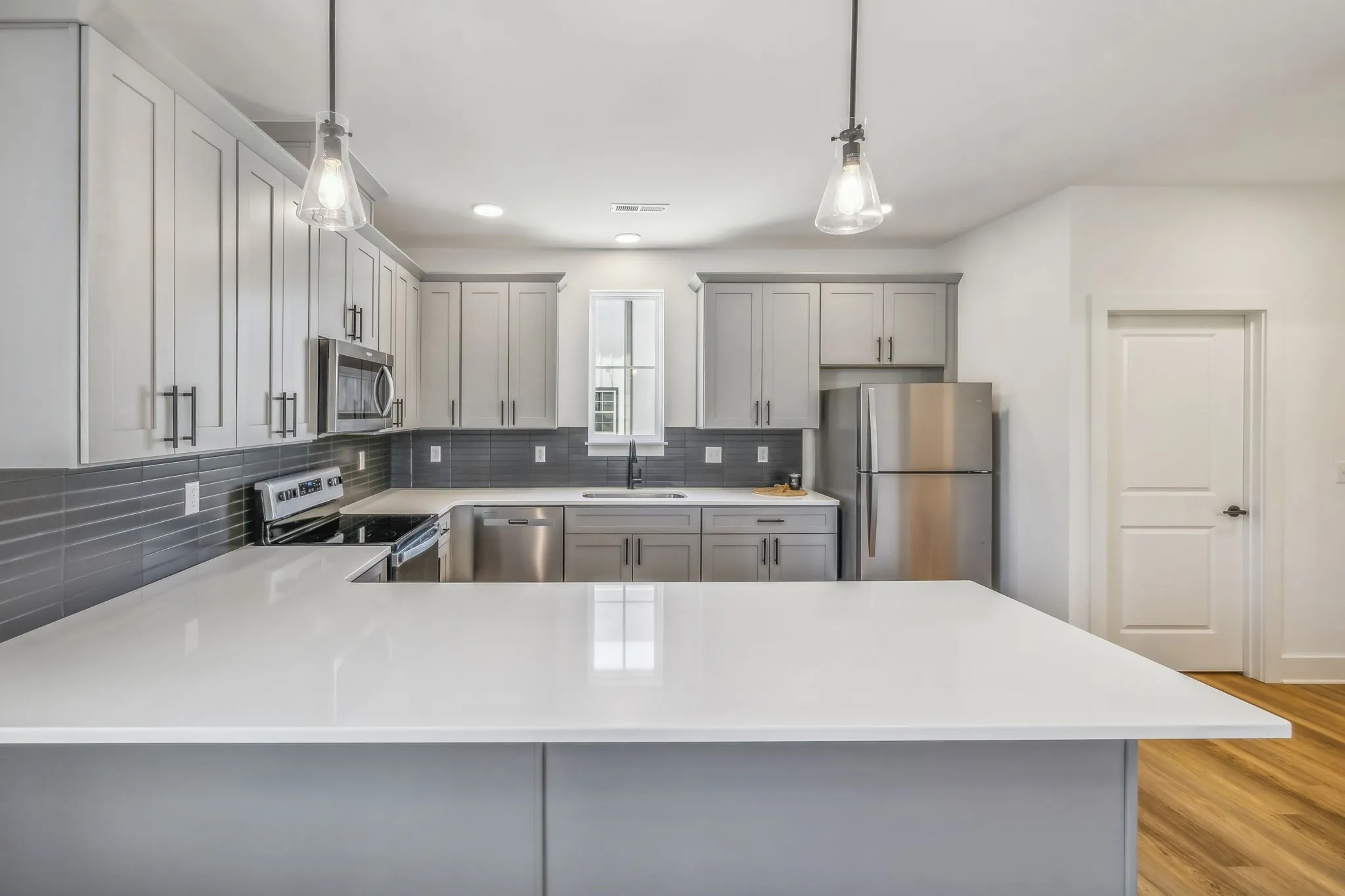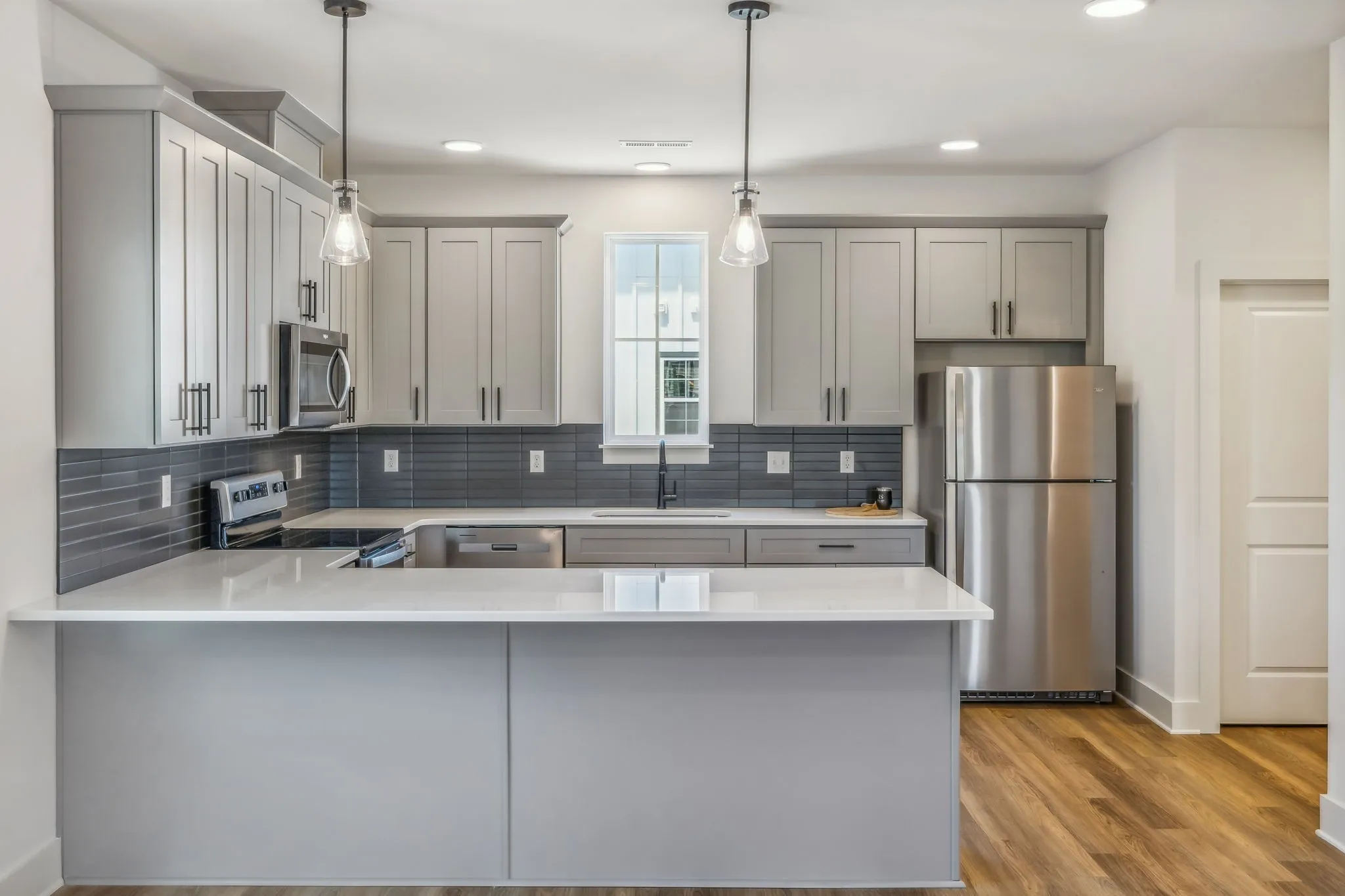 This Ezra floor plan is a rare end unit that measures 2114 square feet, with more windows and larger rooms than interior units! Featuring 9 ft. ceilings, three bedrooms each with a private bath, and Two car garage. This brand new home offers gorgeous soft-close full overlay cabinets and stainless steel appliances. Urban design featuring gray cabinets and white quartz, upgraded tile, hardware, and lighting packages. Upgraded unit with no carpet! Visit Soren, a gated community within walking distance of City Park!