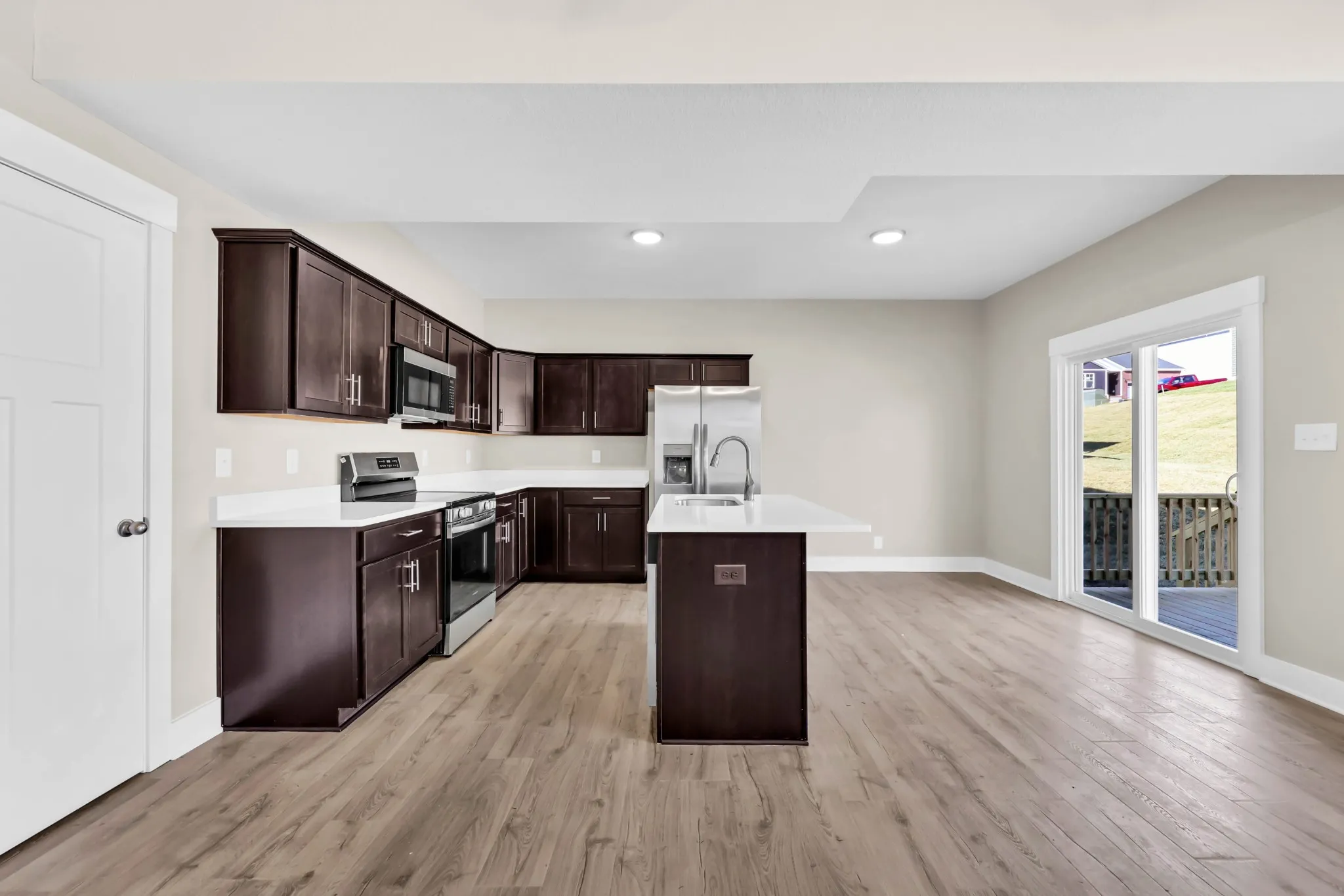 Welcome to the beautiful Rhylee Floor Plan in the sought-after Cardinal Creek neighborhood! This brand-new 3-bedroom, 2.5-bath home offers all bedrooms conveniently on one level. The open-concept design seamlessly connects the kitchen and living room, creating the perfect space for entertaining and everyday living. Enjoy cozy evenings by the fireplace or relax outdoors on the covered back deck. The home also features a spacious 2-car garage and a great location close to downtown Clarksville, Ft. Campbell, and a variety of dining and entertainment options. Don’t miss your chance to own this stunning new construction home! The home will feature either LVP or Laminate flooring along with either Granite or Quartz countertops.