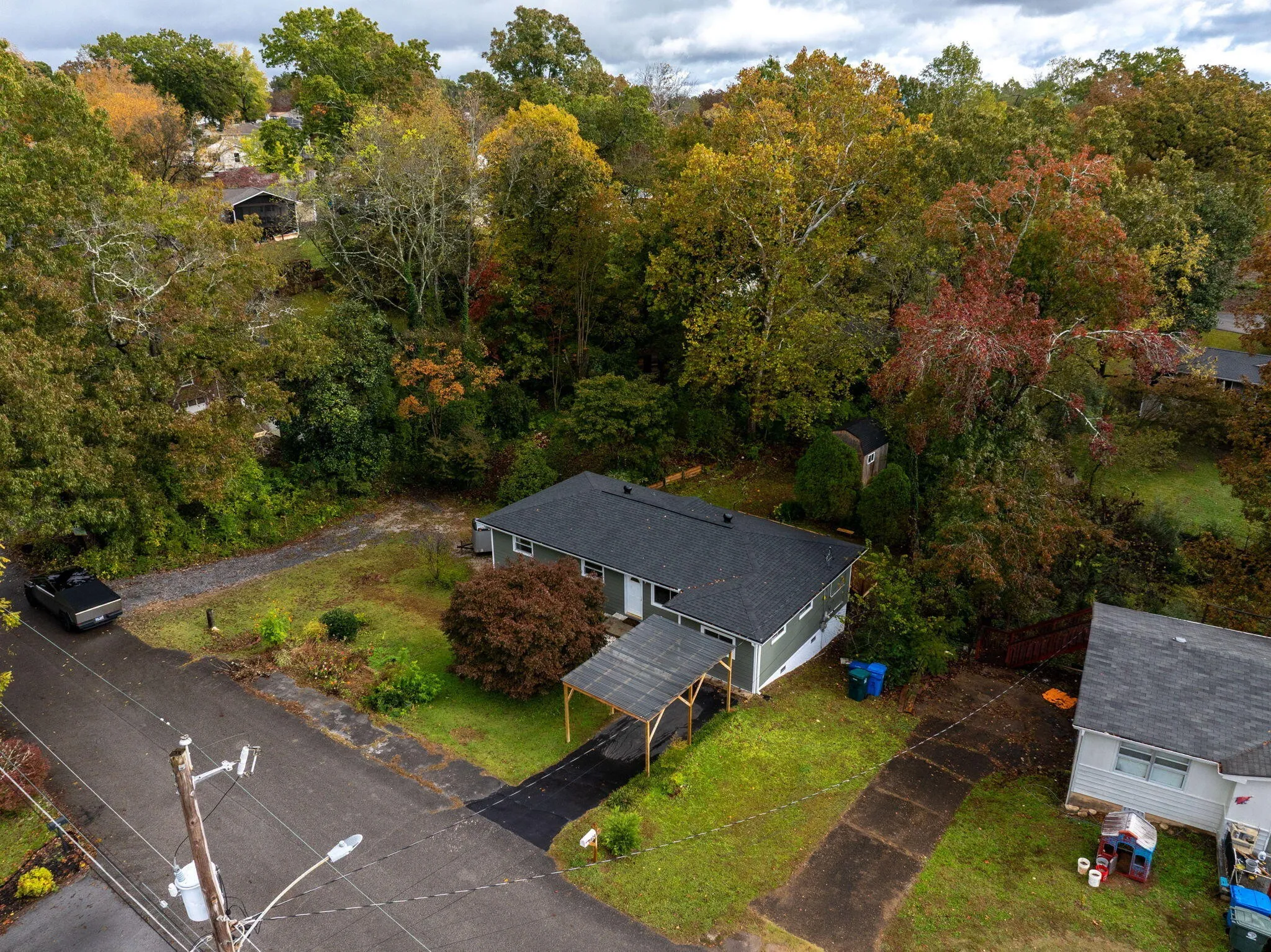 Outside, enjoy the new 200 sq. ft. deck, mature trees, and mountain air, or relax under the single carport. This home has been fully refreshed with new siding and gutters, a 2024 heat pump and HVAC system, updated electrical, a 2022 water heater, foundation and sump pump improvements with a transferable guarantee, four new windows, new sliding and French doors, and a 10x12 outbuilding for extra storage.\n