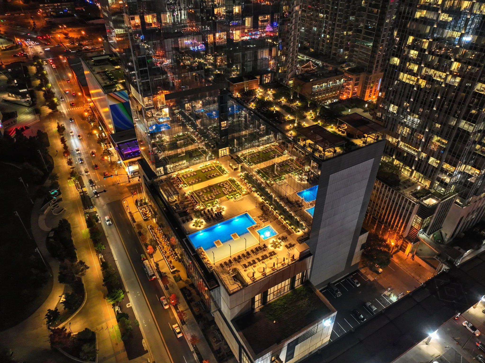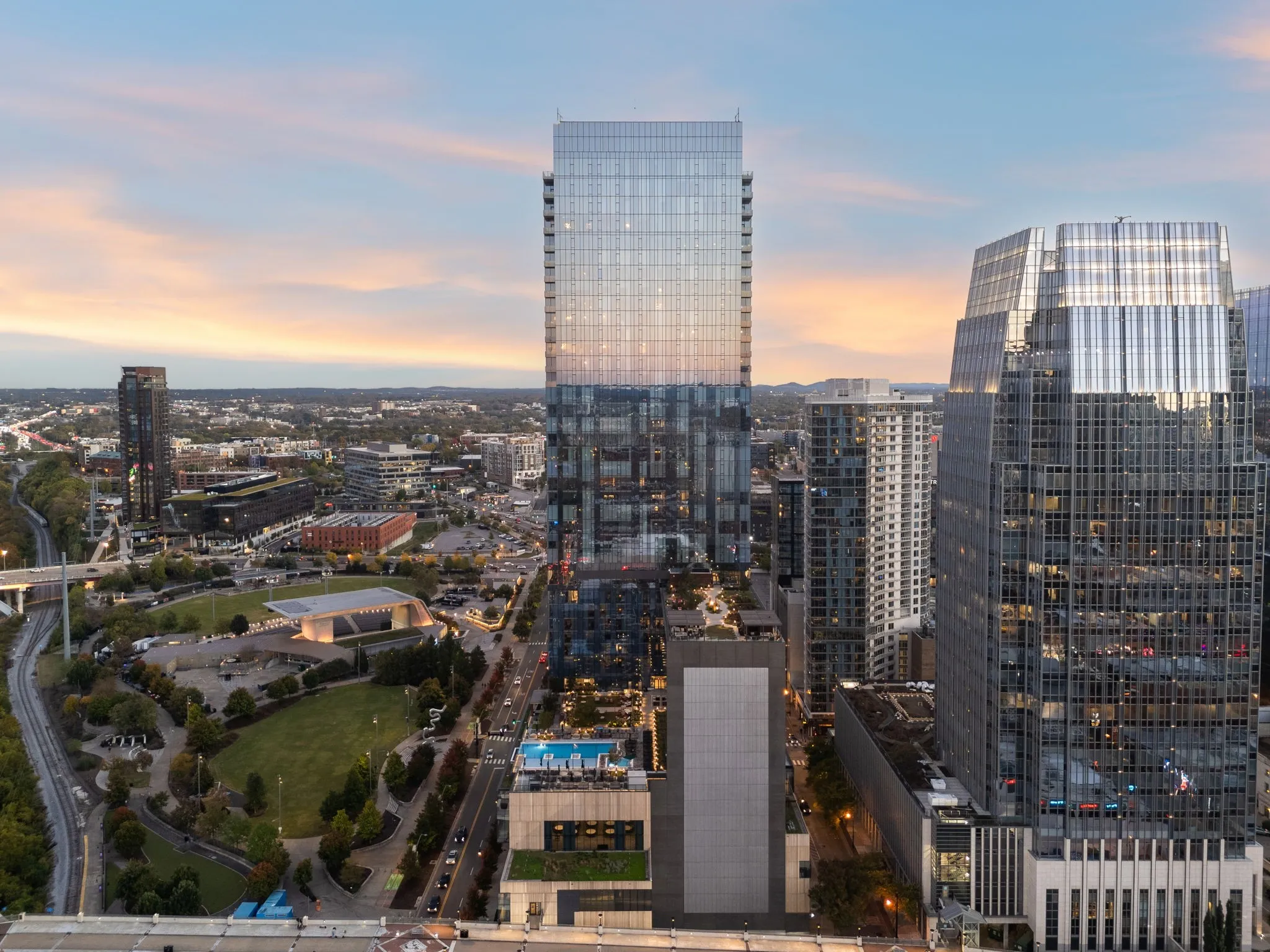 Residents enjoy world-class amenities: a resort-style pool, full-service spa, state-of-the-art fitness center with yoga and training studios, sky deck and garden, private lounge, media room, and 24/7 security and concierge services. Dining, entertainment, and Nashville’s top venues are just steps from your door.
