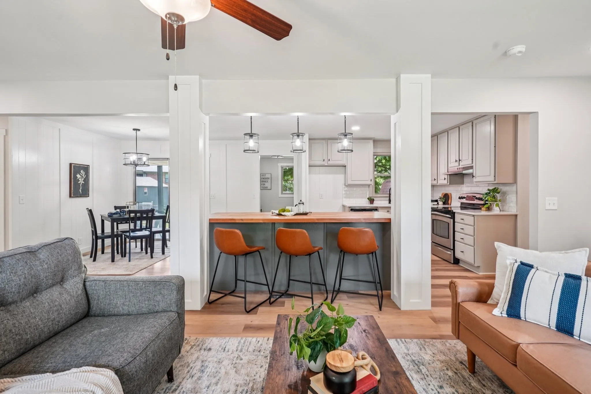 FULL RENOVATION + OVERSIZED ISLAND + REAR SHOP – Welcome to your dream home in Smyrna! This beautifully renovated 4-bedroom, 2-bath brick ranch offers the perfect blend of modern style and classic charm. Step inside to find an all-new open-concept floor plan featuring fresh neutral paint, modern flooring, and designer lighting throughout. The gourmet kitchen is a true showstopper – complete with a massive quartz island, stainless steel appliances, and custom cabinetry, perfect for entertaining or family gatherings. The open living and dining areas flow seamlessly, creating a warm and inviting space. Both bathrooms have been fully transformed with spa-inspired finishes, designer tiles, and modern vanities. The four spacious bedrooms include a private primary suite with an en-suite bath for ultimate comfort. Enjoy the outdoors in your large, fenced backyard, ideal for pets and play. A cooled rear shop provides flexible space for a home office, gym, or studio, while the storage barn, carport, and paved driveway add everyday convenience. This home has been pre-inspected, with updates including new flooring, fixtures, paint, and energy-efficient windows. The front roof (2022) and rear roof (2024) ensure peace of mind. Move-in ready and perfectly located, this Smyrna home for sale offers suburban tranquility with easy access to commuting routes, Nissan, the vibrant Nashville lifestyle, and Murfreesboro’s charming downtown. Schedule your private showing today – and ask about 100% financing available through our preferred LOCAL lender!