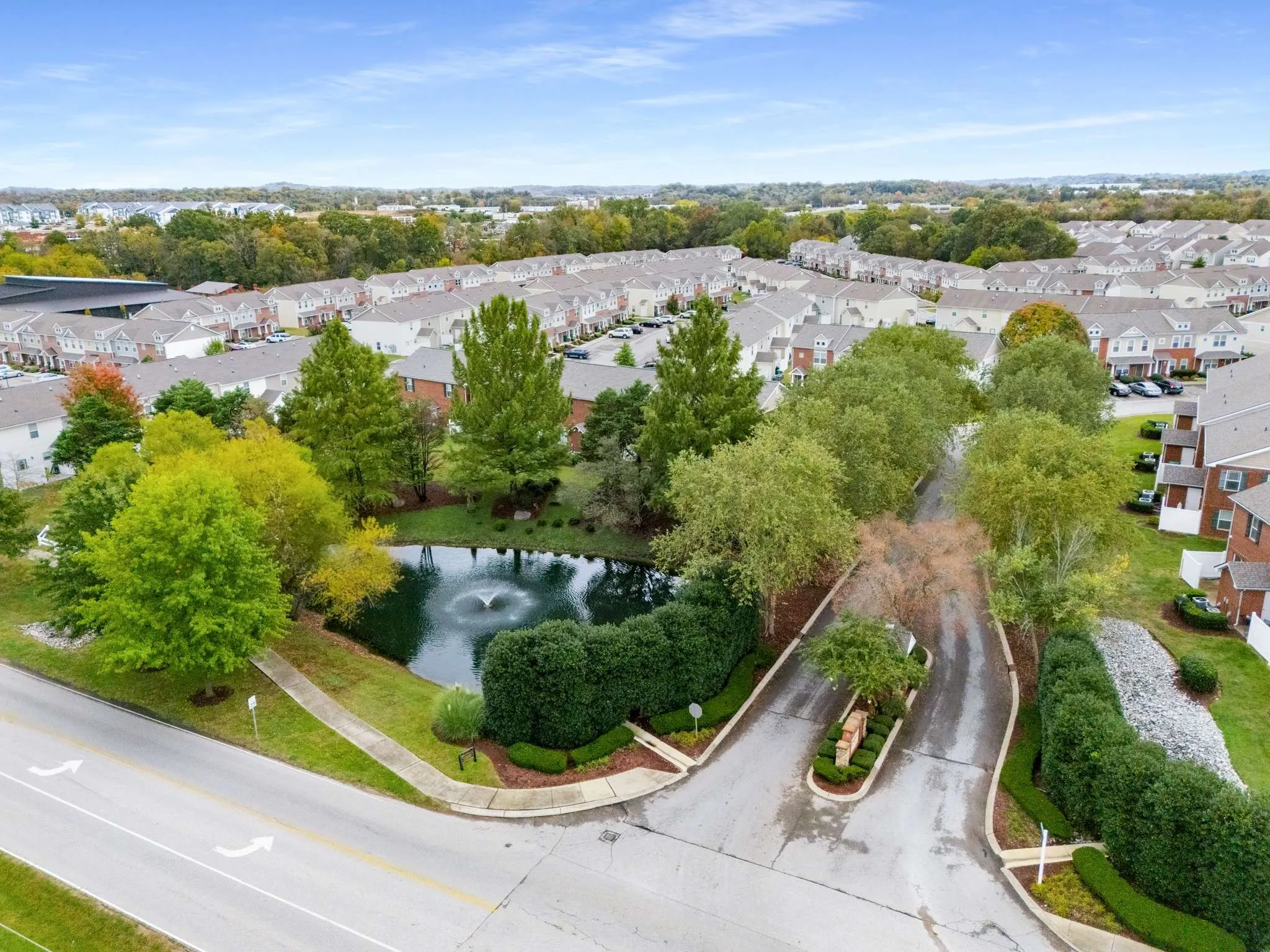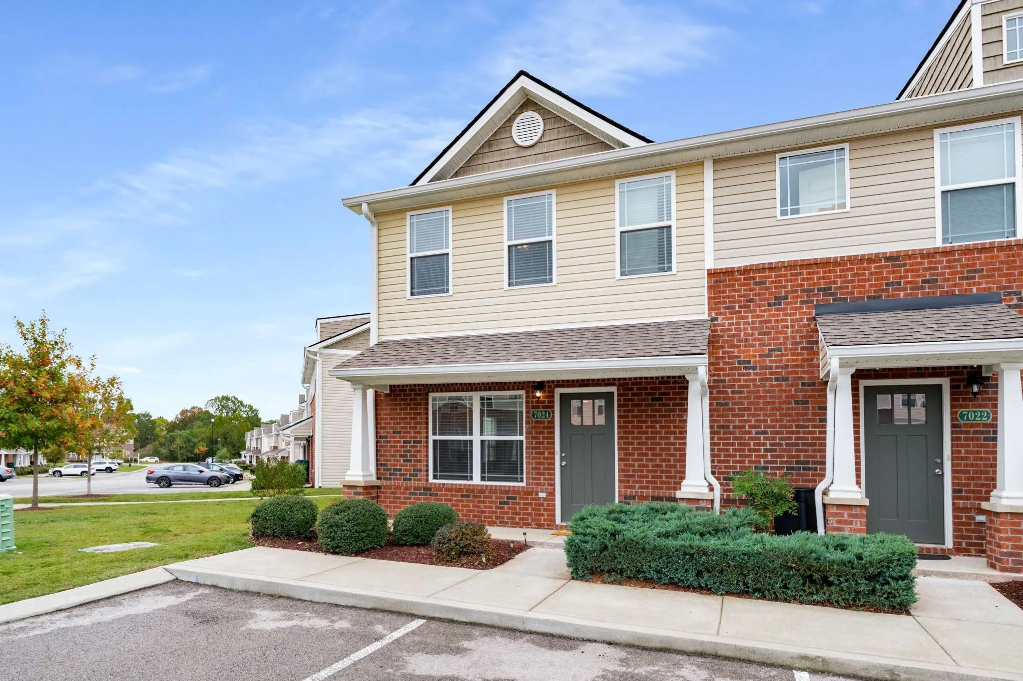 Experience the perfect blend of comfort, style, and convenience in this stunning two-story end-unit townhome in Spring Hill. Located in a walkable neighborhood ideal for daily exercise or peaceful evening strolls, this residence welcomes you with a charming covered porch. Inside, a bright open-concept floor plan with laminate floors throughout the main level. The gourmet kitchen offers a large center island with seating, granite countertops, rich espresso cabinetry, recessed lighting, and stainless steel appliances – perfect for every day meals and entertaining guests. A convenient powder bathroom is also located on the main level. Upstairs, the luxurious primary suite is a relaxing retreat with double vanities, a large walk-in shower, and a walk-in closet. A second bedroom with a private full bath and walk-in closet, plus a convenient laundry room on the same floor, ensures both comfort and function. Step outside you’ll find a private patio, ideal for BBQs and summer relaxation, with a grassy area just behind the home. The community amenities elevate your lifestyle with a fitness center, pool, playground, clubhouse and more, while the nearby grocery stores, dining, and shops make errands a breeze. With ample parking, rear storage, and a thoughtful layout that feels both high-end and inviting, this home delivers the perfect Spring Hill lifestyle.