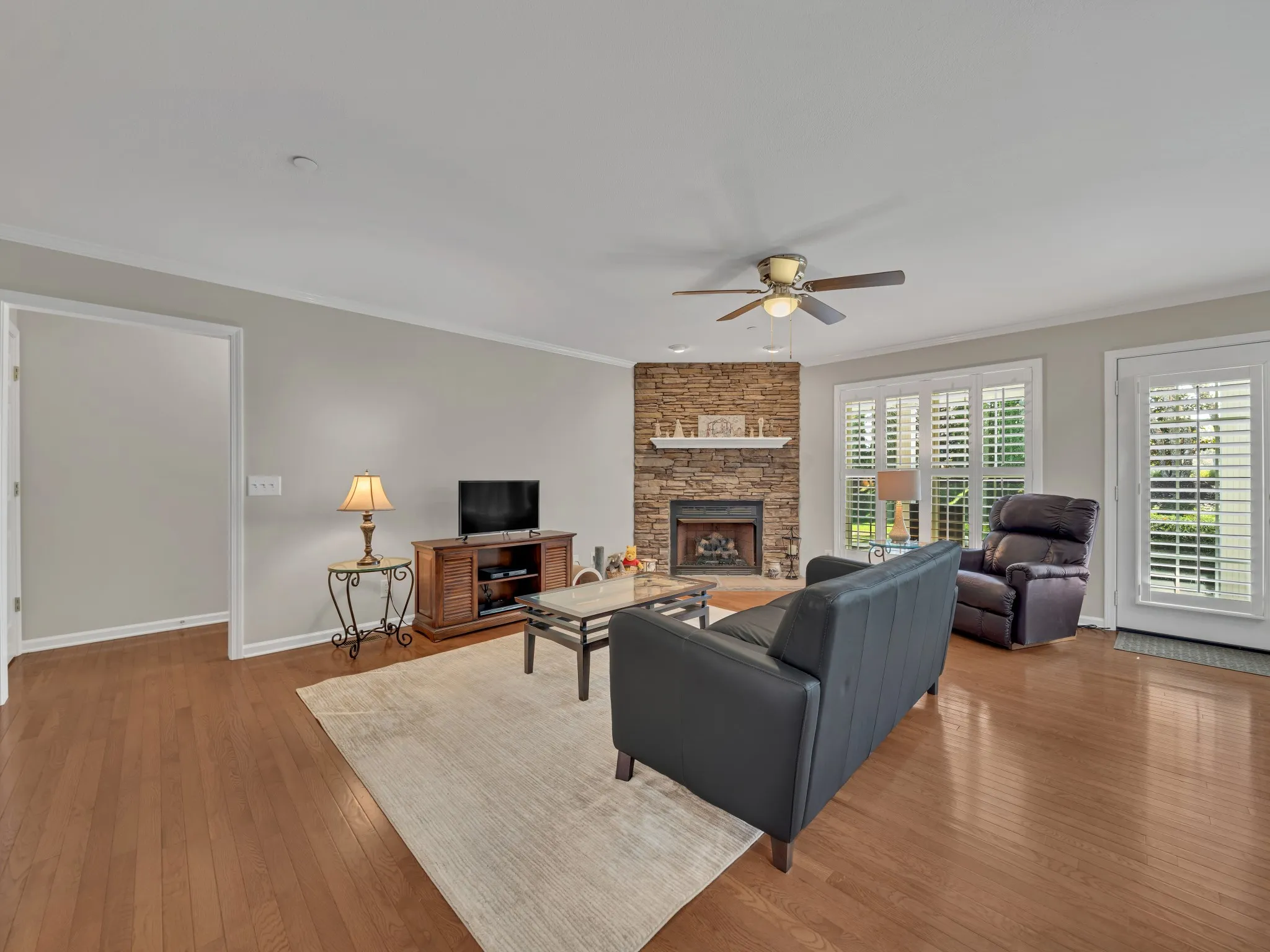 Welcome to 180 Winfrey Ct! This immaculate, all-brick, 3-bedroom home has been lovingly maintained and features a comfortable open floor plan with timeless details throughout. Enjoy a stacked-stone gas fireplace, hardwood floors in the main living areas, and tile flooring in all wet spaces. The spacious 2-car garage, covered front and rear porches, and peaceful pasture views make this home perfect for relaxing or entertaining. Highlights include stainless steel appliances, plantation shutters, crown molding, and a built-in fire sprinkler system. The third bedroom offers flexibility as a bonus room or home office—you choose! The primary suite features tray ceilings and a private en suite bath. Best of all, exterior yard maintenance is included with the HOA, providing low-maintenance living at its finest. Don’t miss this gem!