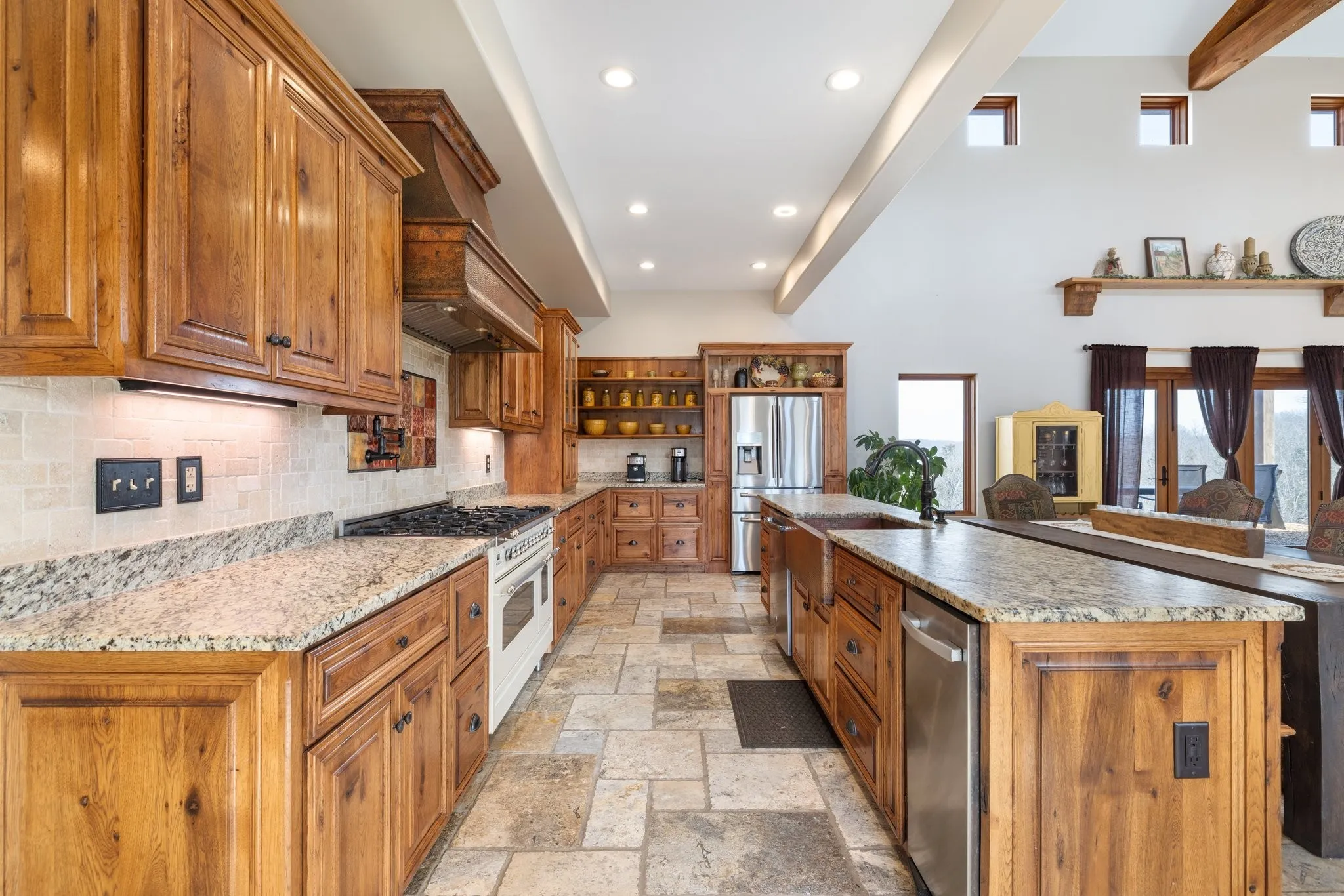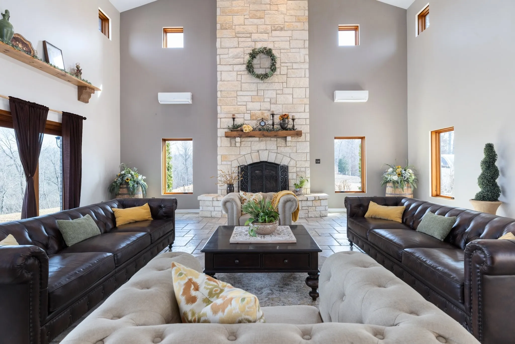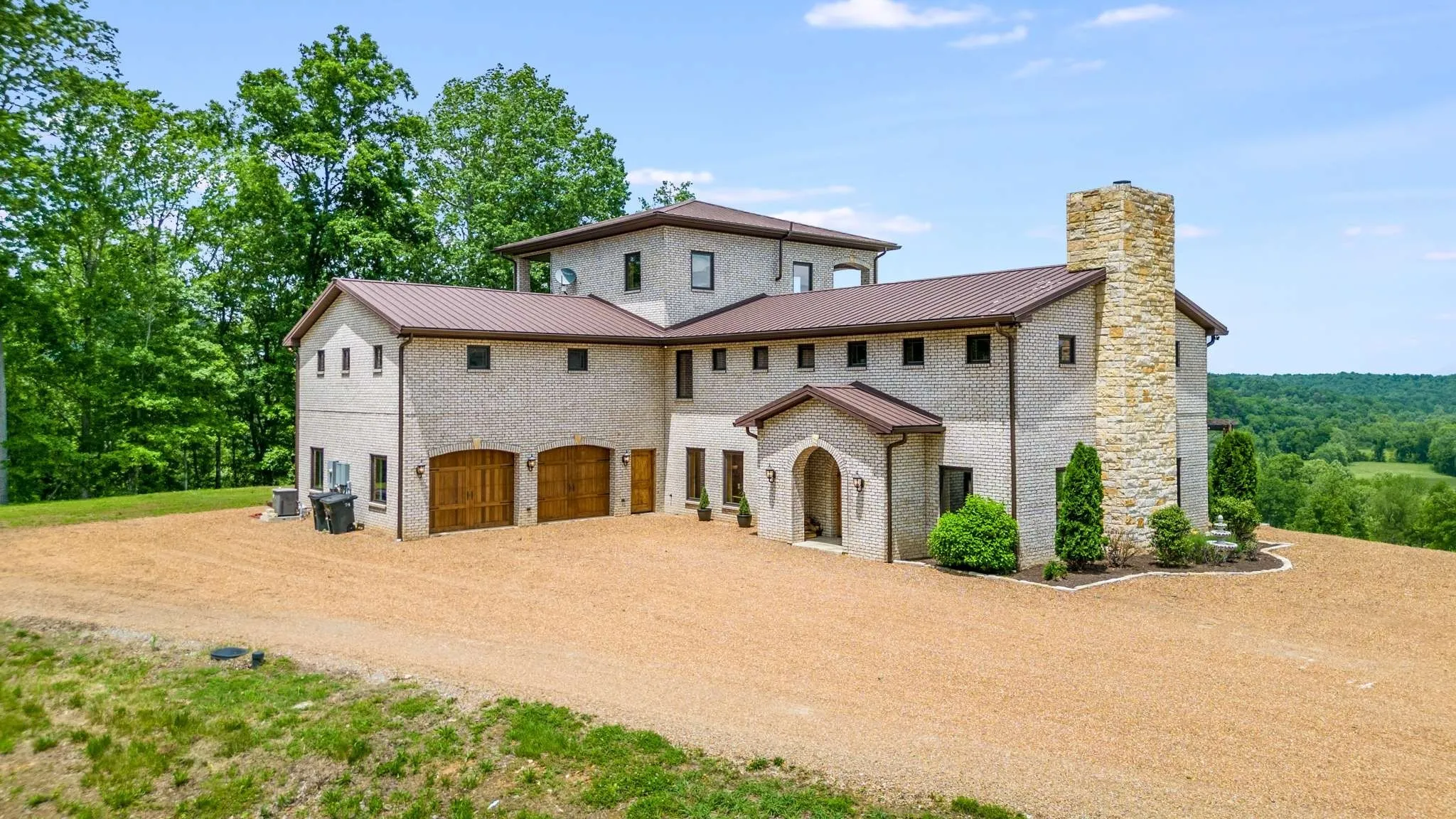 Welcome to an iconic home, best described as a secluded sanctuary inspired by Italy’s sprawling Tuscany villas & California’s luxurious wine country estates. Situated at the end of a private drive on 160 acres w/ 1,500ft of prime waterfront on the Harpeth River, a coveted location & dreamlike home (that could double as wedding venue, songwriter/corporate retreat, or winery) combine to create an unmatched offering that many identified as a gem of Middle Tennessee. The huge grand hall w/ vaulted ceiling is perfect for entertaining w/ its travertine stone floors, limestone fireplace & handmade beams. Enjoy incredible views of the river valley from the cozy first-floor primary suite. The 2nd floor features guest bedrooms, a loft overlooking the great room, & a mother-in-law/teen live-in suite plus balconies w/ river views for morning coffees/afternoon cocktails. The 3rd floor has a dedicated media room. A once-in-a-lifetime opportunity, this home holds the keys to life’s next great chapter