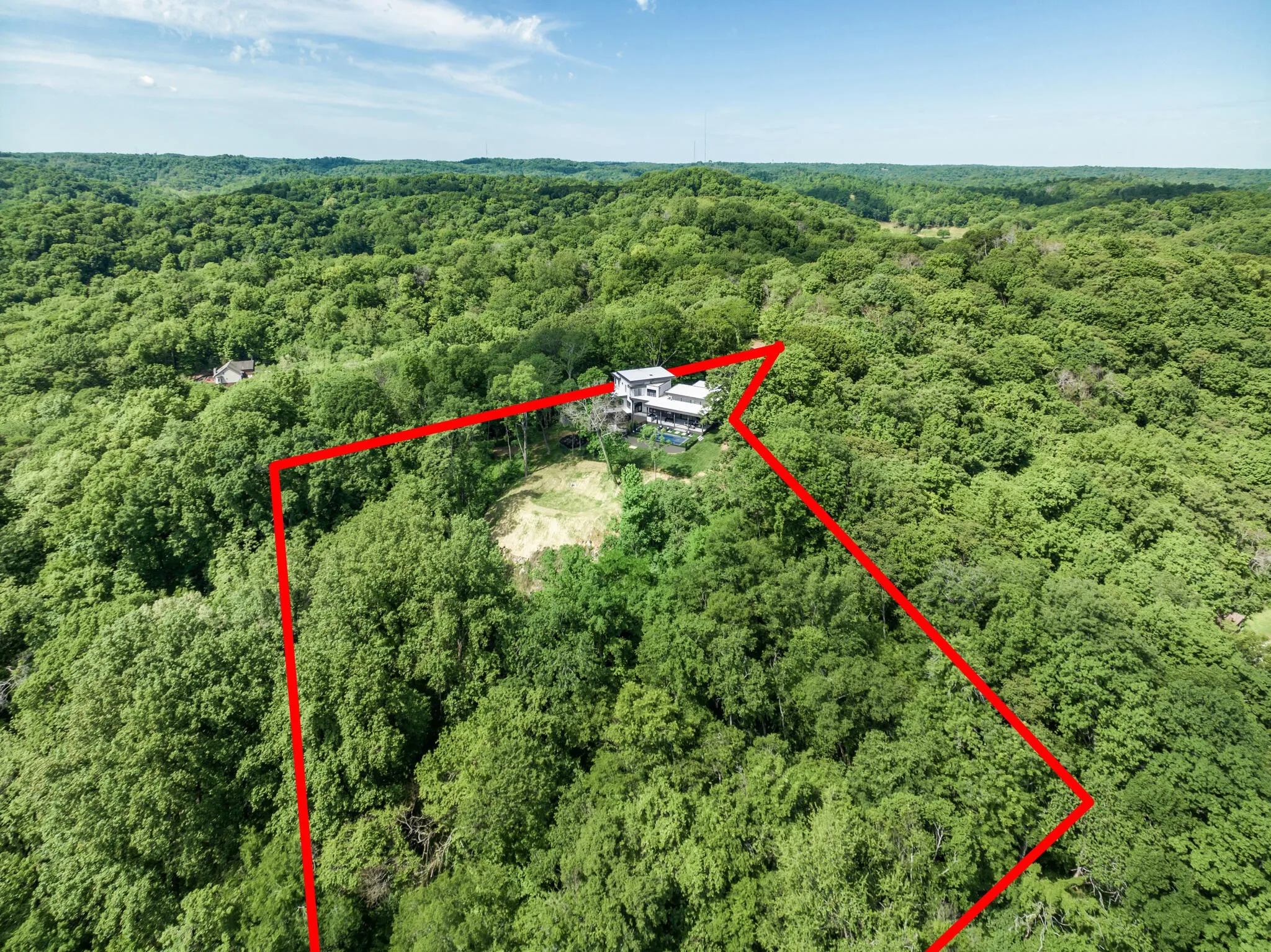 Discover unparalleled luxury and sophistication at this breathtaking ridge-top estate, perfectly positioned to capture sweeping skyline views of downtown Nashville. Set on five pristine acres, this architectural masterpiece blends modern elegance with resort-style living. Soaring ceilings and dramatic walls of glass flood the great room with natural light and open seamlessly to a covered patio overlooking the pool, creating an effortless indoor-outdoor experience ideal for both intimate evenings and grand entertaining.\n