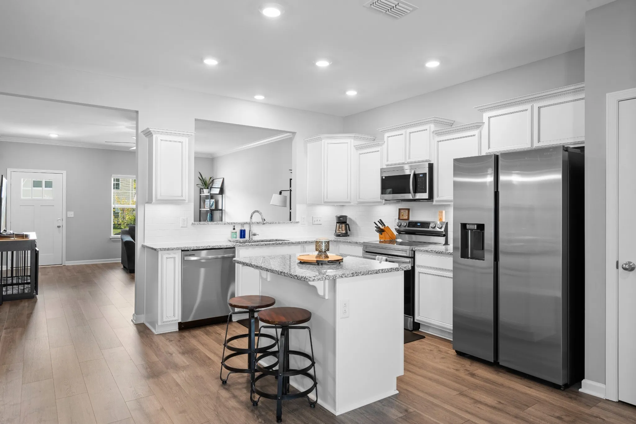 Step into a home that feels better than new! This beautifully crafted 3-bed, 2.5-bath residence combines thoughtful design with today’s modern comforts. The open layout creates a seamless flow between living, dining, and kitchen spaces—perfect for gatherings or quiet evenings at home. Seller will leave refrigerator, lawnmower, and deep freezer with acceptable offer!\n