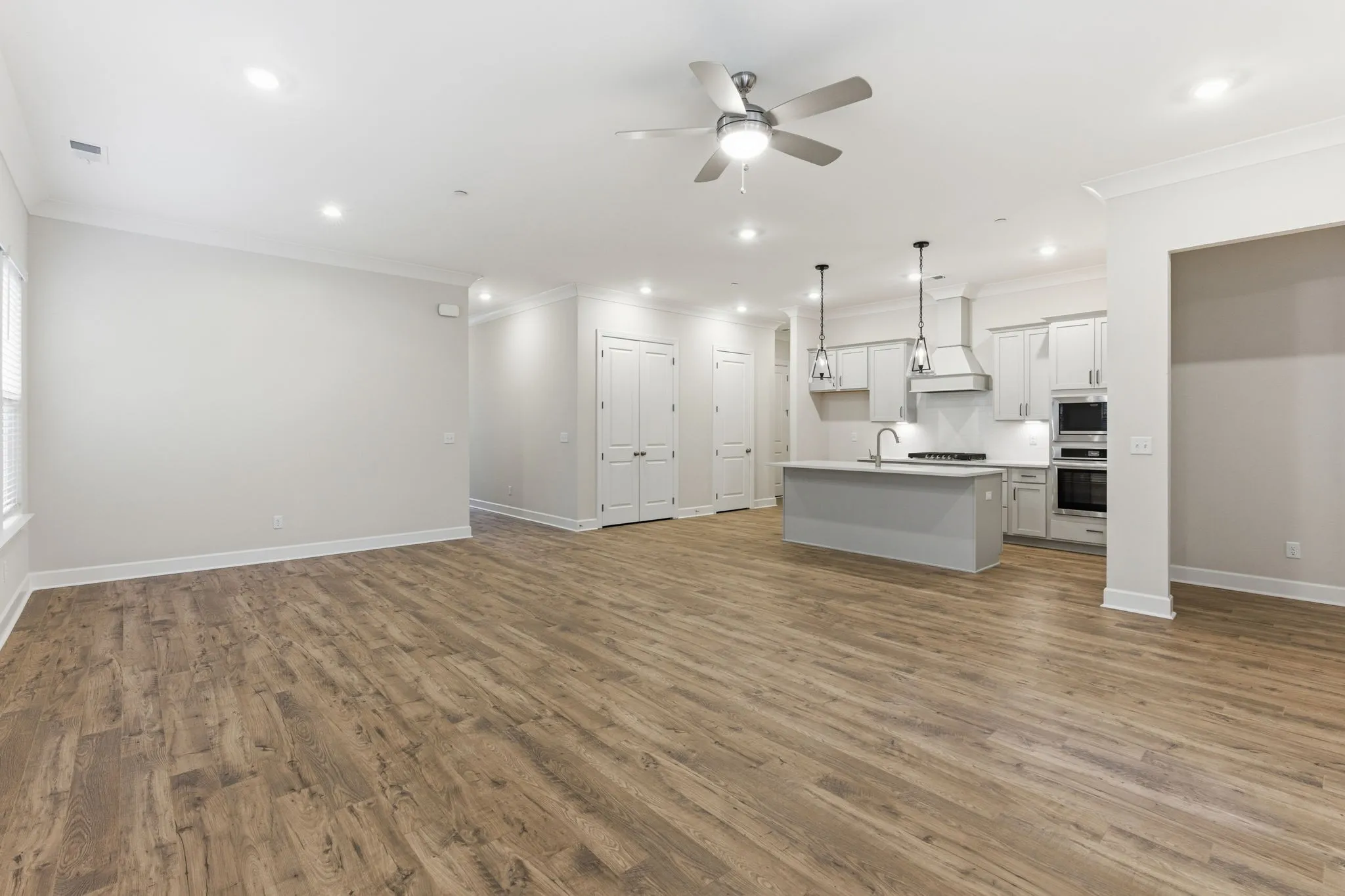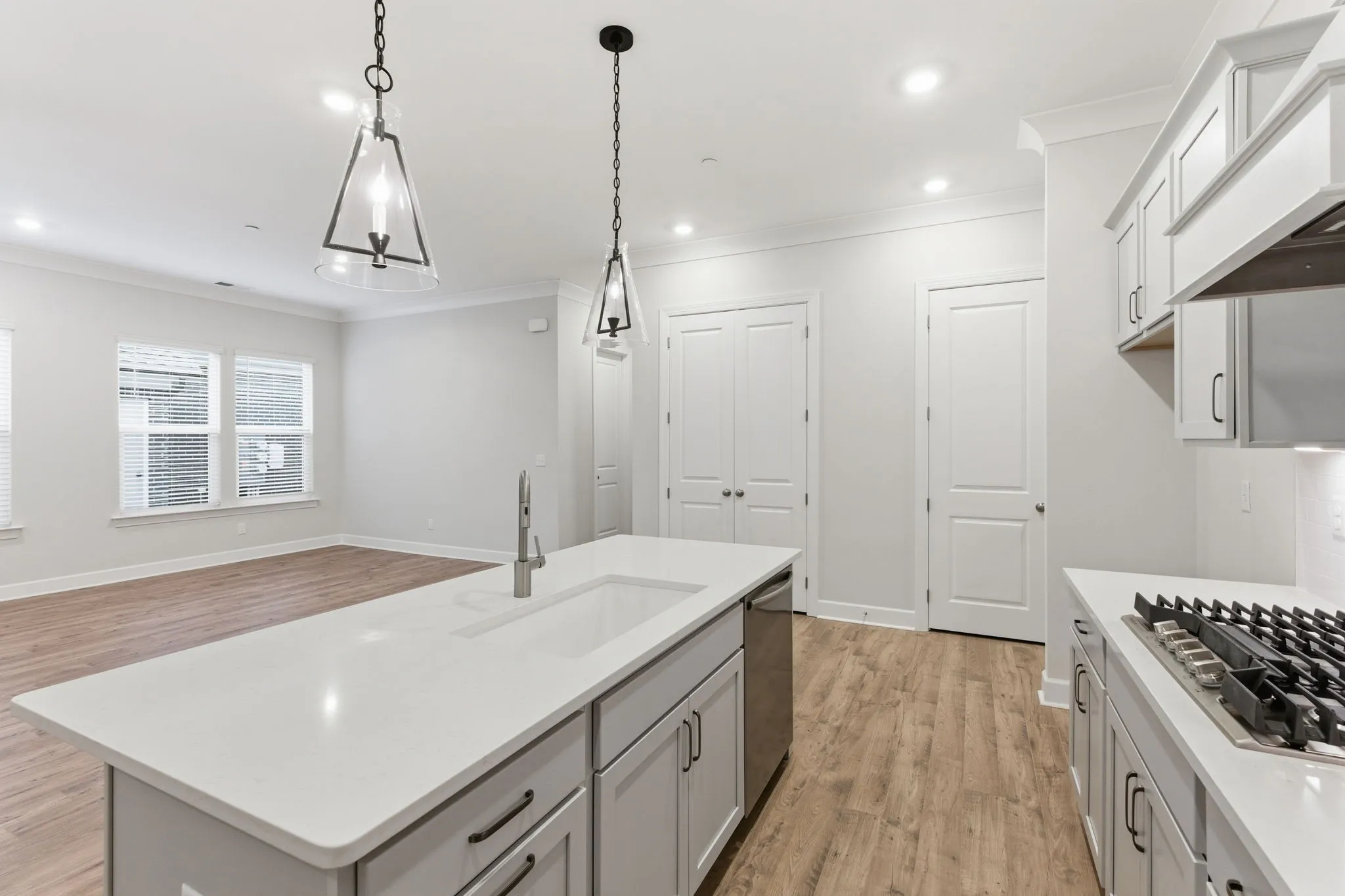 Checkout this Corsair floorplan Lot 32 in our nearly sold-out Thompson Station community… it’s a showstopper! Tucked in a prime, peaceful location, this one-level ranch end unit offers tranquil views of lush greenspace for your ideal spot for soaking up the sunset. Inside, you’ll be delighted by soaring 10’ ceilings, 8’ doors, and a gourmet kitchen featuring a 5 burner GAS cooktop, oversized island, quartz countertops, and designer finishes — perfect for hosting dinners. Thoughtful touches such as a drop-zone boot bench, under-cabinet lighting, pendant fixtures, window blinds throughout, and a two-car garage make this home feel luxury. This is your last chance to own the Corsair floorplan in a brand new community in popular Thompsons Station!