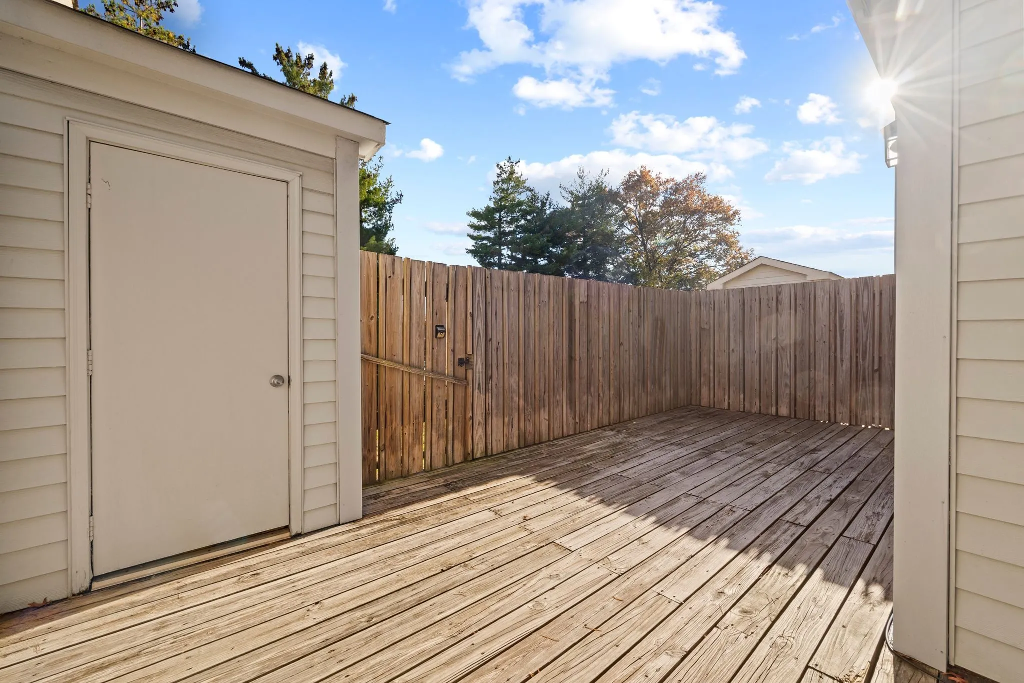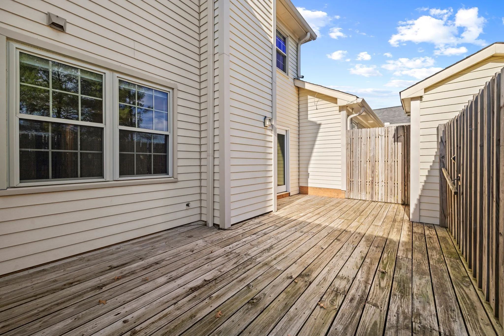 Upstairs, you’ll find 3 bedrooms and 2 full baths. The primary has an en-suite bathroom, and all bedrooms are carpeted to reduce noise. This unit includes a great external storage closet off the private, fully-fenced patio.