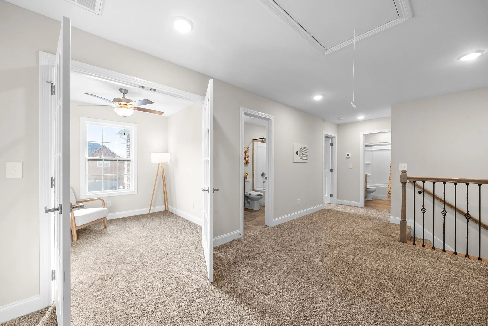 Welcome to the newest and largest floor plan from Skyline Construction! This impressive home boasts 3,200 square feet, featuring 6 bedrooms (with your sixth being a bonus room), 4 full baths, a bonus room, an office, and the builder’s largest kitchen. The kitchen includes a double oven, a stainless-steel farmhouse sink, soft-close cabinets, and an expansive pantry. The primary bathroom is equipped with a spacious soaking tub and a walk-in shower. Upstairs, you’ll find three generous bedrooms, an office, and a cozy seating area, along with a large bonus room. The backyard offers a concrete patio with a ceiling fan, along with additional patio space, all standard with Skyline Construction, perfect for all your outdoor needs!
