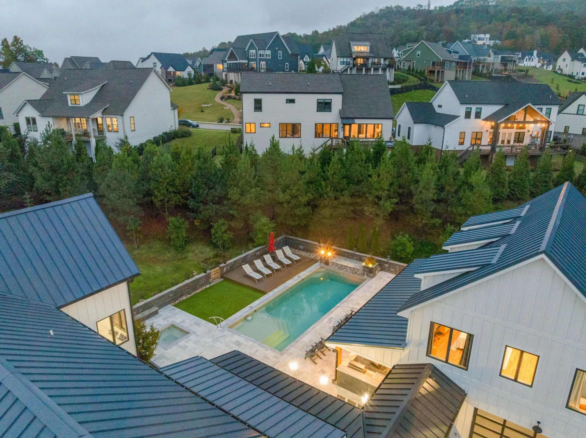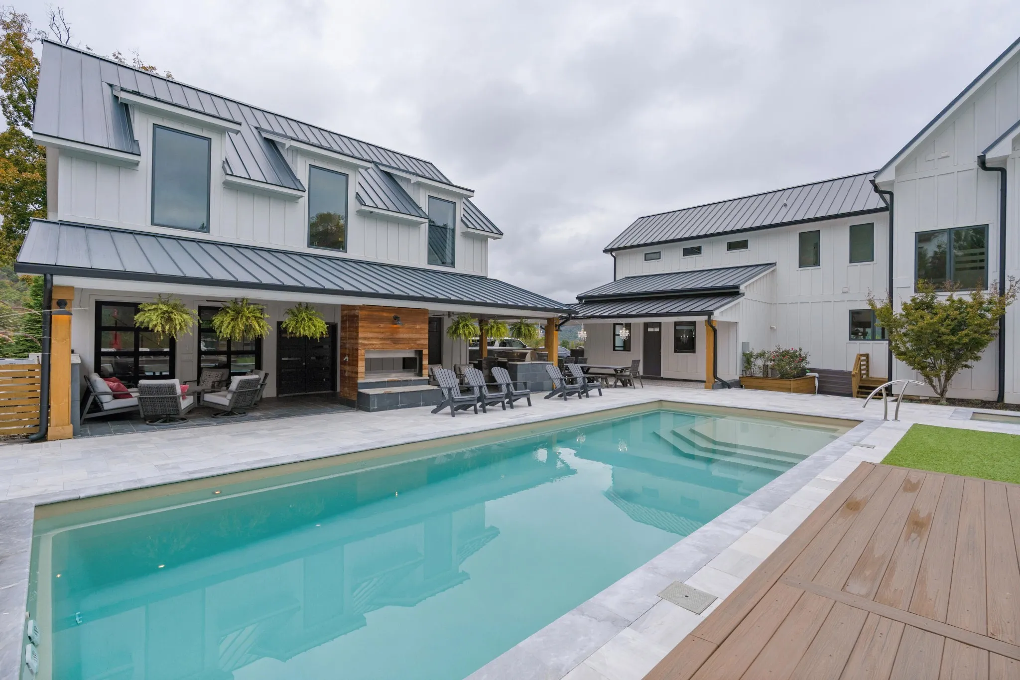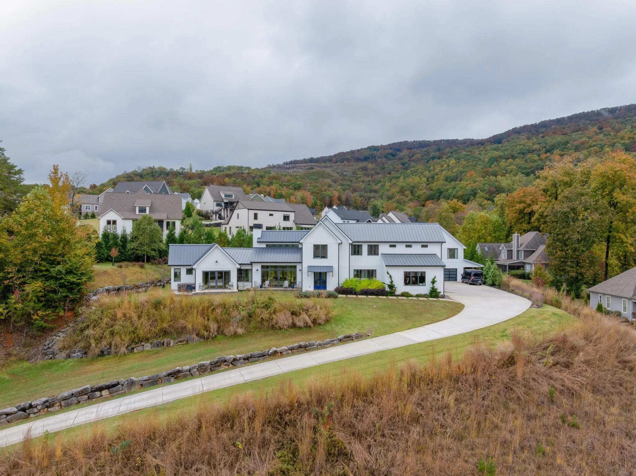 +"PublicRemarks": "Truly spectacular modern farmhouse strategically positioned on a 1.76 +/- acre hilltop lot with a heated pool, guest house and stunning mountain views in the desirable Black Creek golf course community approximately 15 minutes to downtown Chattanooga. This well-designed home is loaded with amenities and fantastic outdoor living spaces and is truly meant for gathering and entertaining. The property features a 5 or 6 bedroom, 4.5 bath, 4,700 +/- sf main house with a 4-car garage, as well as a pool house with a rec room, kitchenette, double garage and a full pool bath on the main level, and a 2 bedroom, 1 bath guest apartment on the upper level, all connected via amazing outdoor living spaces. All of the garage doors are glass and provide both a modern look and great natural lighting atypical to most garages which allows for additional uses such as home gym in the pool house garage. As soon as you enter the main house, you will immediately note the wonderfully open living areas, including the kitchen, dining and great room, as well as the hardwood floors, shiplap accents walls and ceilings, and the oversized glass doors and windows with the colorful autumn views. The kitchen boasts a large center island with pendant lighting and an extra prep sink, custom cabinetry, stainless appliances, including 2 dishwashers, an under-counter microwave, an oversized built in refrigerator, and a Thor gas range with double ovens and convenient pot-filler. It also has a great workspace and a refreshment center with a sink, Bosch coffee maker and a beverage fridge with access to the mudroom/laundry with a pantry and access to the garage - perfect for loading and unloading. The center dining area has access to the powder room, staircase and a closet with access to a special room under the steps that leads to an exterior door which the sellers have utilized for their pets."