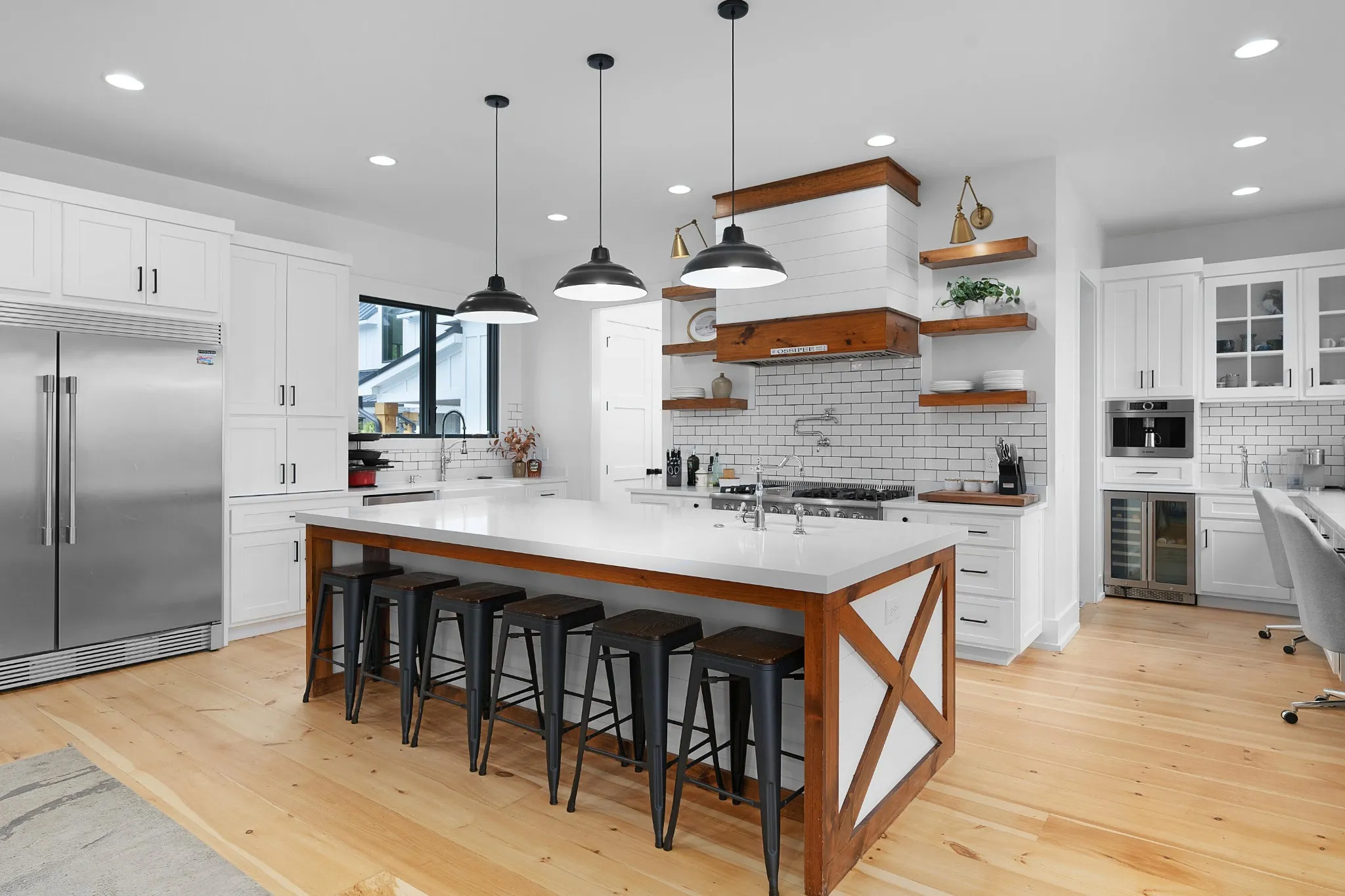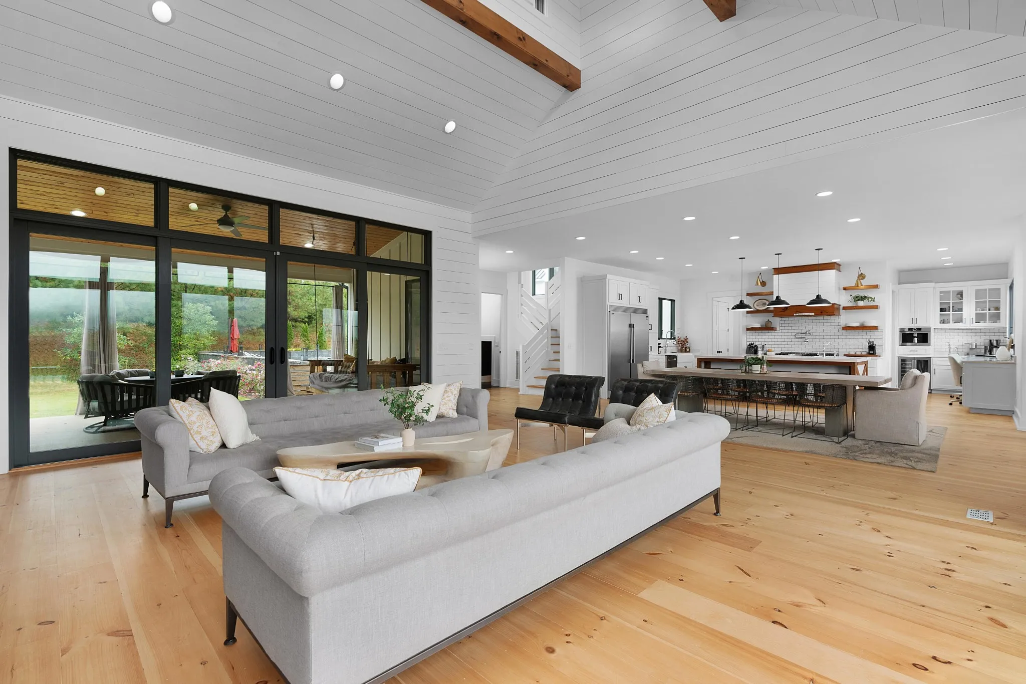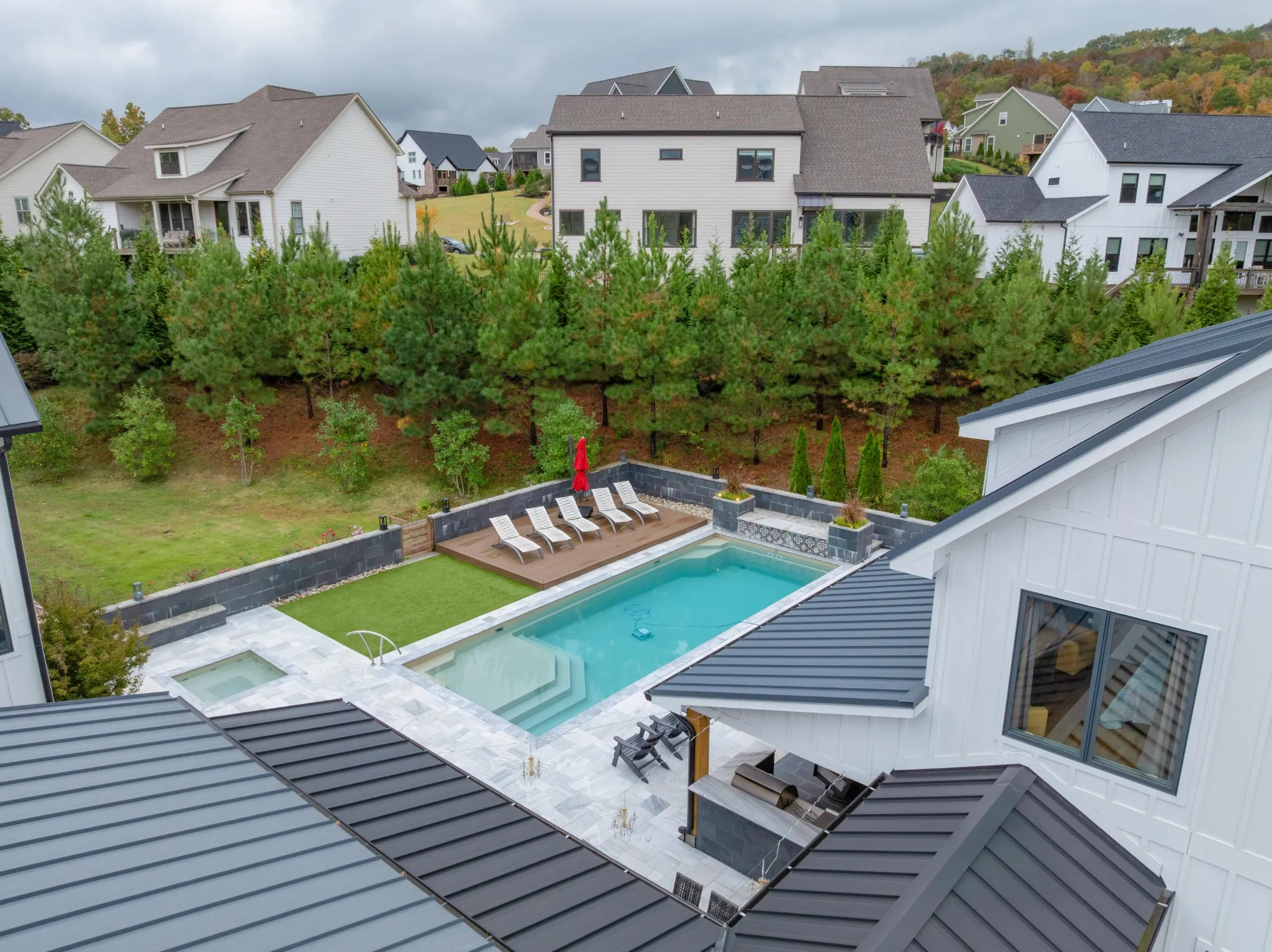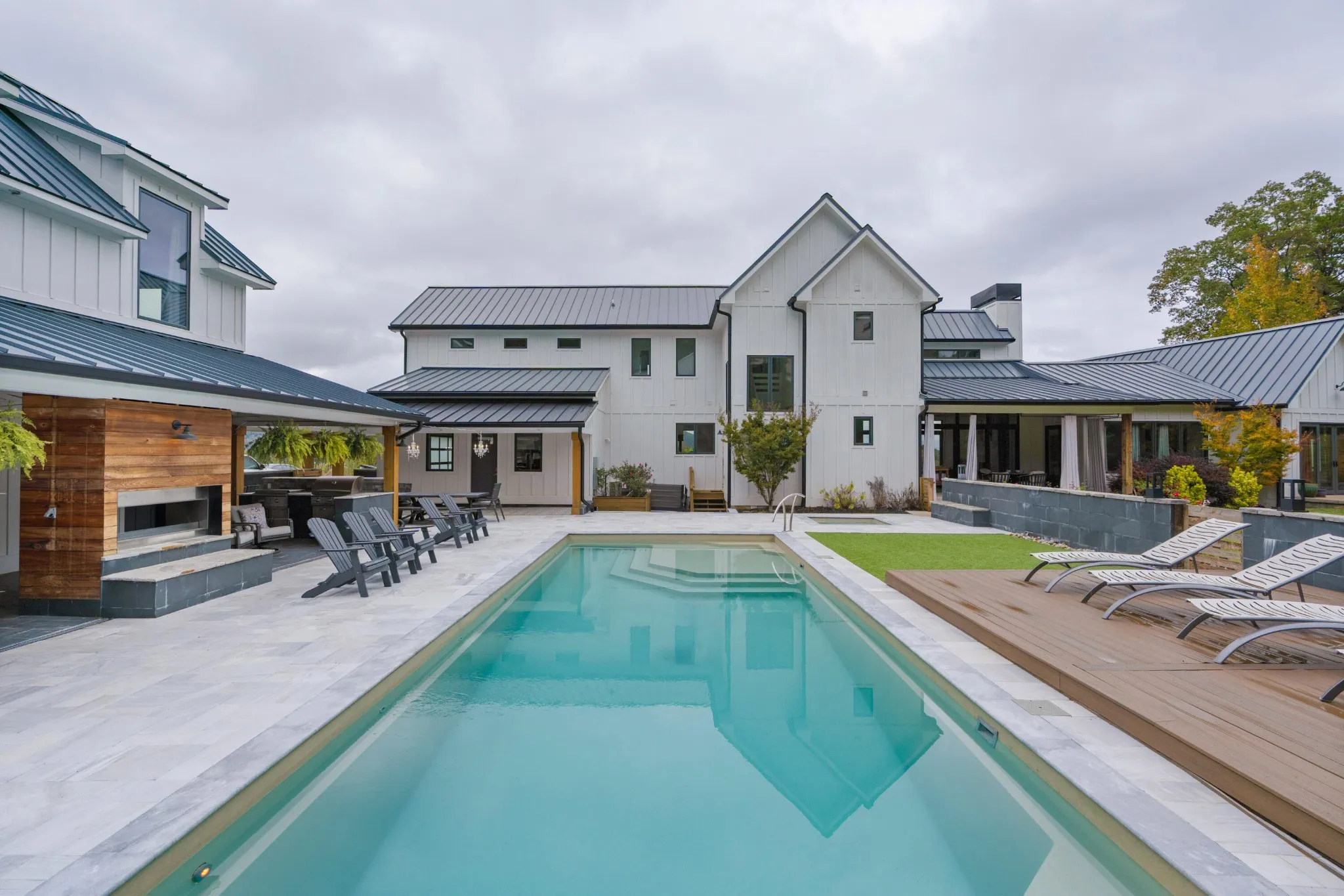 +"PublicRemarks": "Truly spectacular modern farmhouse strategically positioned on a 1.76 +/- acre hilltop lot with a heated pool, guest house and stunning mountain views in the desirable Black Creek golf course community approximately 15 minutes to downtown Chattanooga. This well-designed home is loaded with amenities and fantastic outdoor living spaces and is truly meant for gathering and entertaining. The property features a 5 or 6 bedroom, 4.5 bath, 4,700 +/- sf main house with a 4-car garage, as well as a pool house with a rec room, kitchenette, double garage and a full pool bath on the main level, and a 2 bedroom, 1 bath guest apartment on the upper level, all connected via amazing outdoor living spaces. All of the garage doors are glass and provide both a modern look and great natural lighting atypical to most garages which allows for additional uses such as home gym in the pool house garage. As soon as you enter the main house, you will immediately note the wonderfully open living areas, including the kitchen, dining and great room, as well as the hardwood floors, shiplap accents walls and ceilings, and the oversized glass doors and windows with the colorful autumn views. The kitchen boasts a large center island with pendant lighting and an extra prep sink, custom cabinetry, stainless appliances, including 2 dishwashers, an under-counter microwave, an oversized built in refrigerator, and a Thor gas range with double ovens and convenient pot-filler. It also has a great workspace and a refreshment center with a sink, Bosch coffee maker and a beverage fridge with access to the mudroom/laundry with a pantry and access to the garage - perfect for loading and unloading. The center dining area has access to the powder room, staircase and a closet with access to a special room under the steps that leads to an exterior door which the sellers have utilized for their pets."